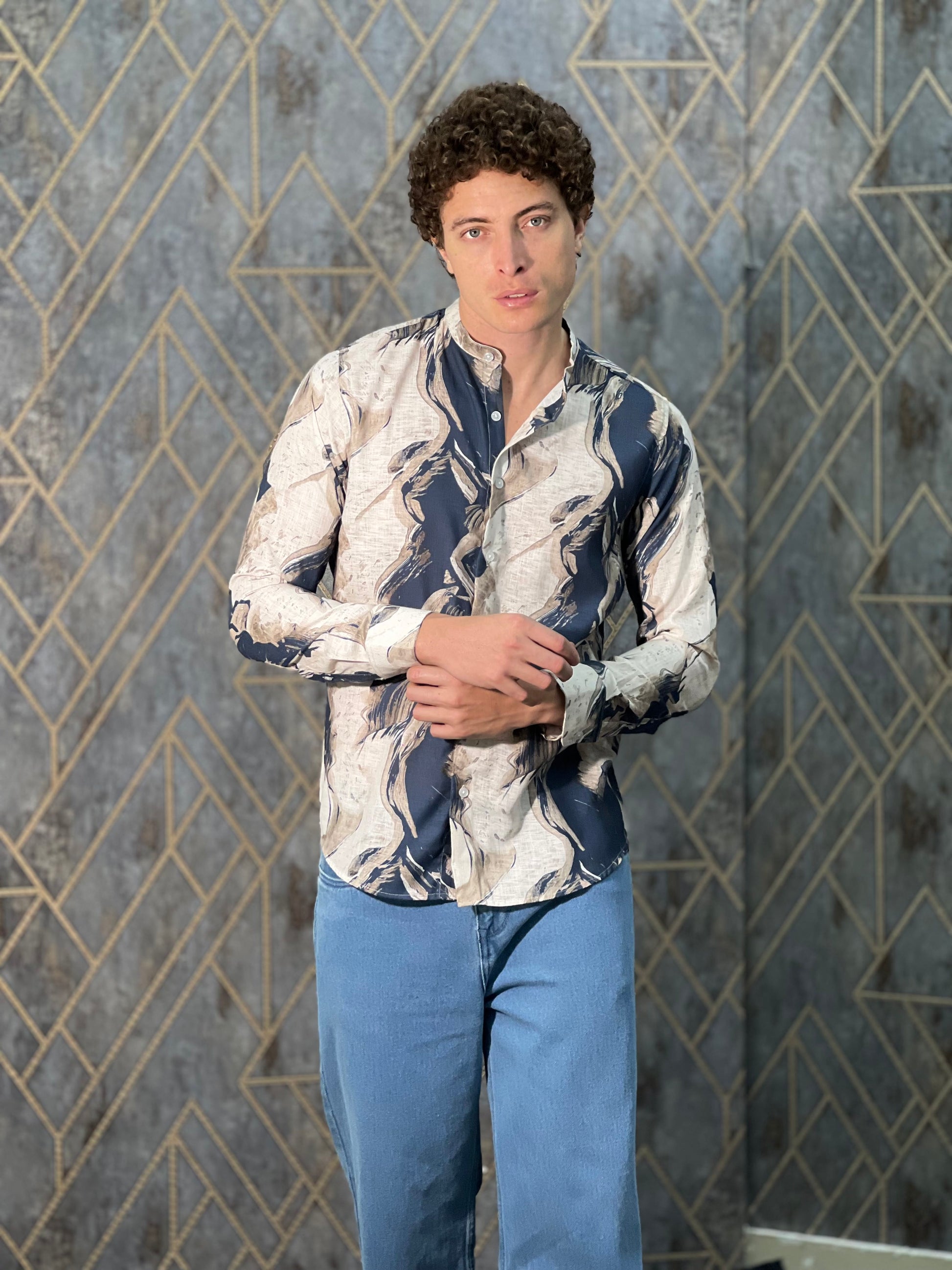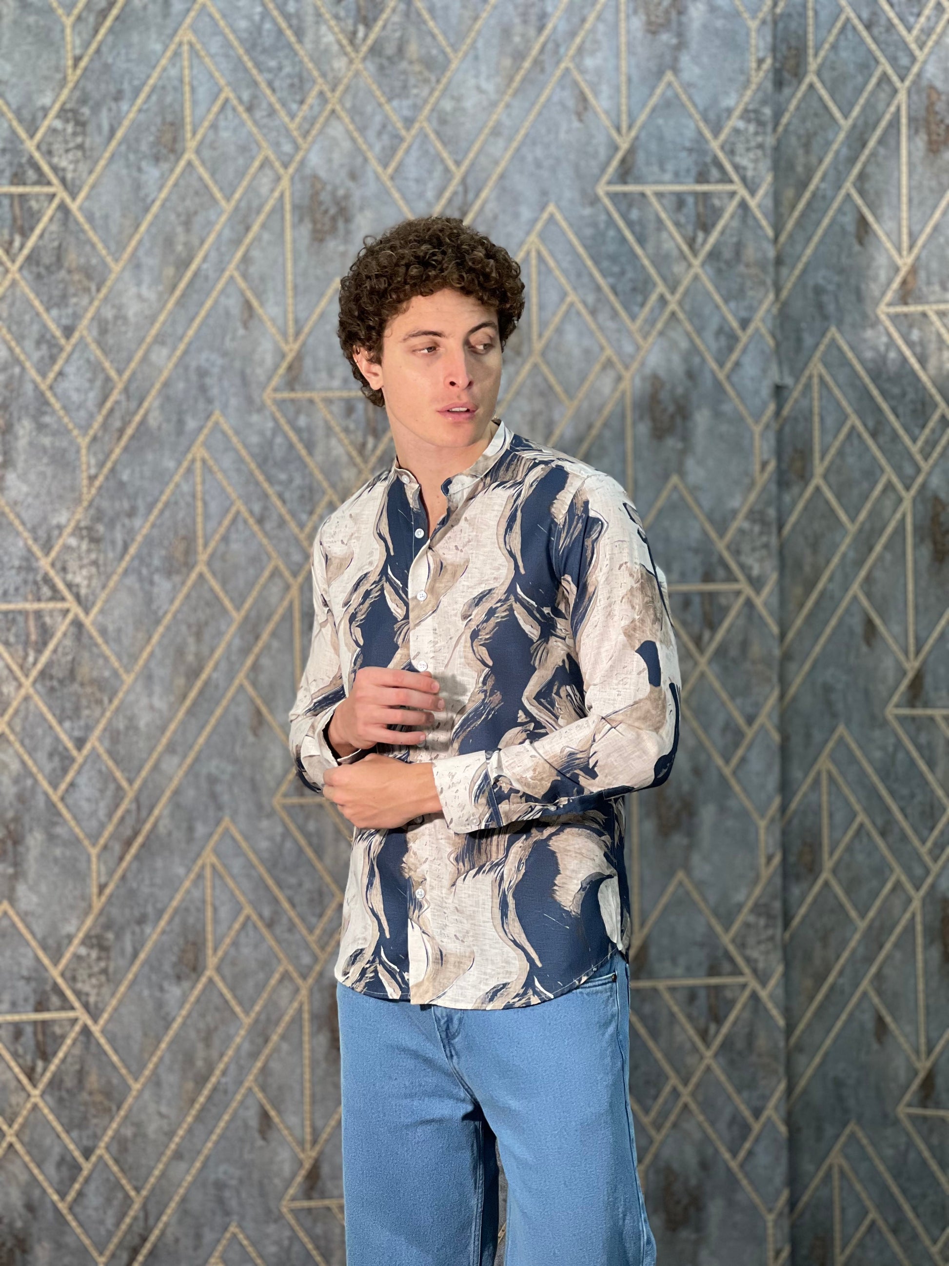 Crafted from an imported cotton-linen blend, this printed men’s shirt offers lightweight comfort and a refined finish. Perfect for a polished yet relaxed look, it combines breathable fabric with stylish prints for any occasion