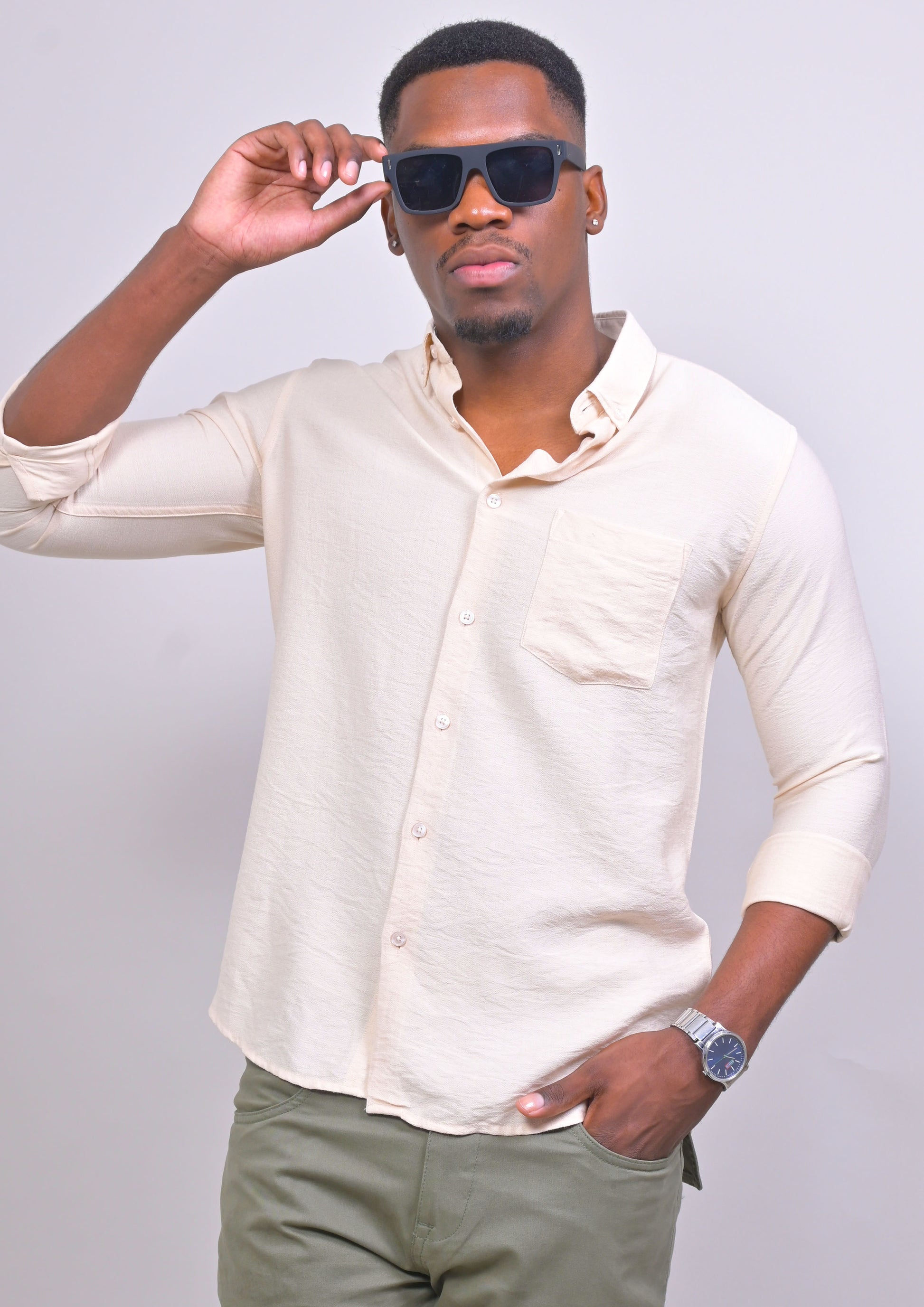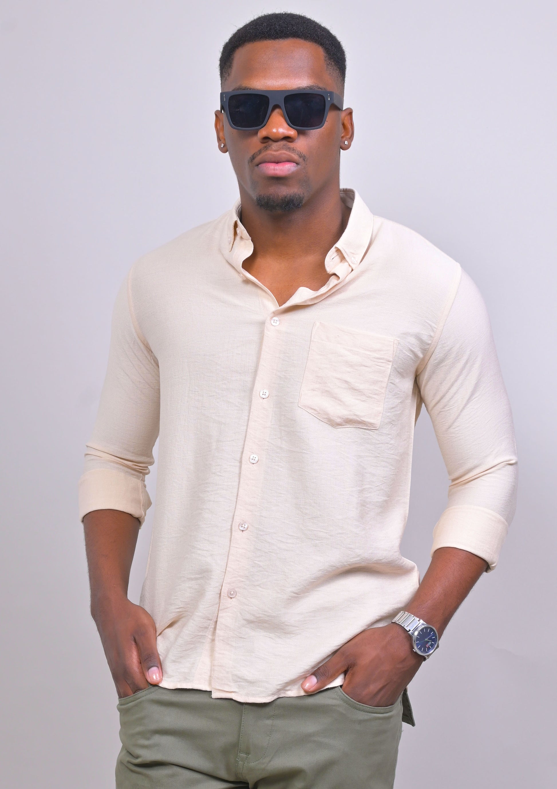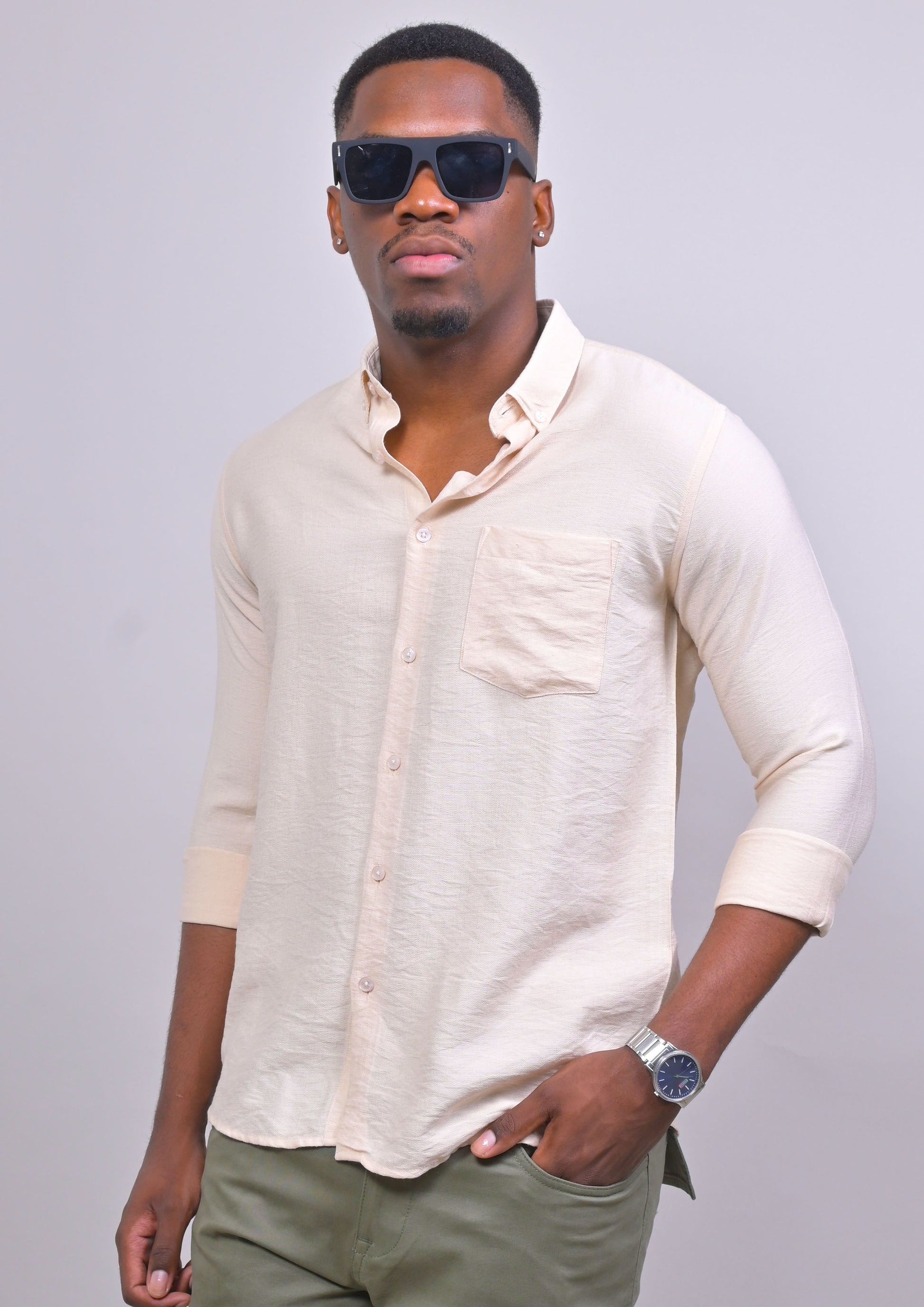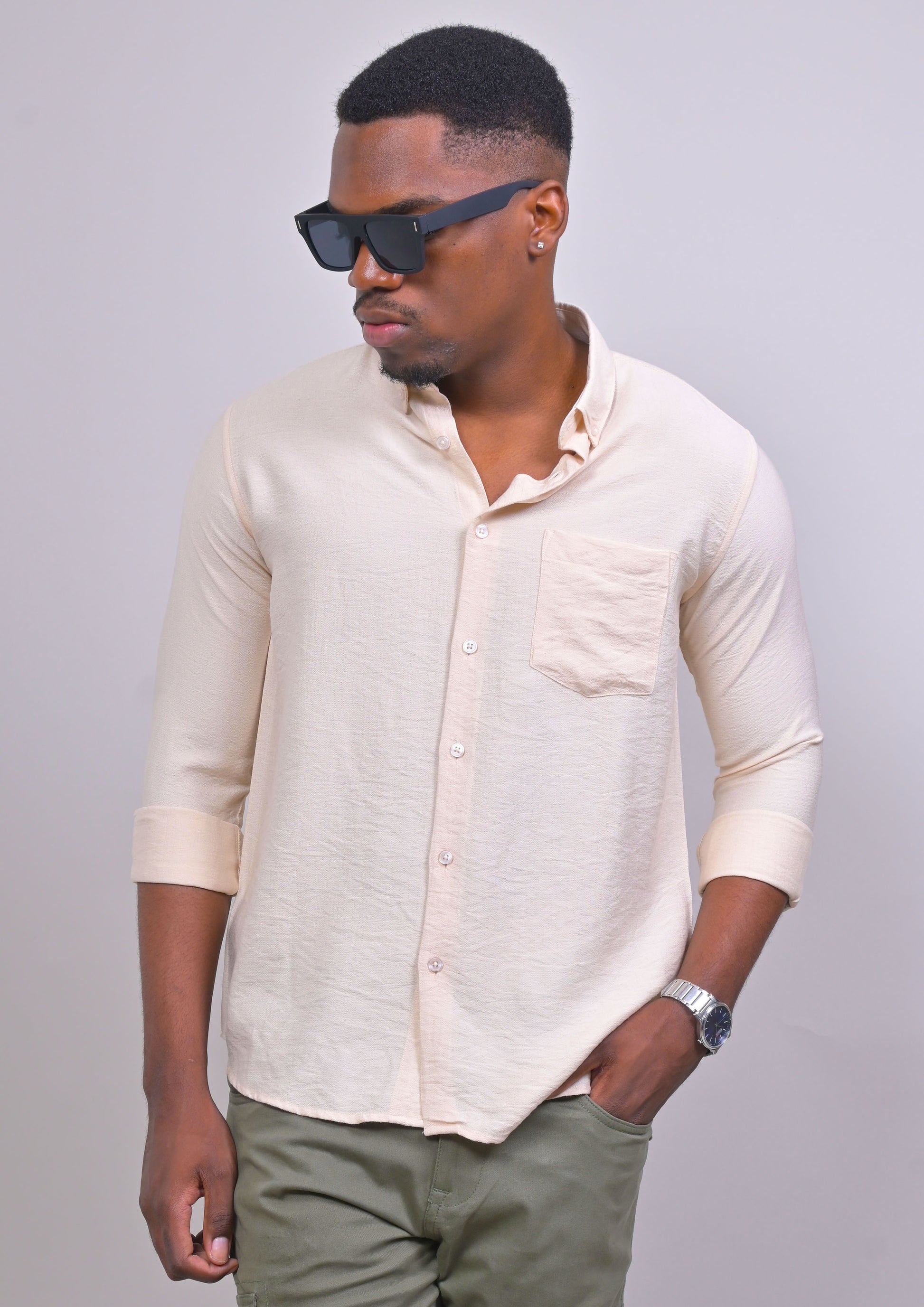 BIEGE COLORED IMPORTED PLAIN CASUAL SHIRT