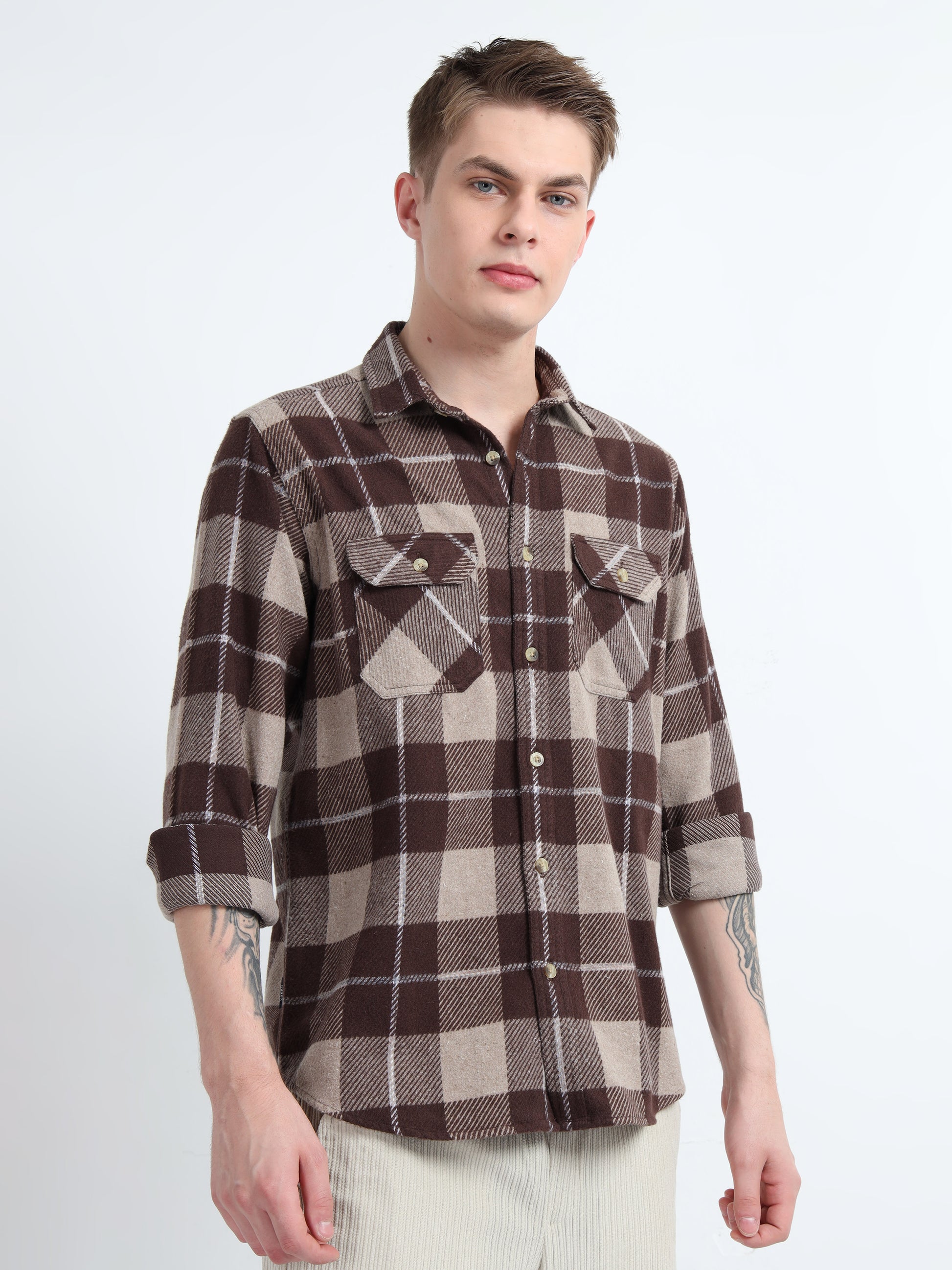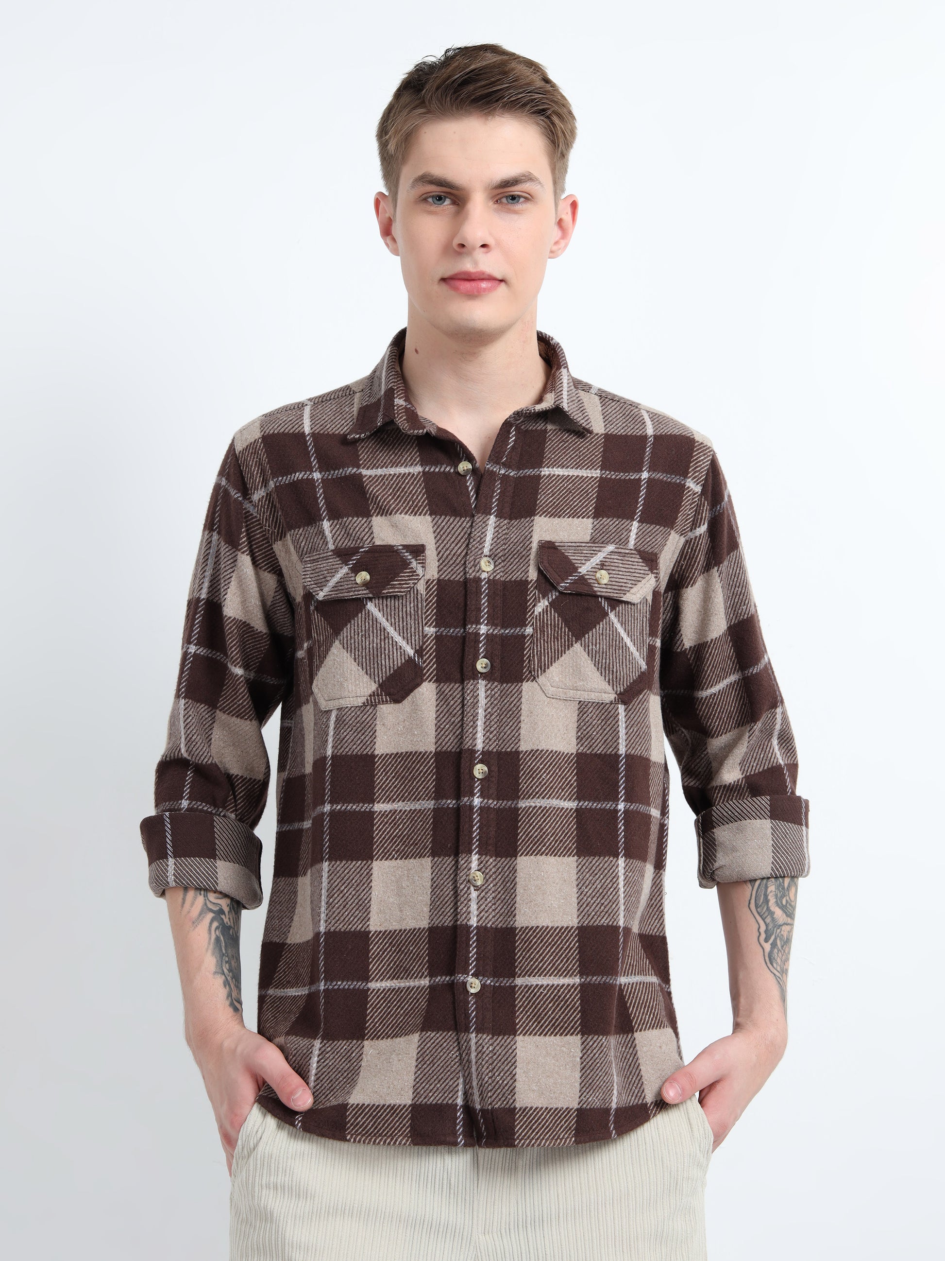BRUSHED DOBBY DOUBLE POCKET SHIRT