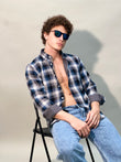 CHECKERED DOUBLE CLOTH BLUE SHIRT