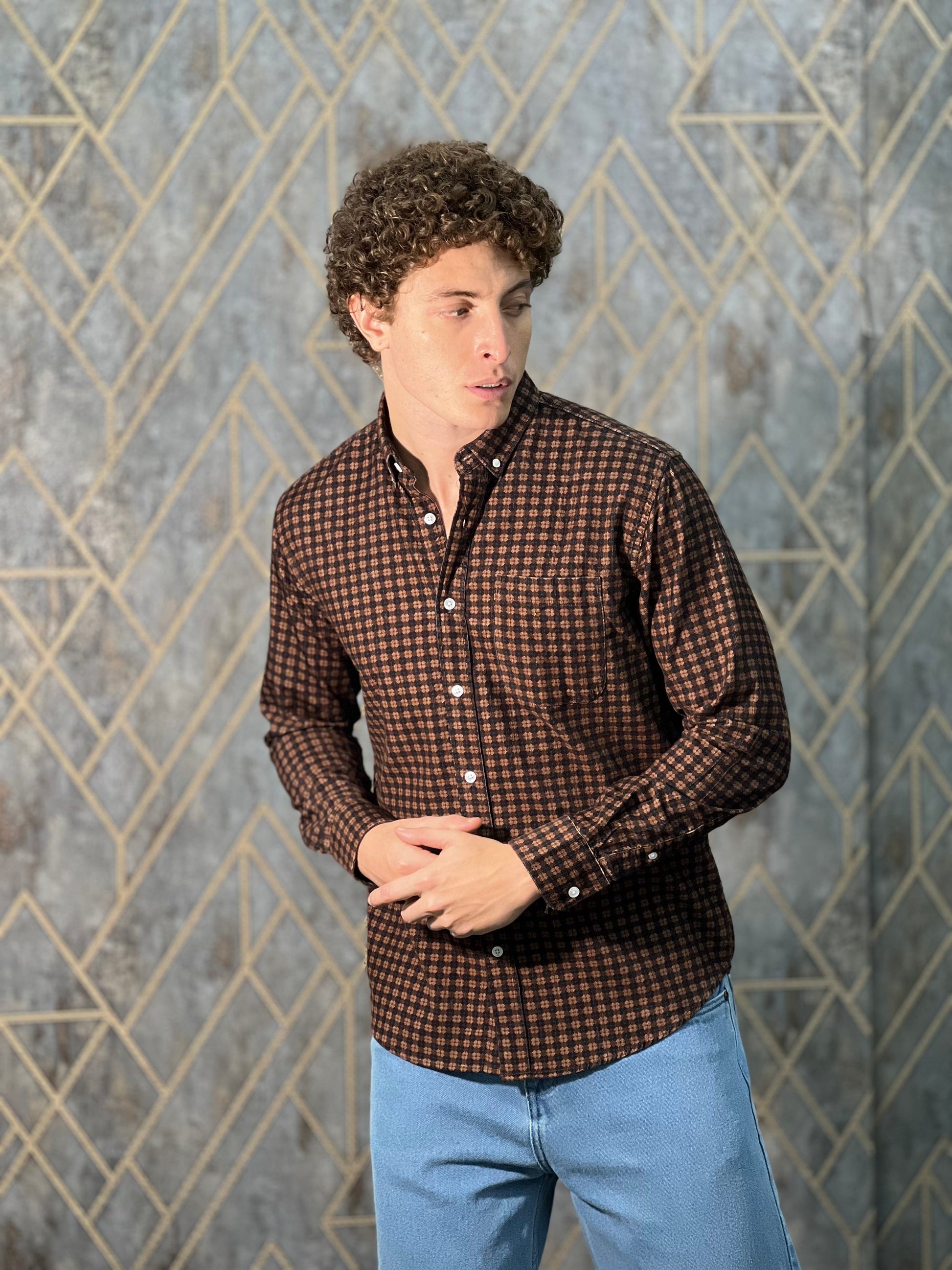 CORDUROY BROWN PRINTED SHIRT