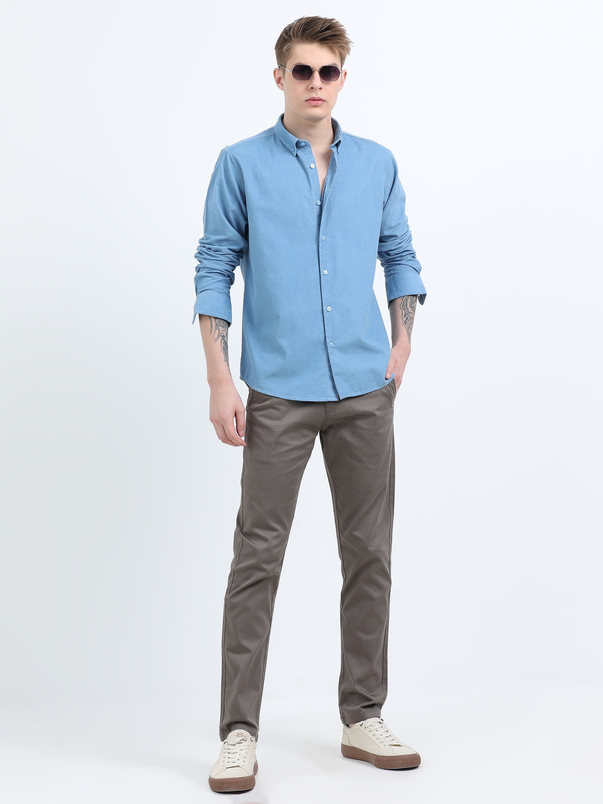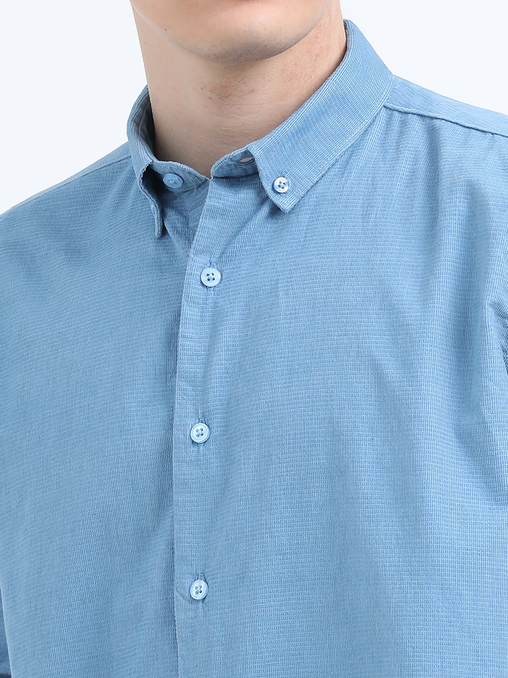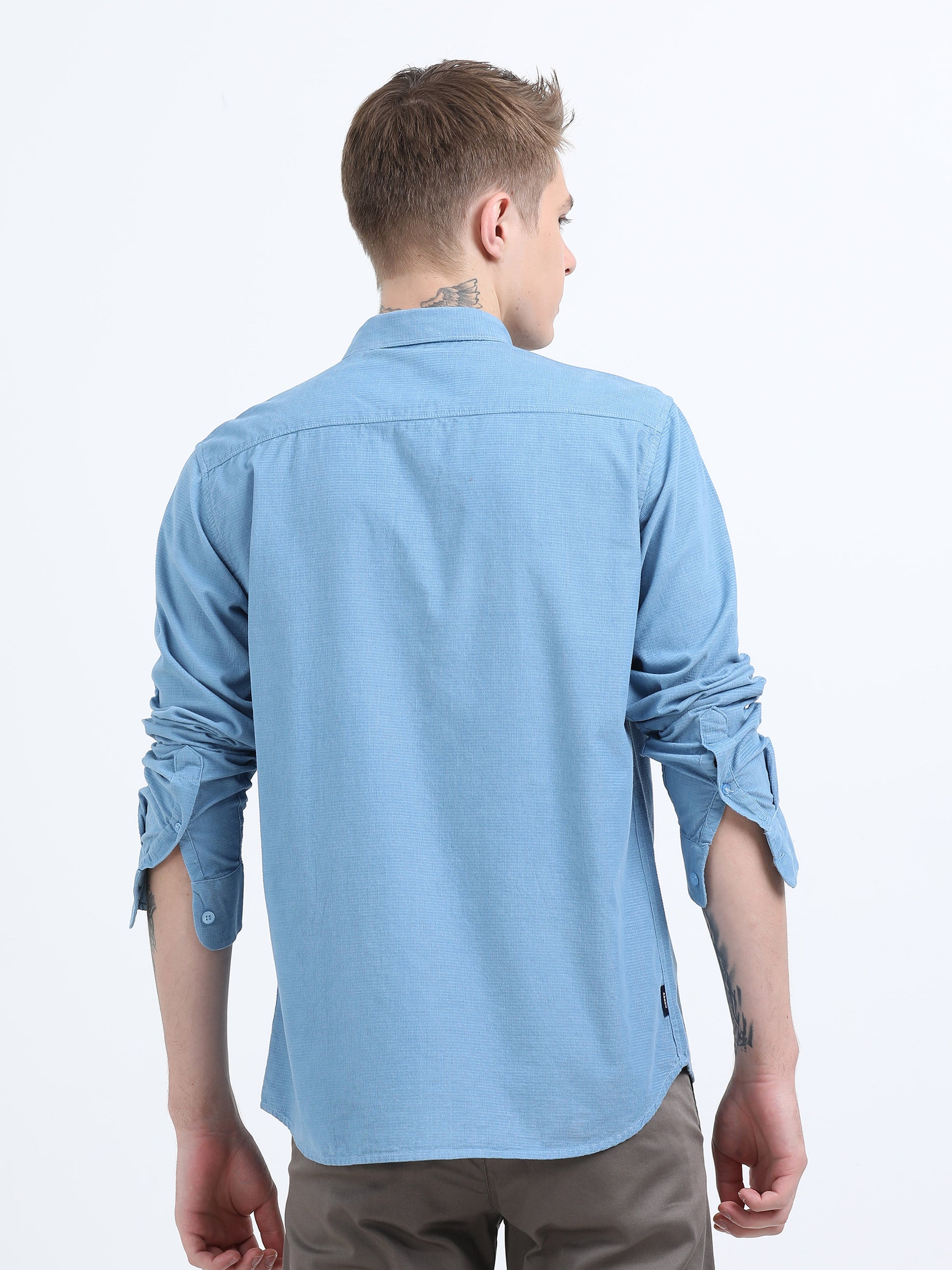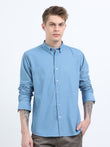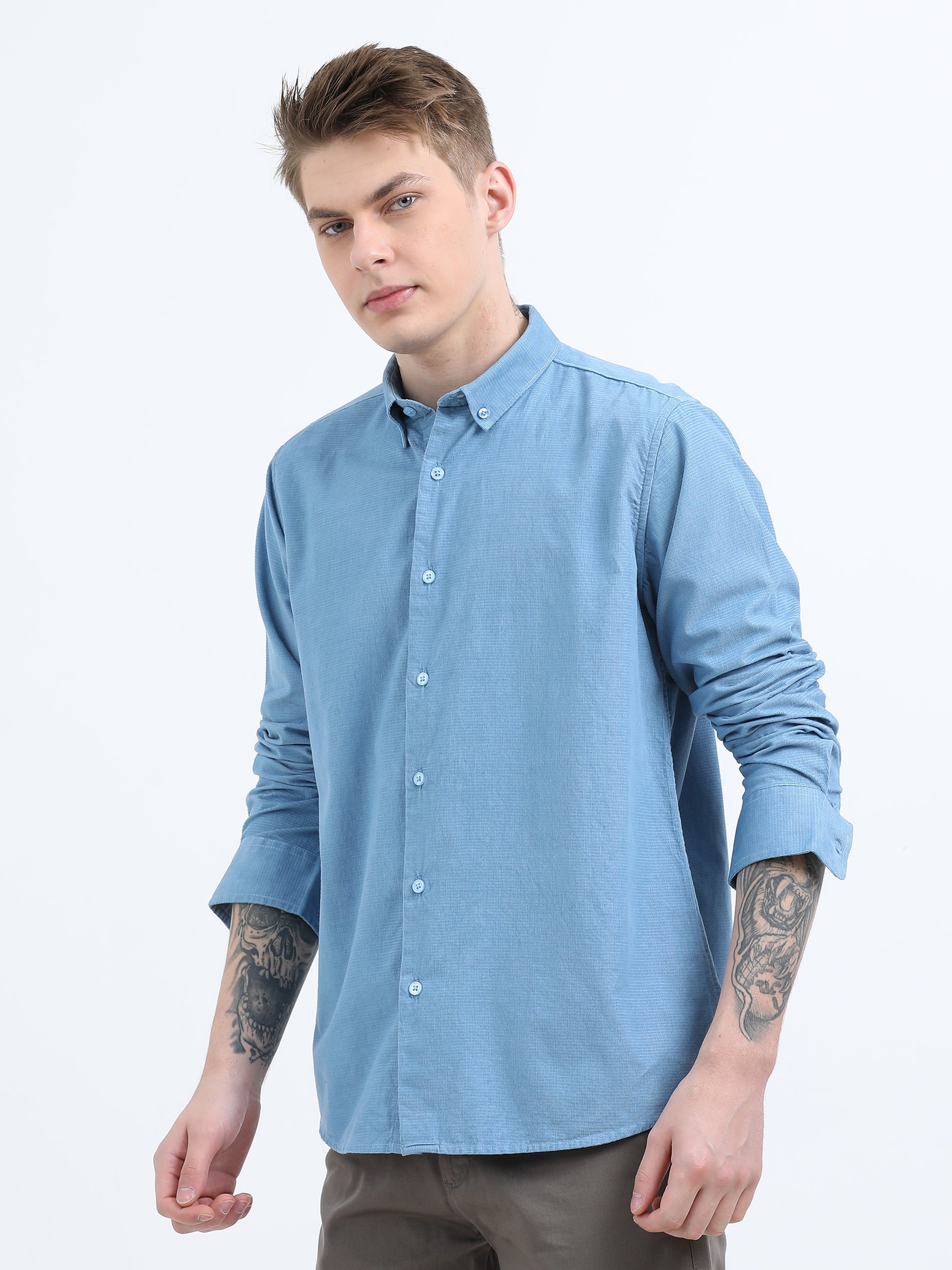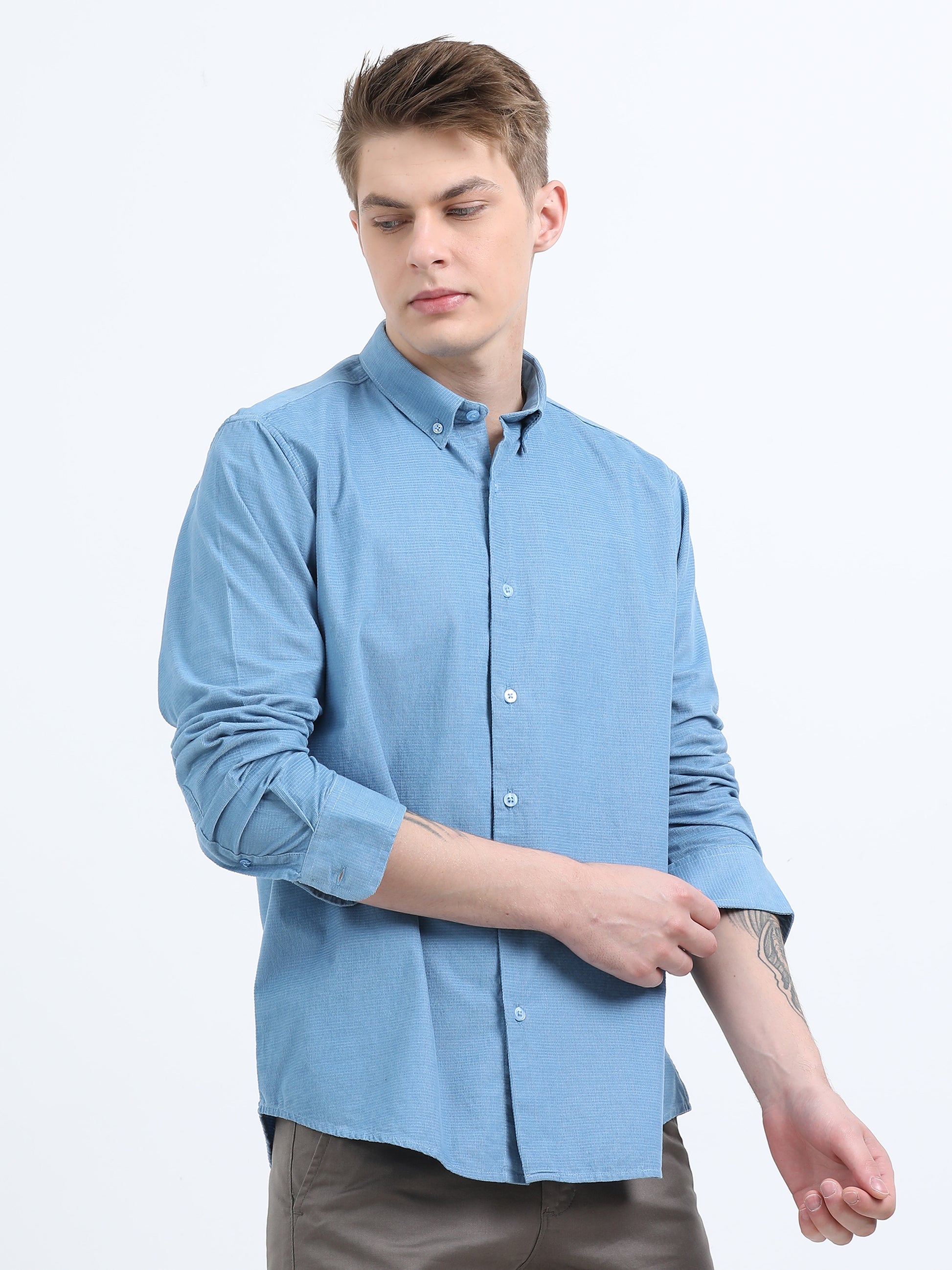 CORDUROY FULL SLEEVE PLAIN AIR FORCE BLUE SHIRT