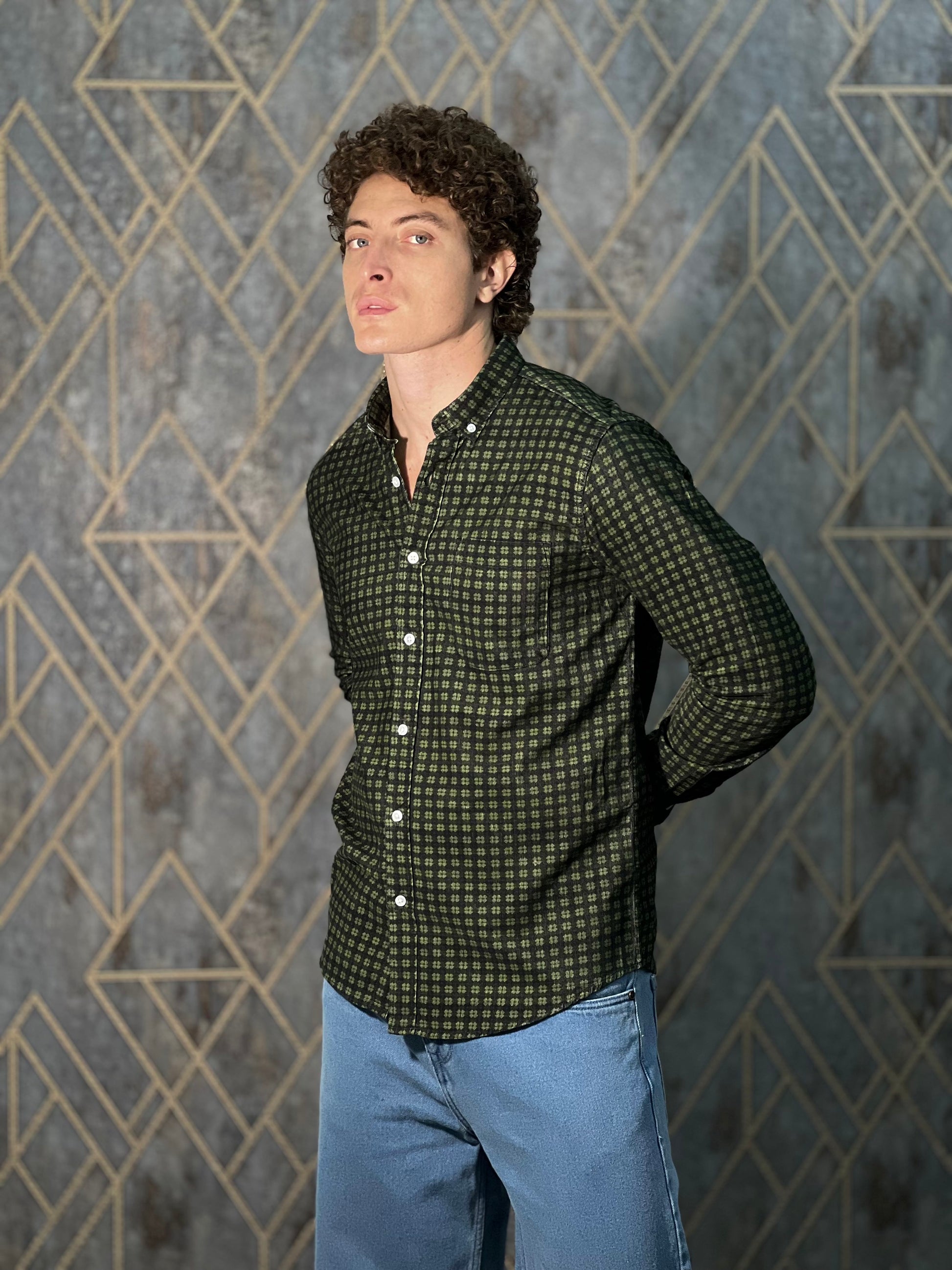 CORDUROY GREEN PRINTED SHIRT