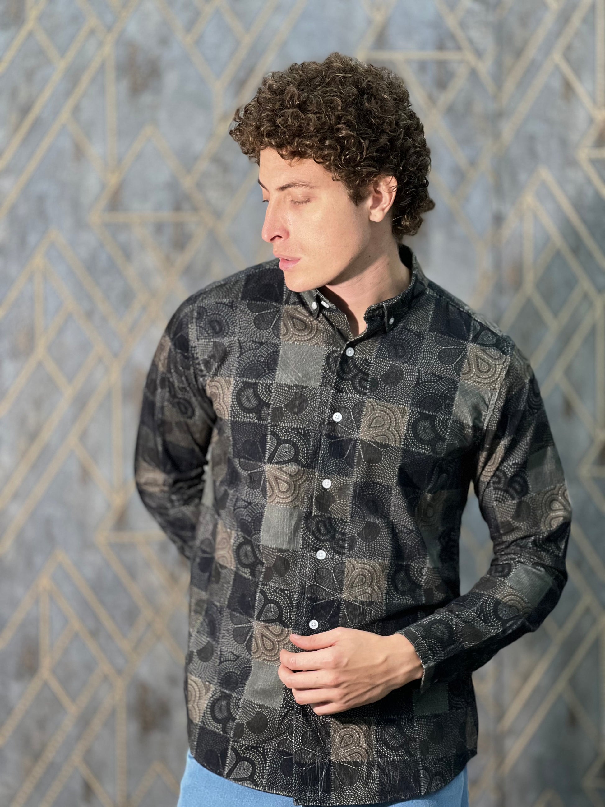 CORDUROY PRINTED PREMIUM BLACK SHIRT