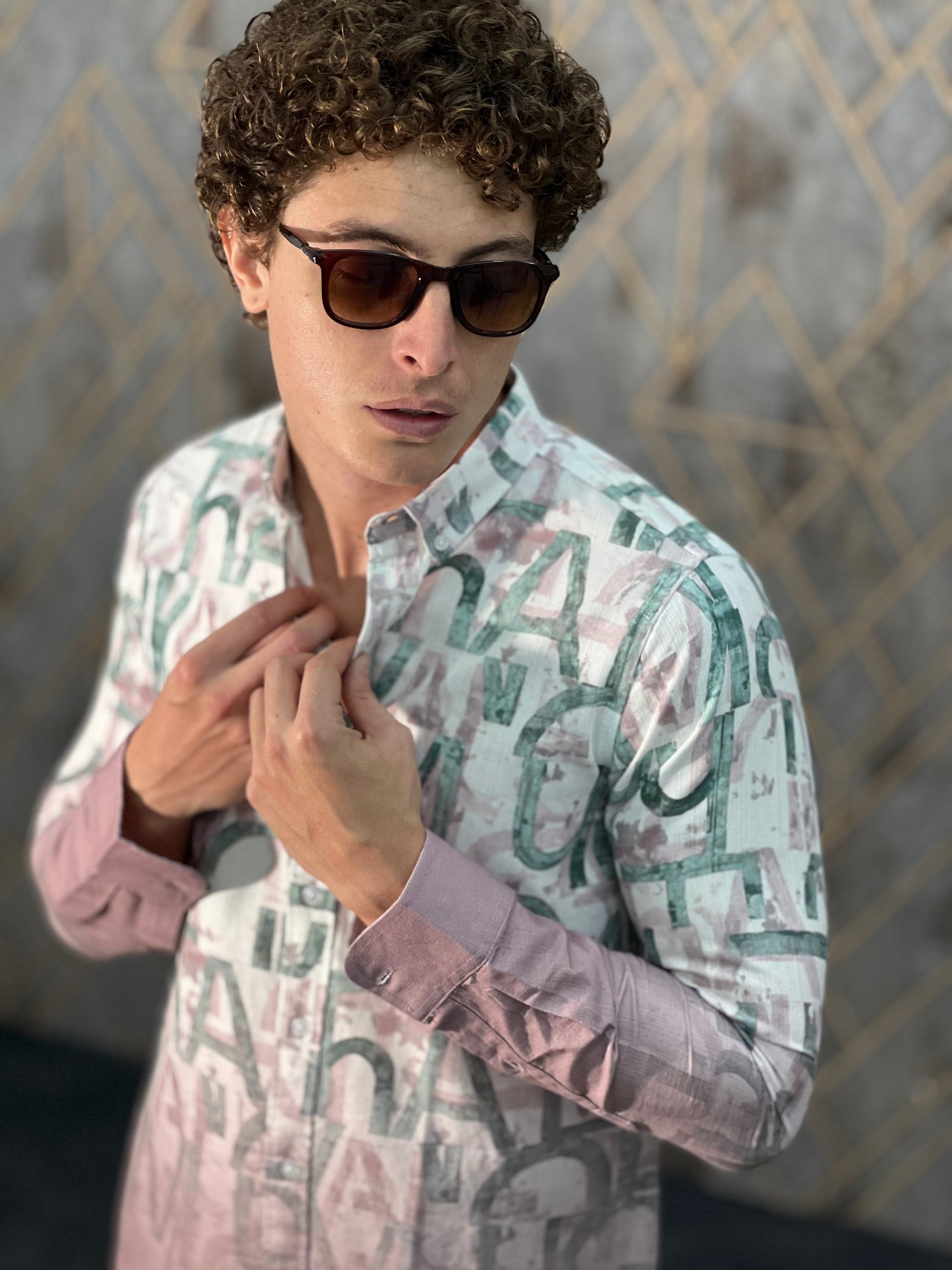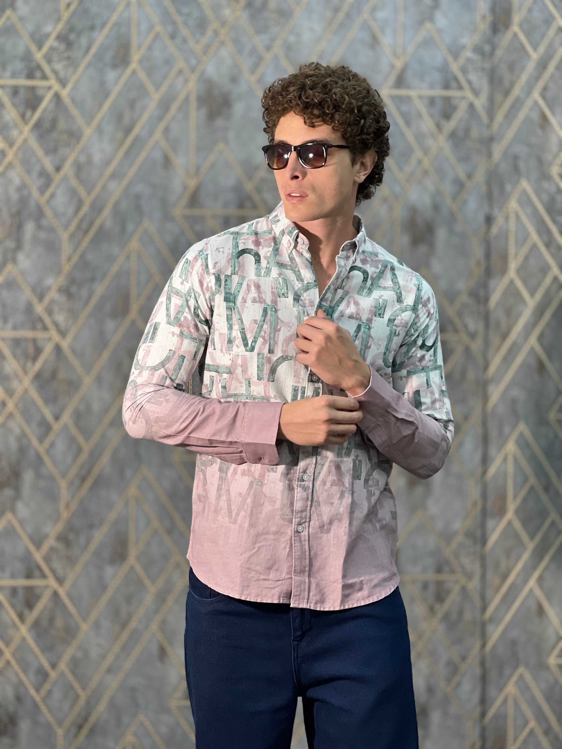 COTTON LINEN OMBRE PINK PRINTED SHIRT