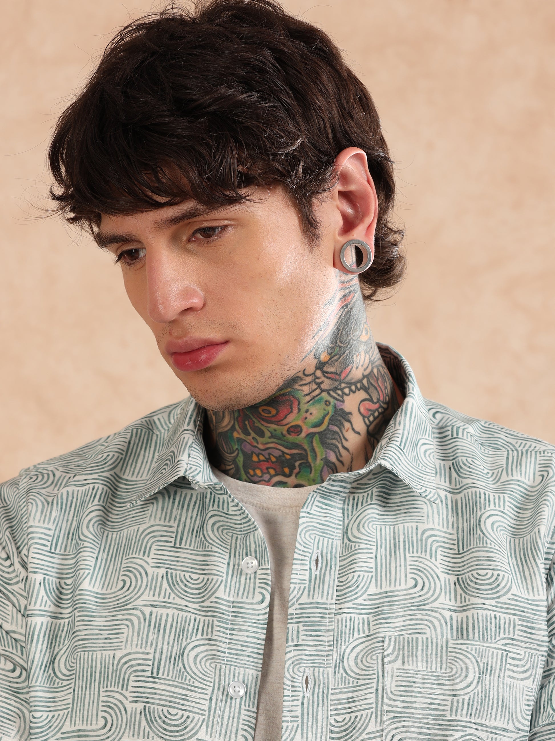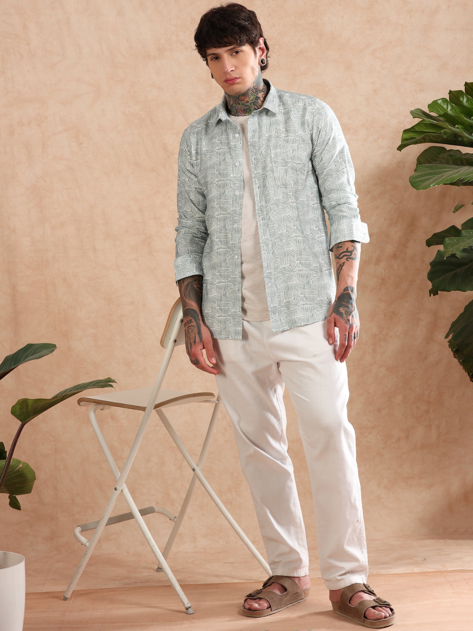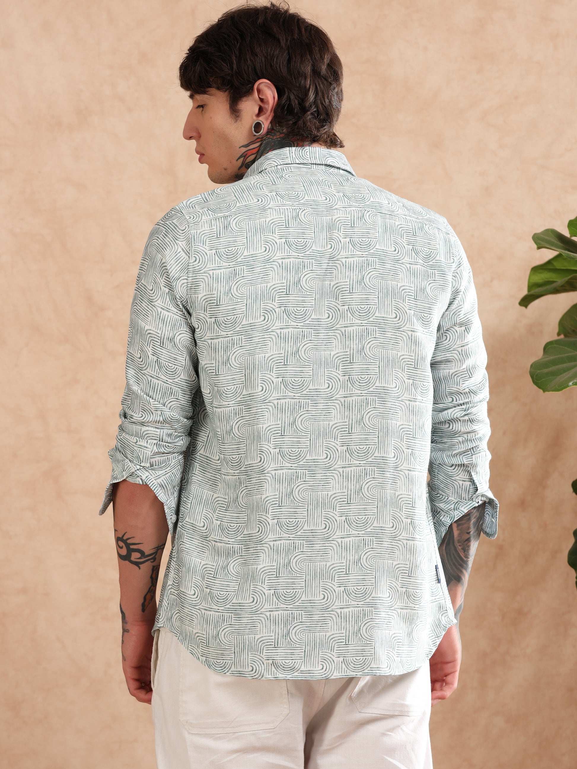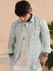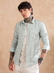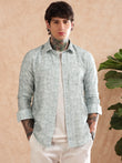 GREEN COTTON LINEN PRINTED SHIRT