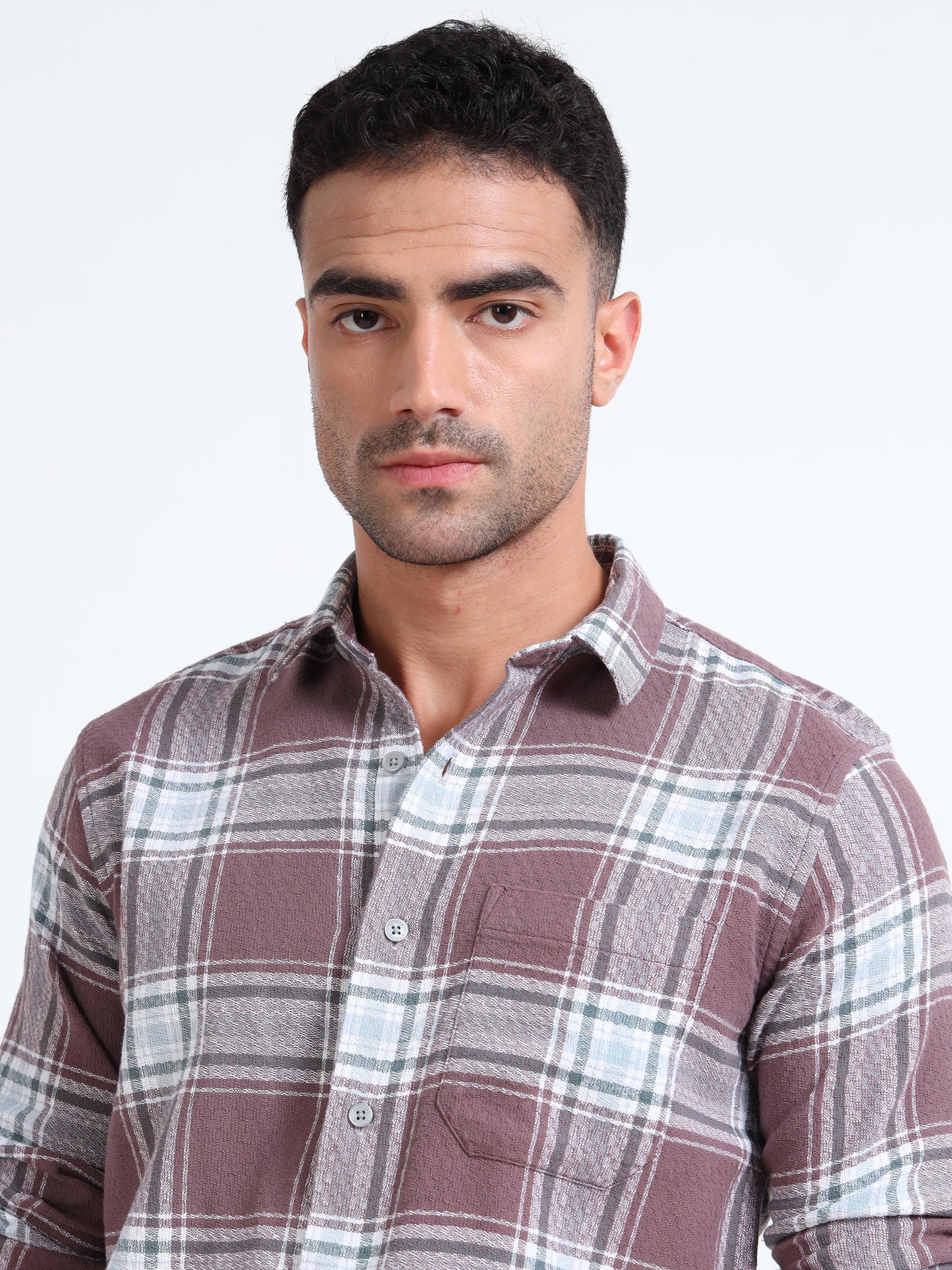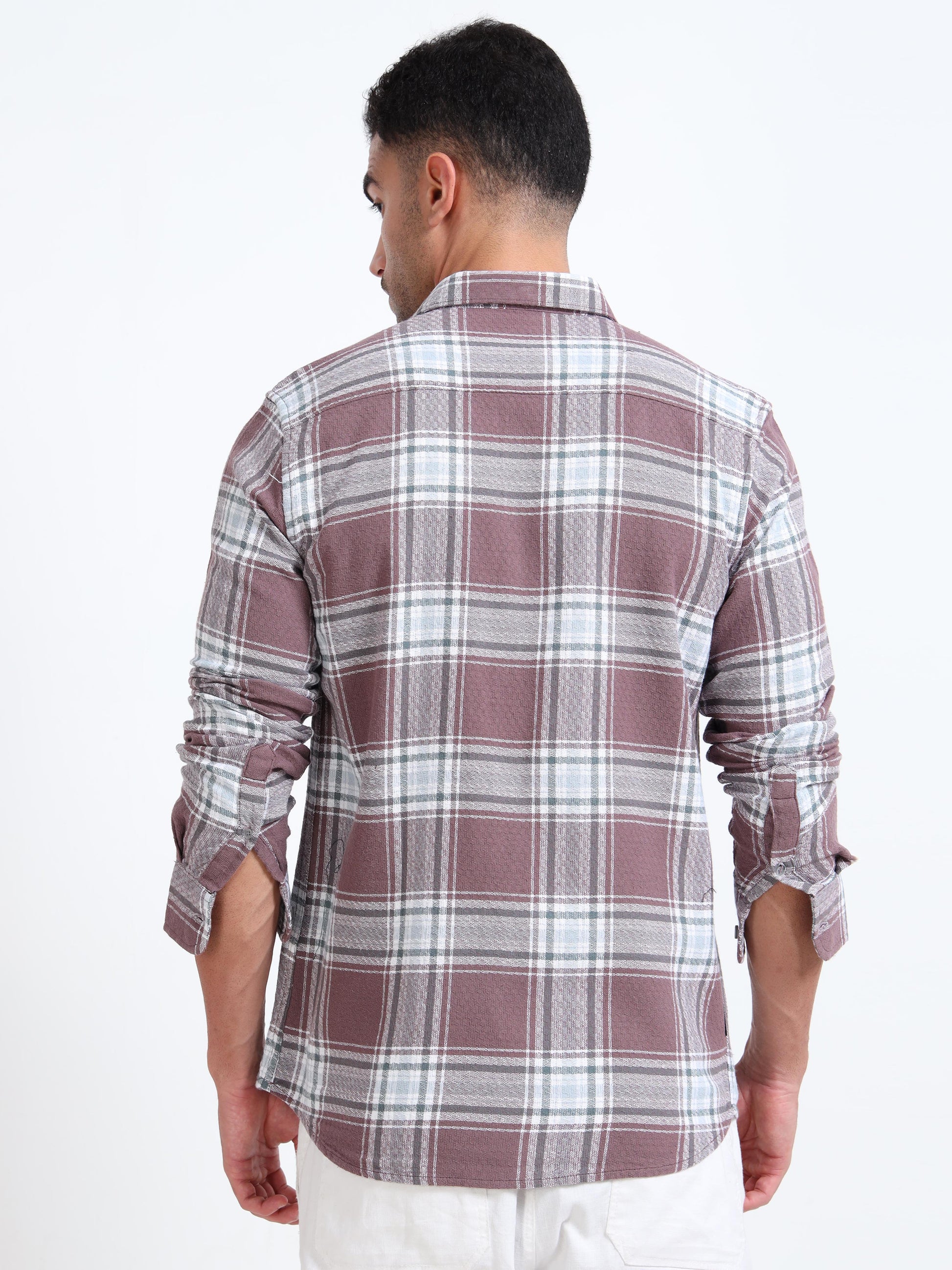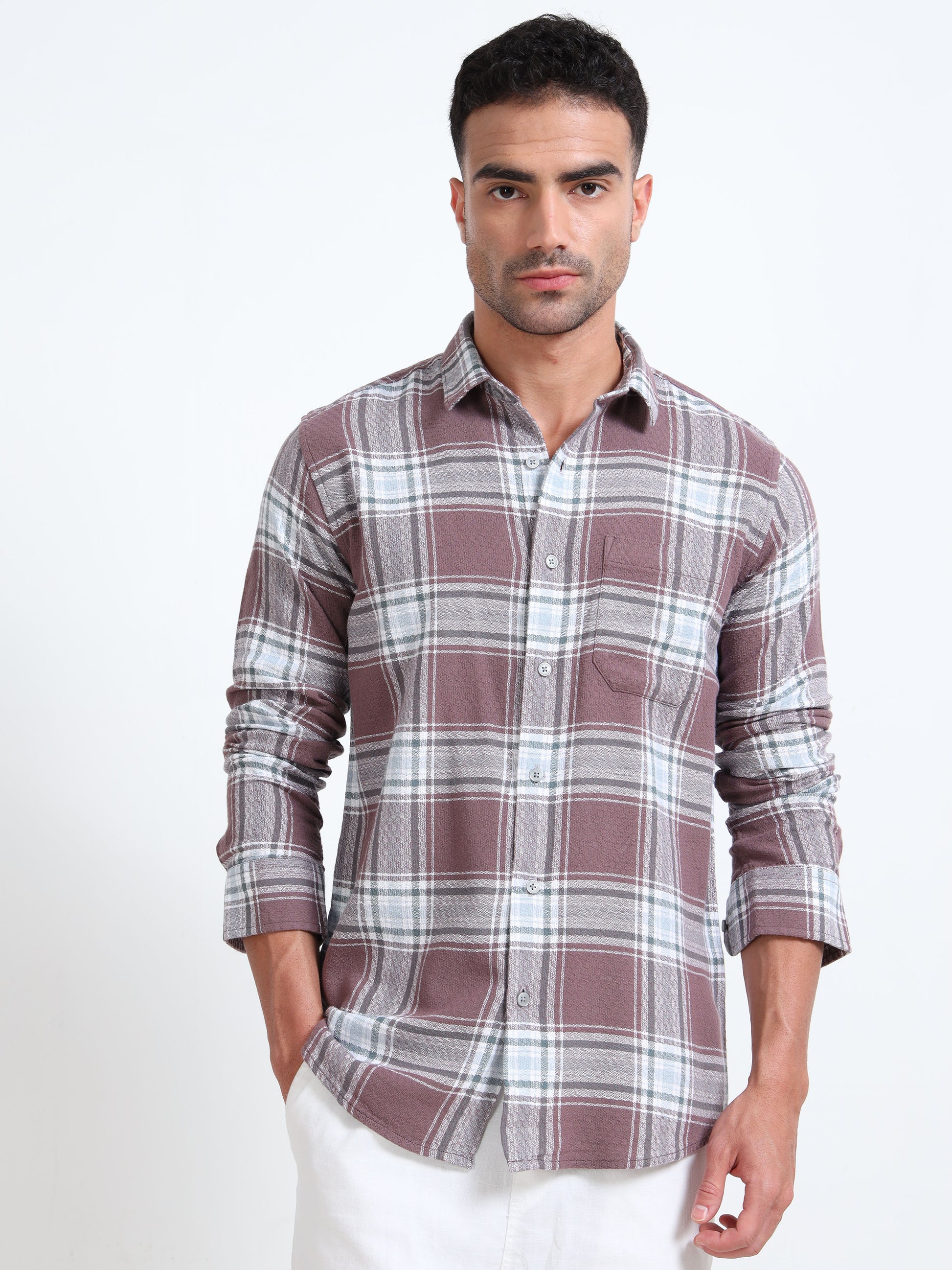 DOBBY BROWN CHECKERED SINGLE POCKET SHIRT