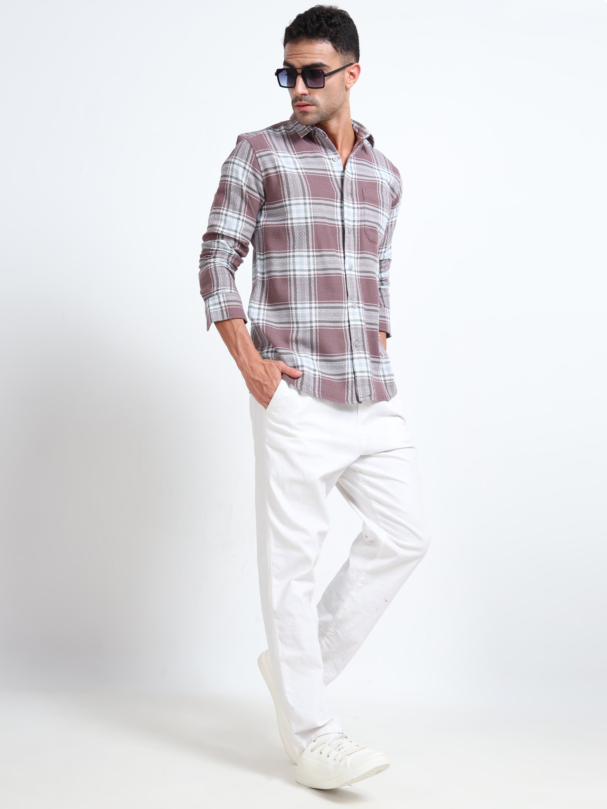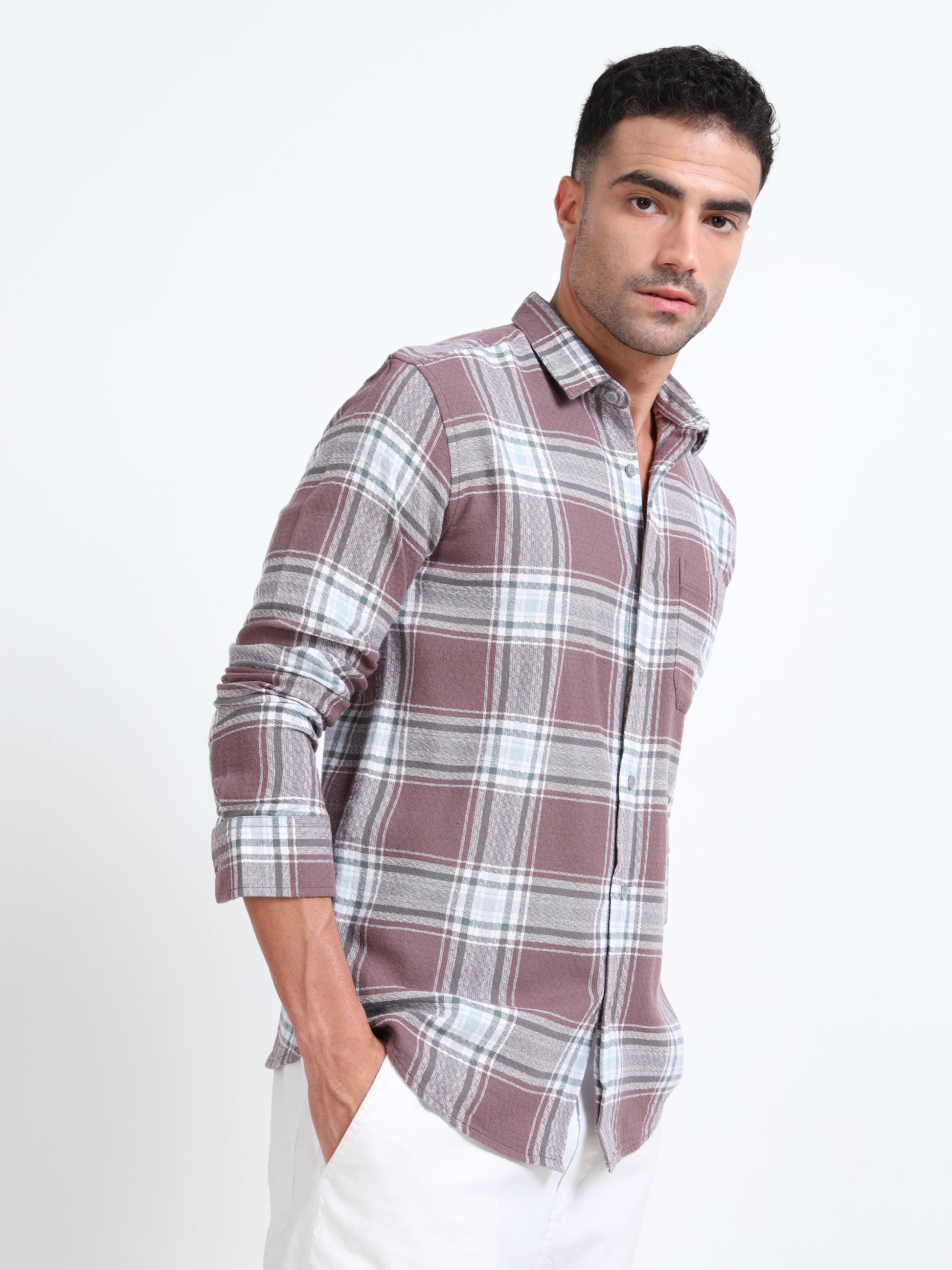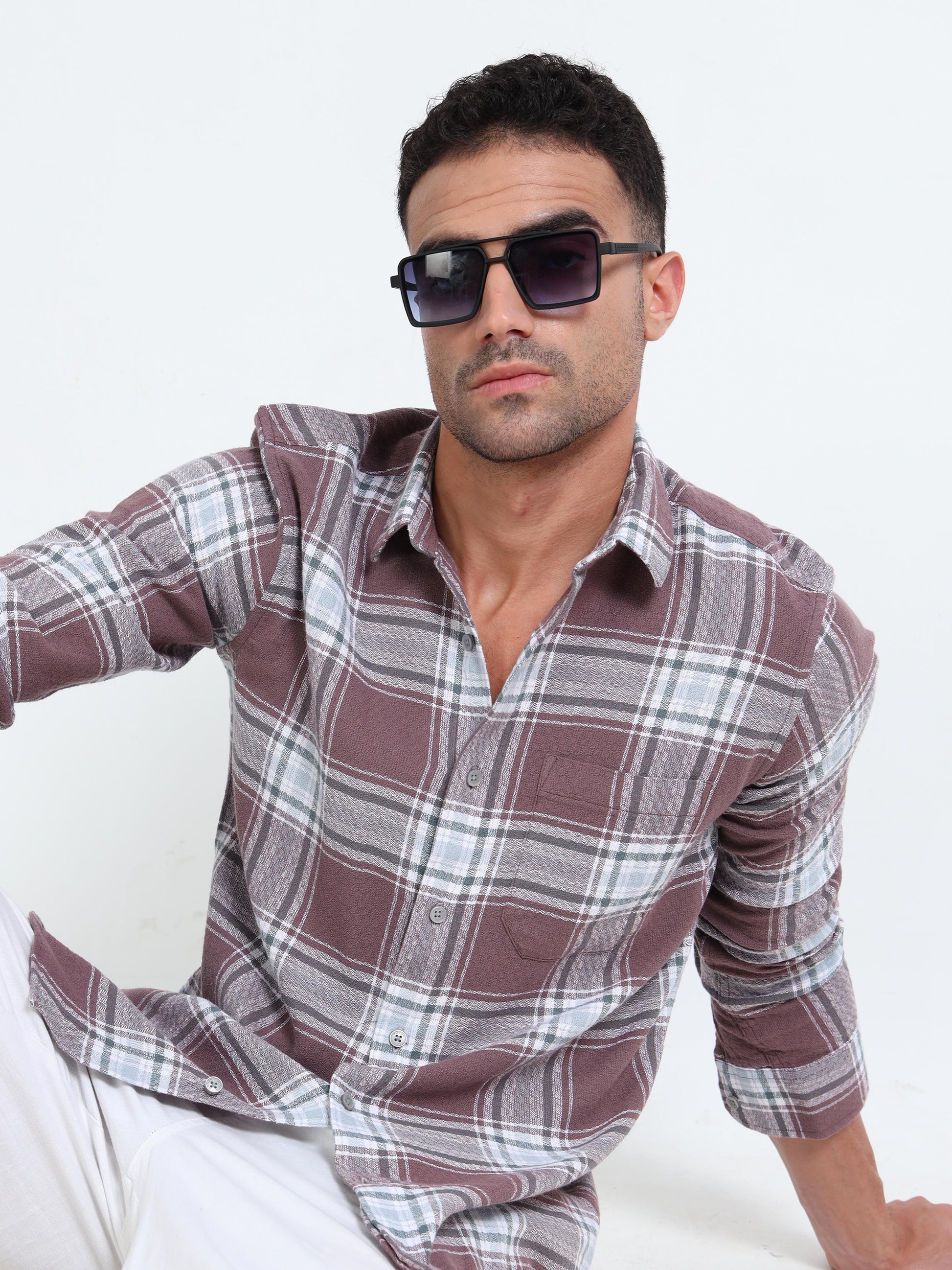 DOBBY BROWN CHECKERED SINGLE POCKET SHIRT