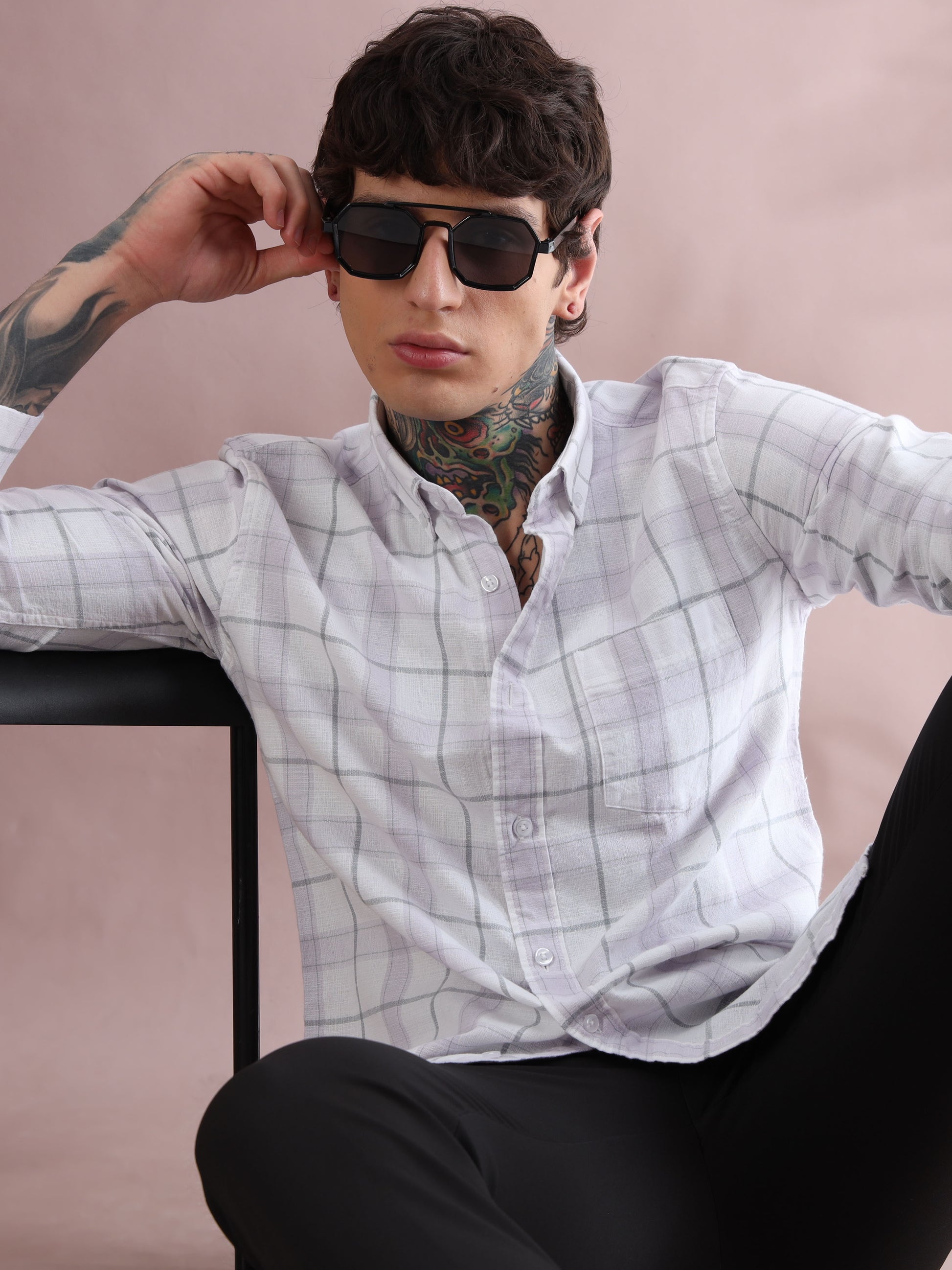 DOBBY CHECKED PURPLE SHIRT