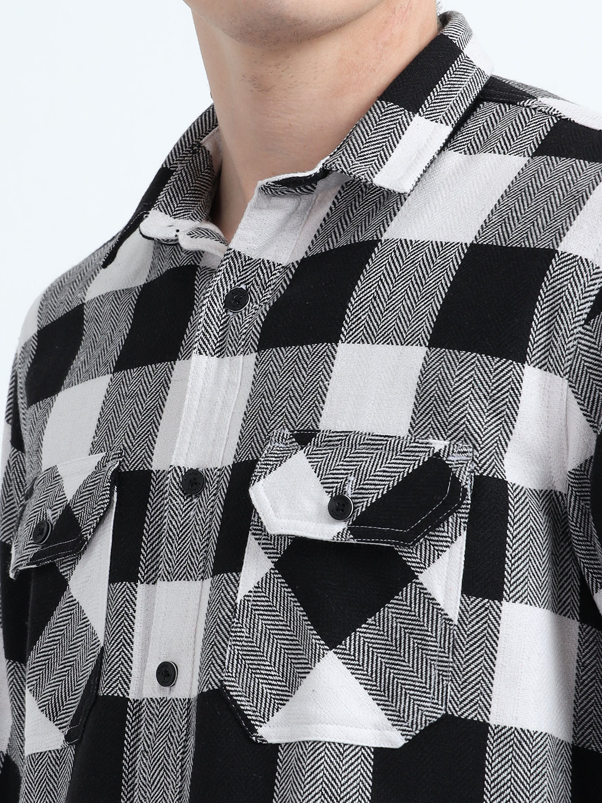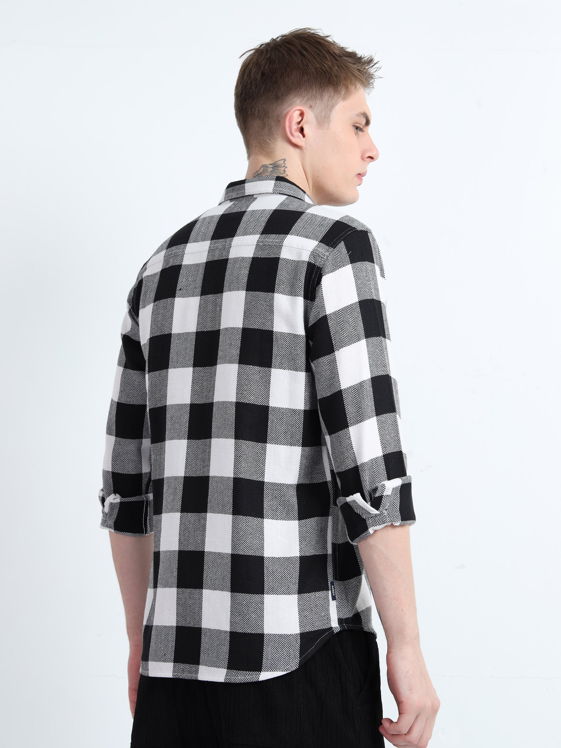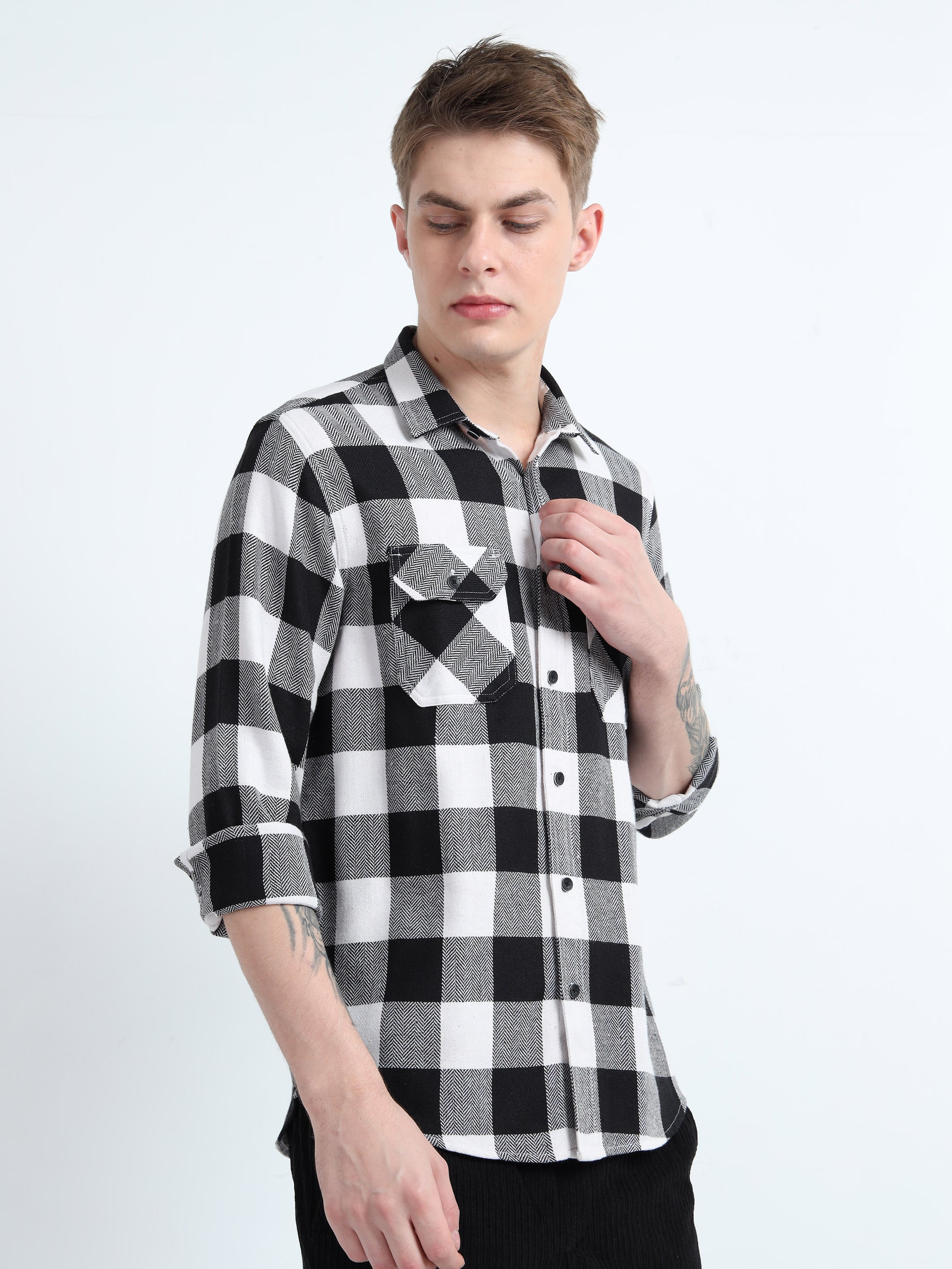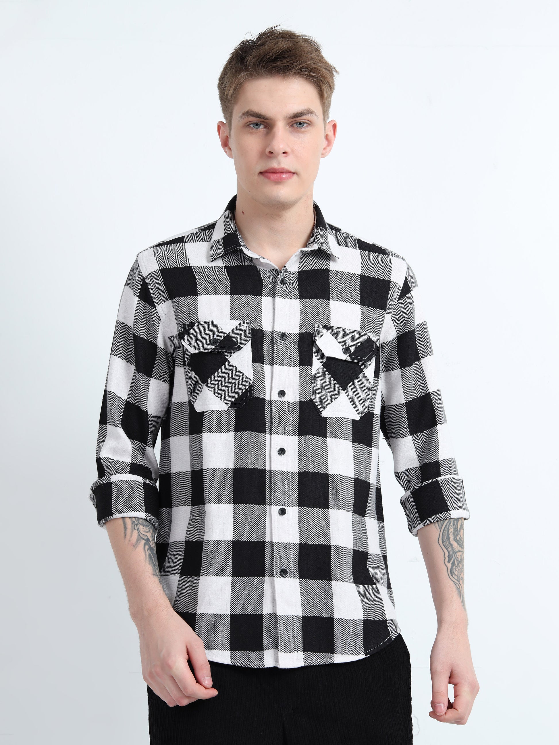 DOBBY CHECKERED DOUBLE POCKET SHIRT