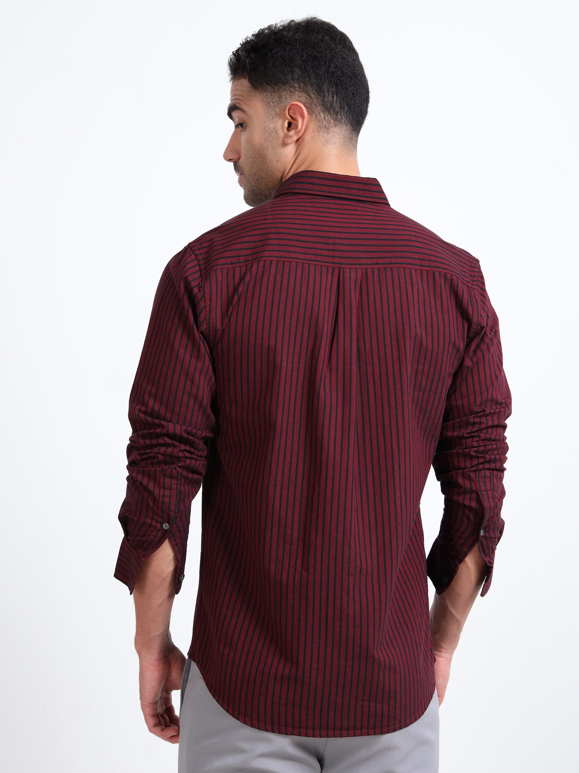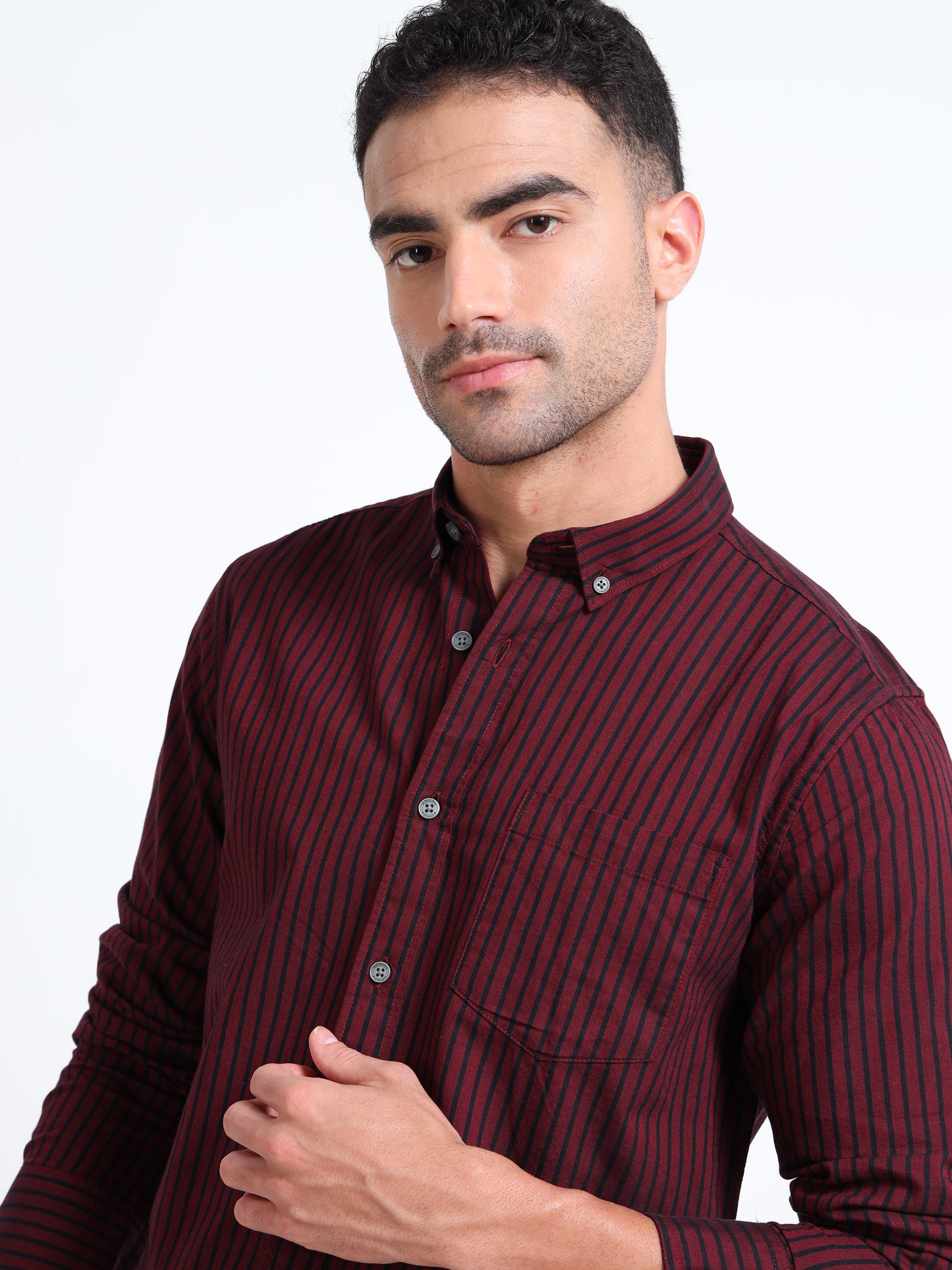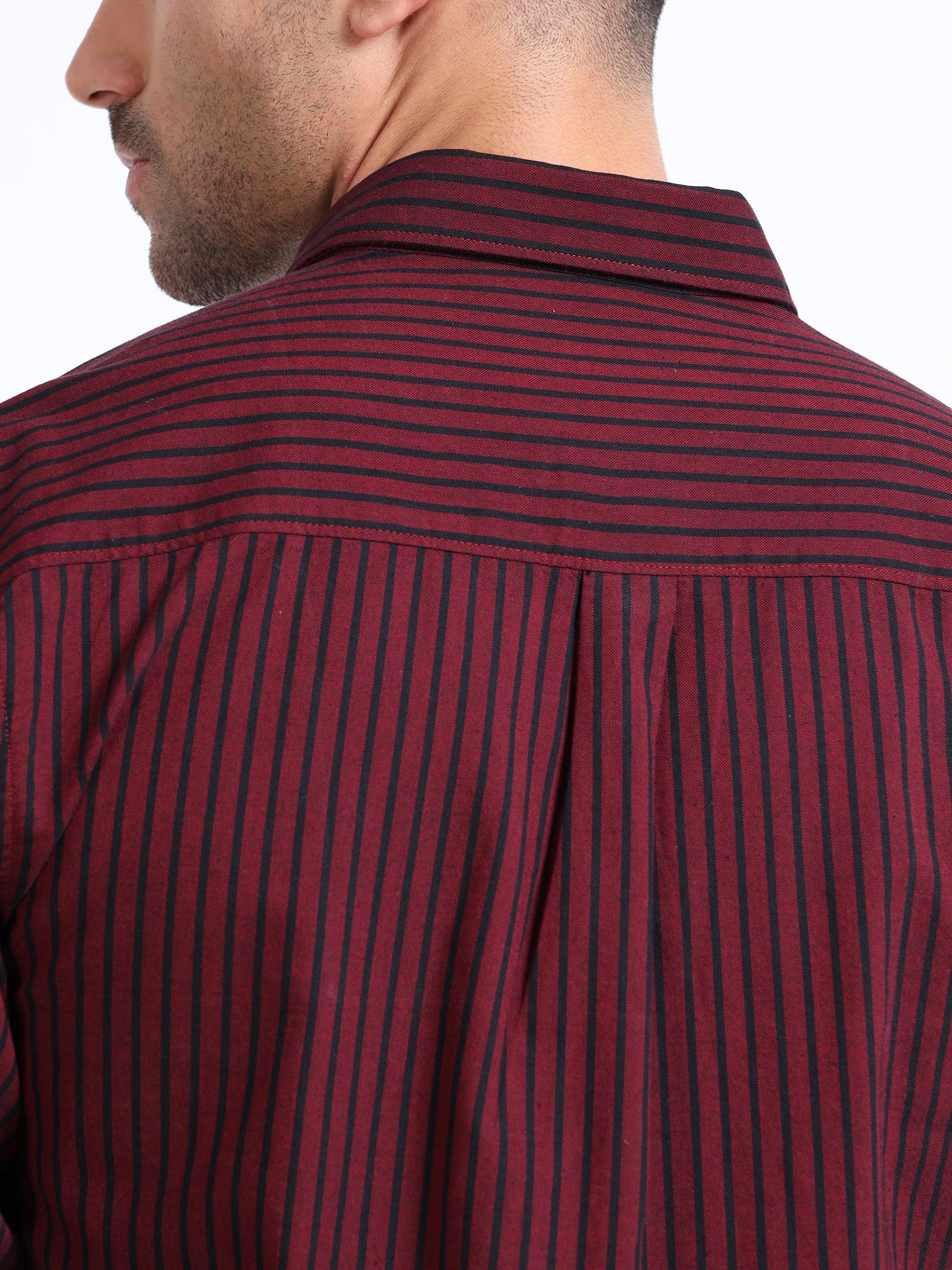 DYED OXFORD MAROON STRIPED SHIRT