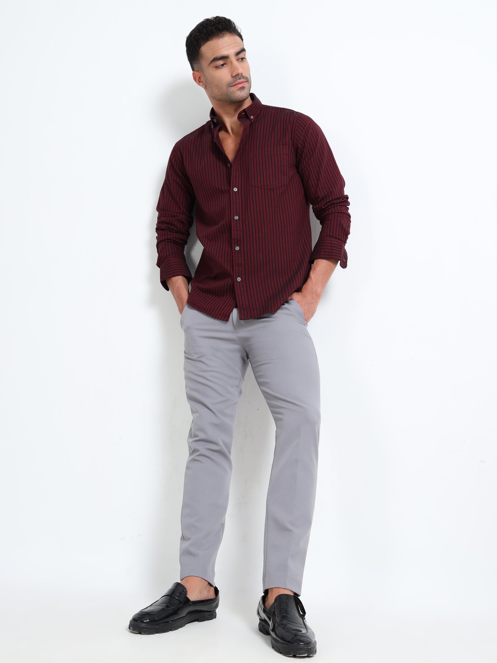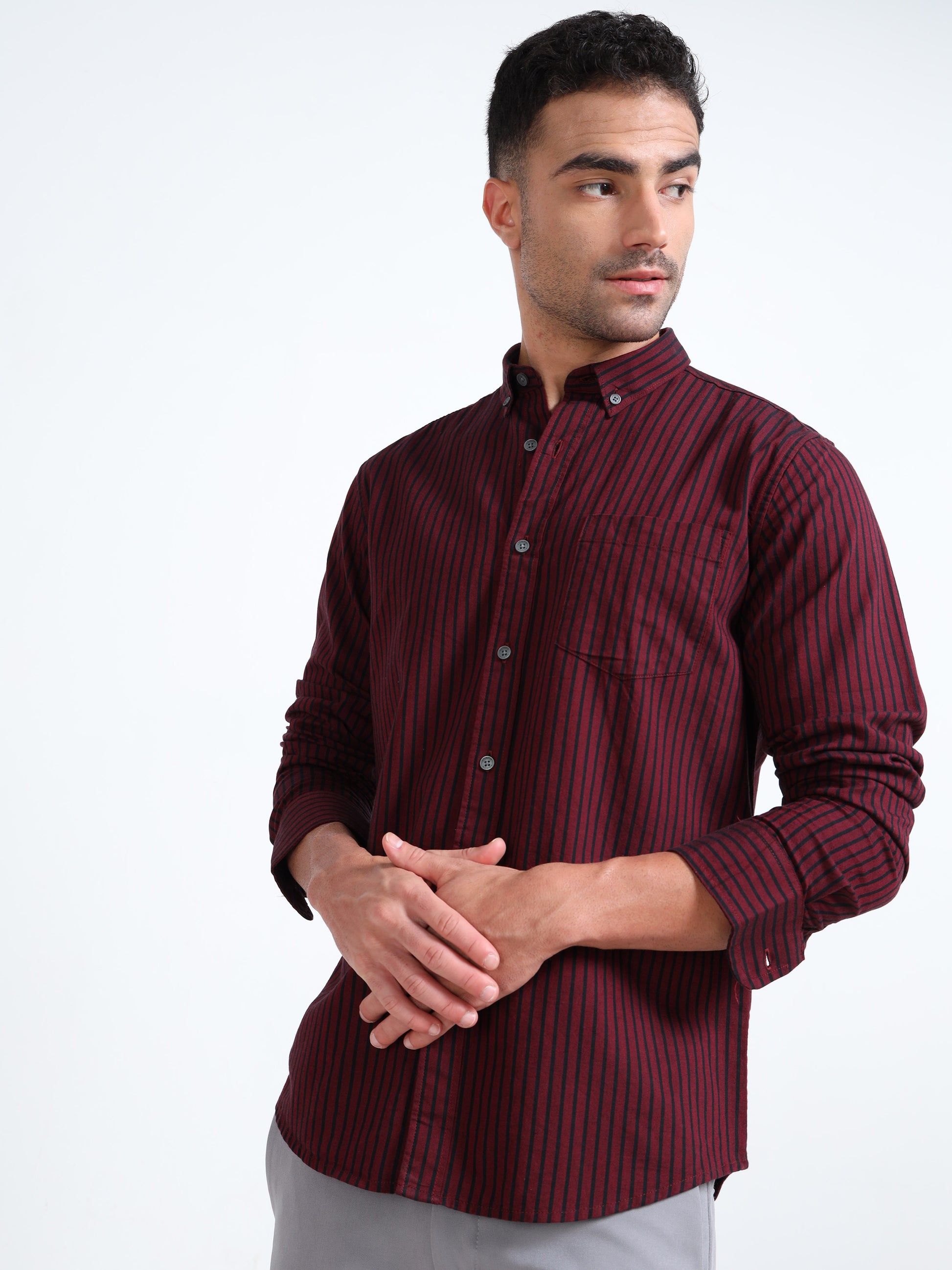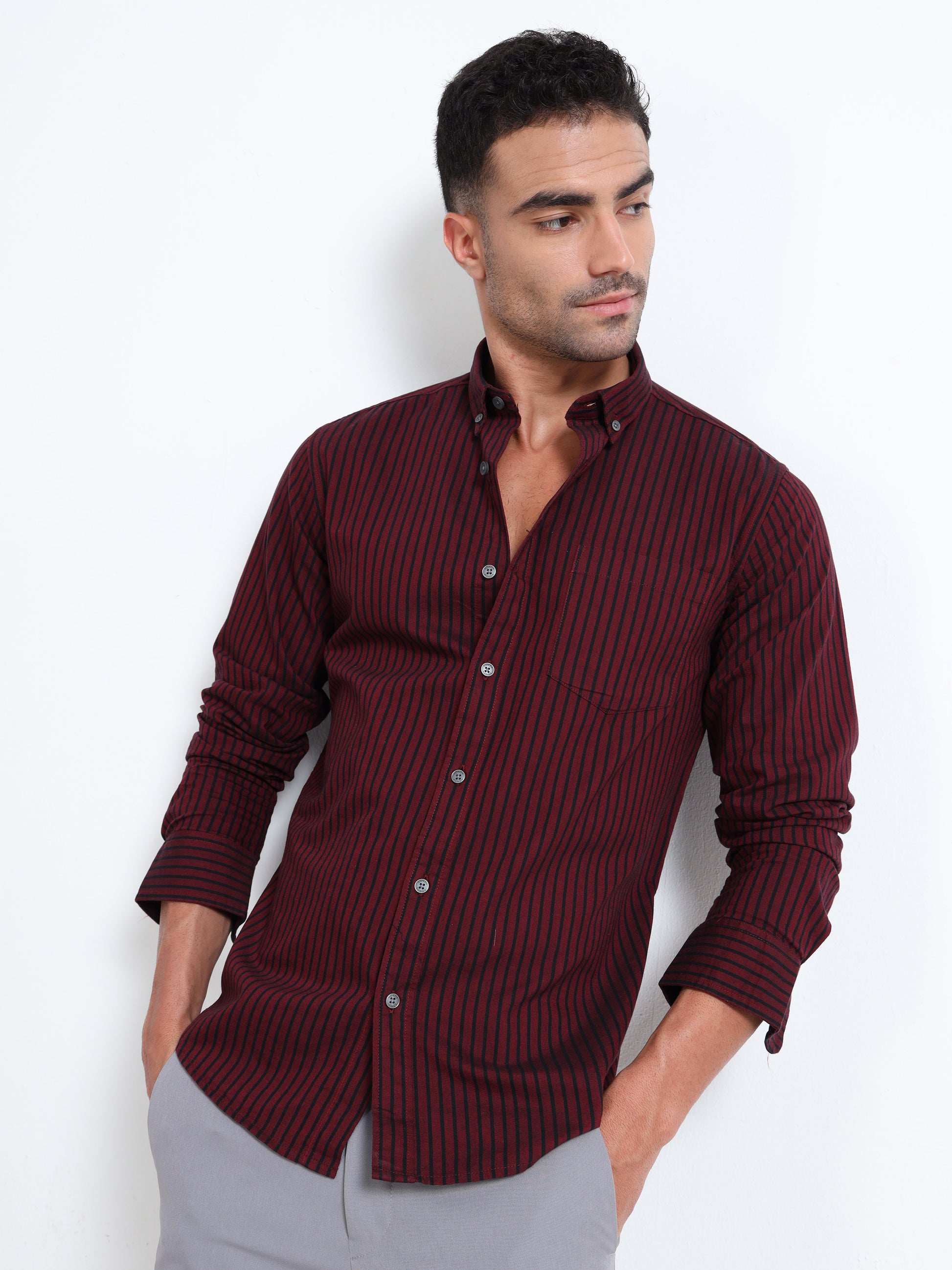 DYED OXFORD MAROON STRIPED SHIRT