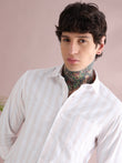 IMPORTED COTTON LINEN ORANGE STRIPED SHIRT
