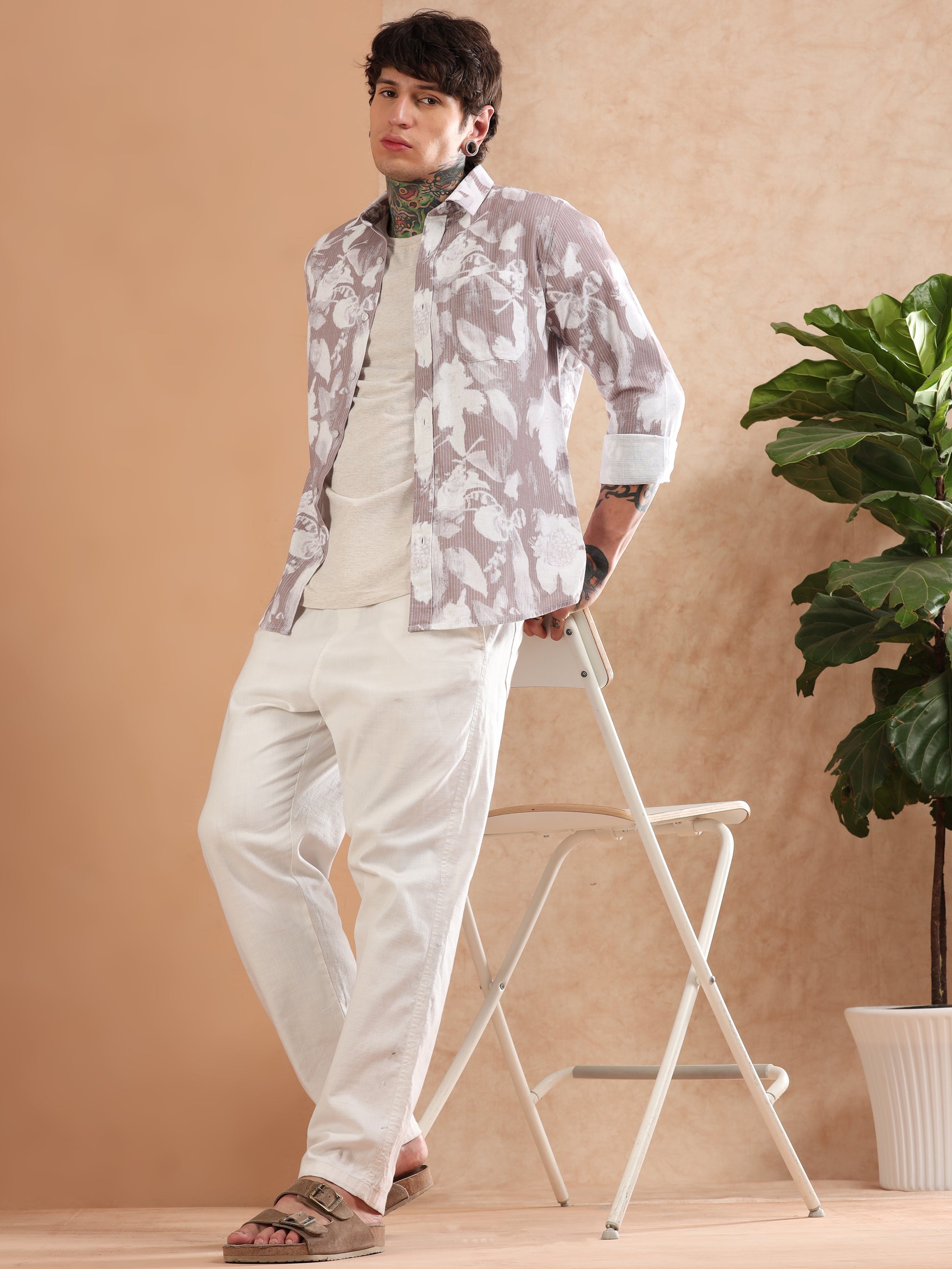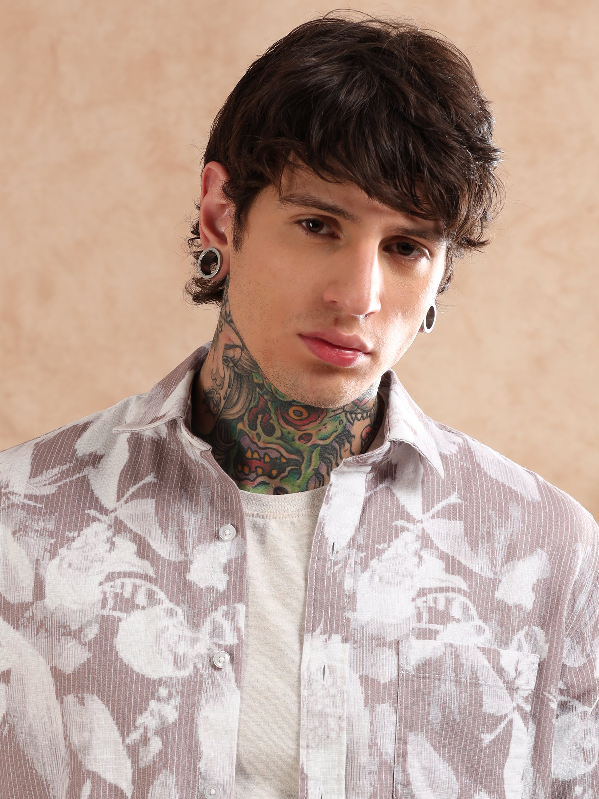 IMPORTED DOBBY PRINTED BROWN SHIRT
