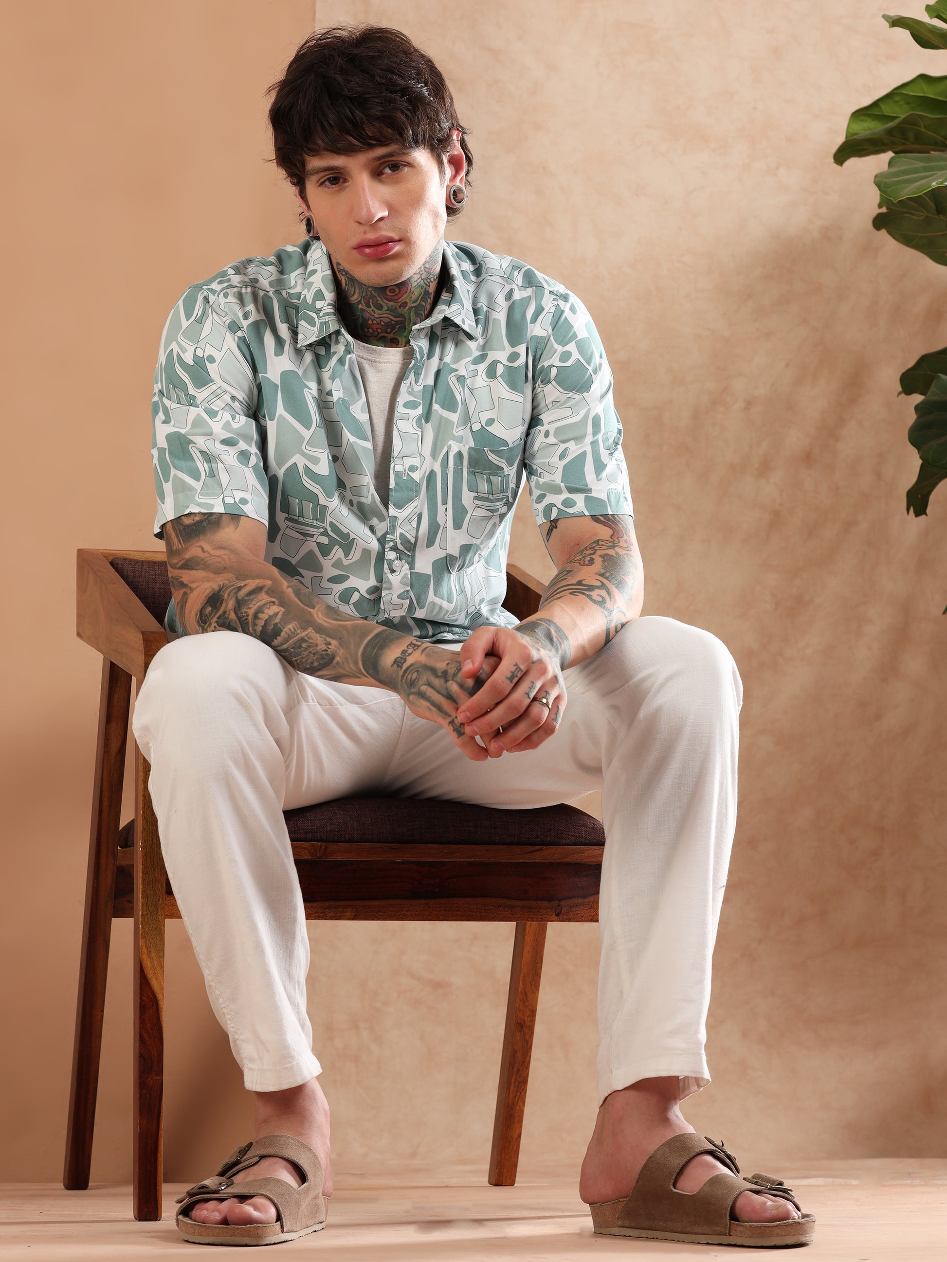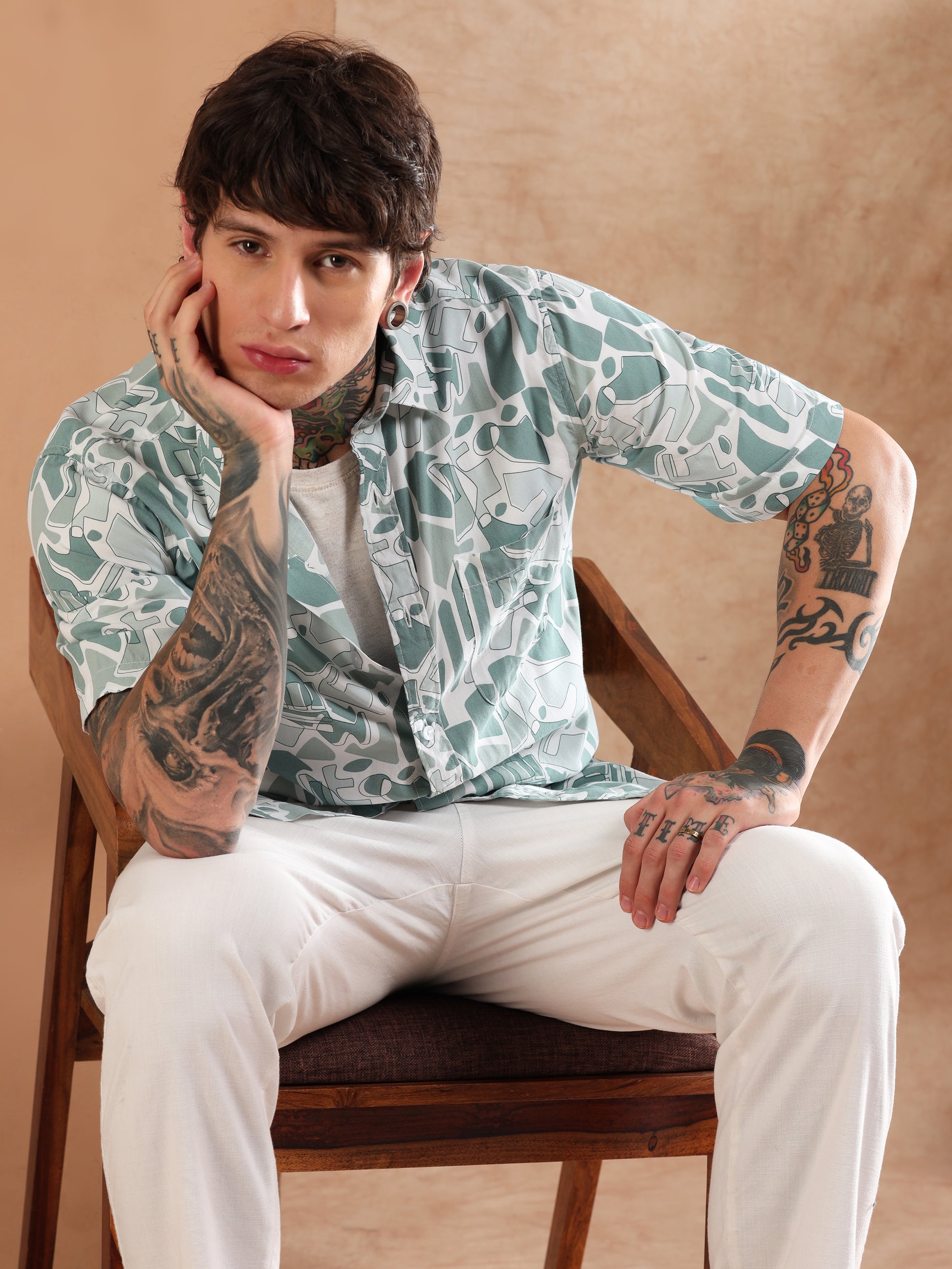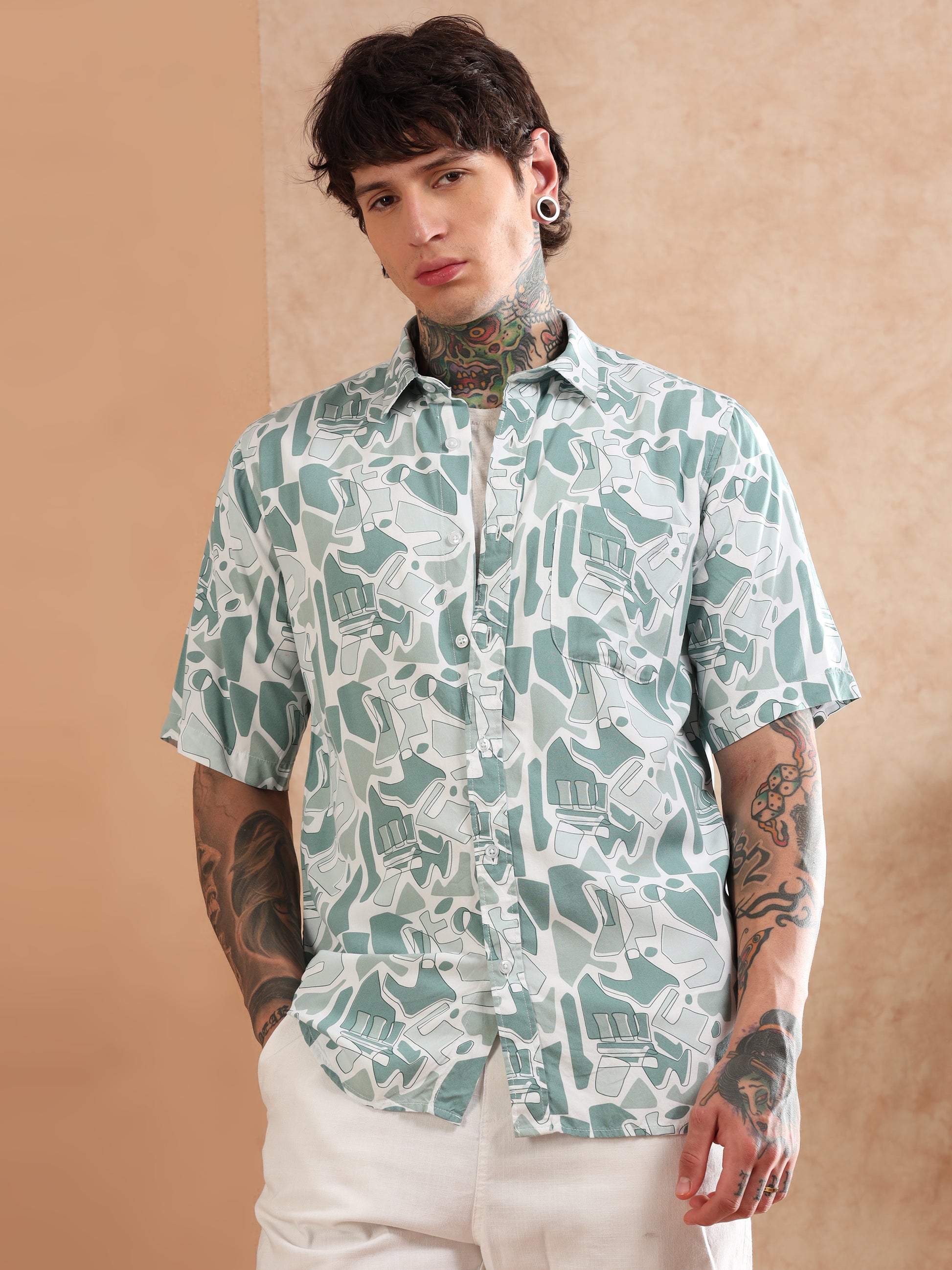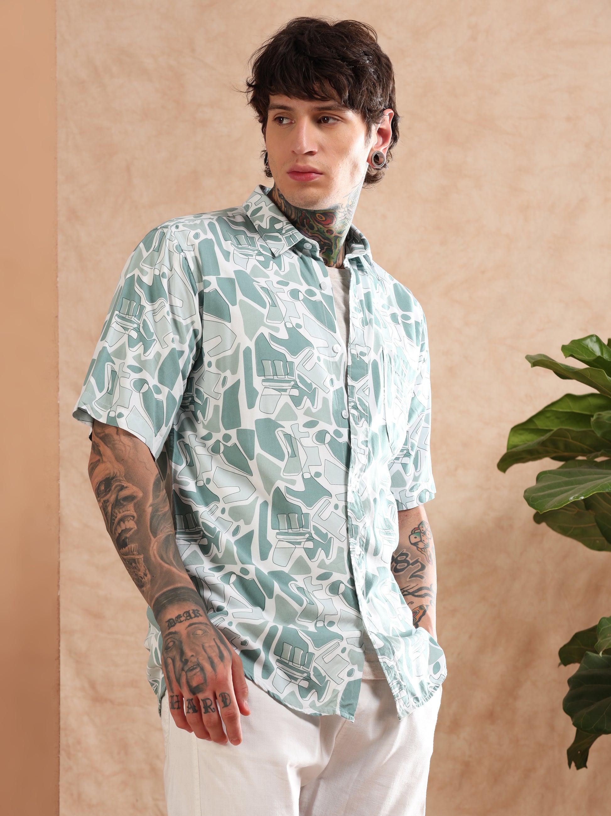 PREMIUM RAYON GREEN PRINTED SHIRT