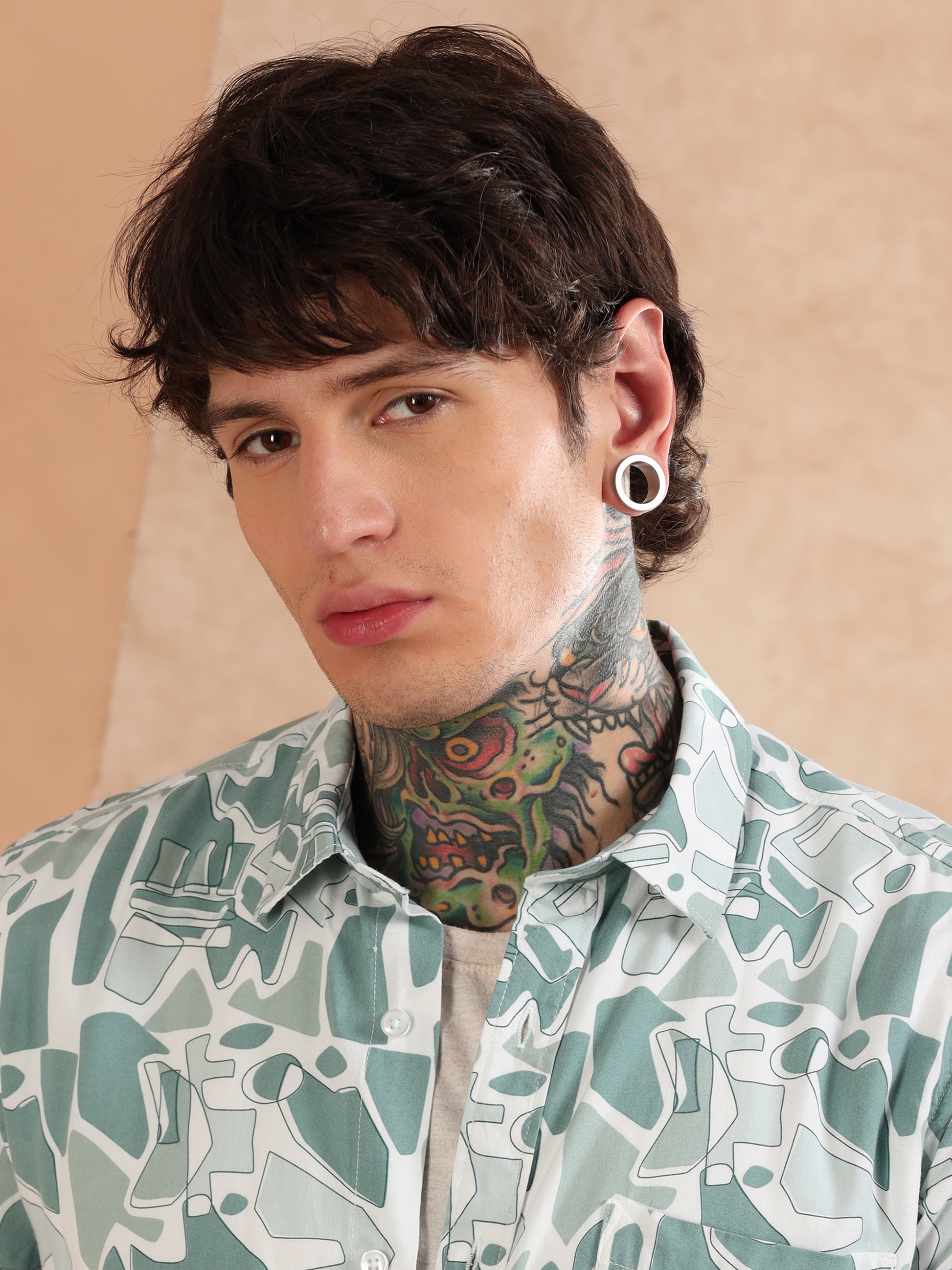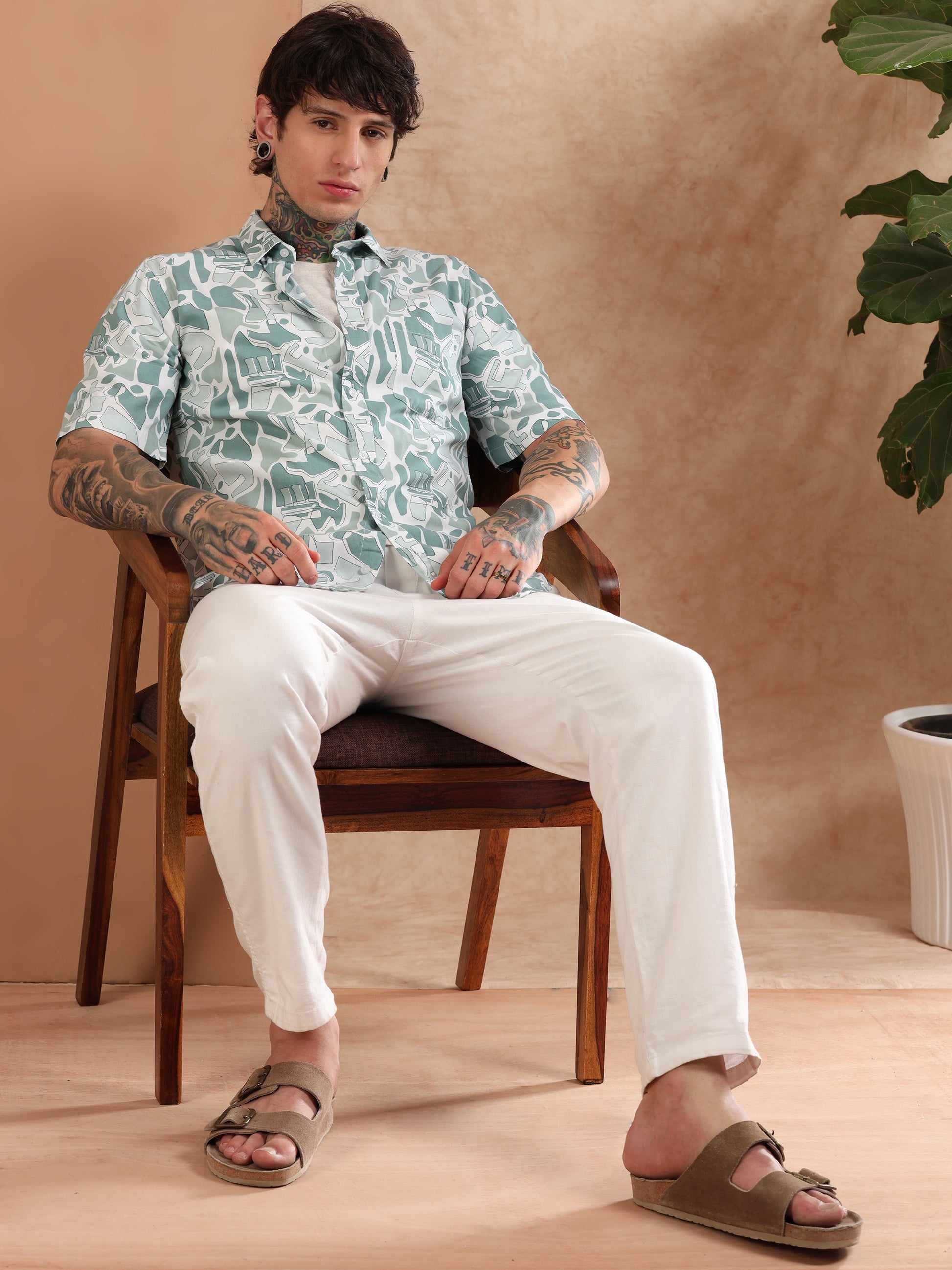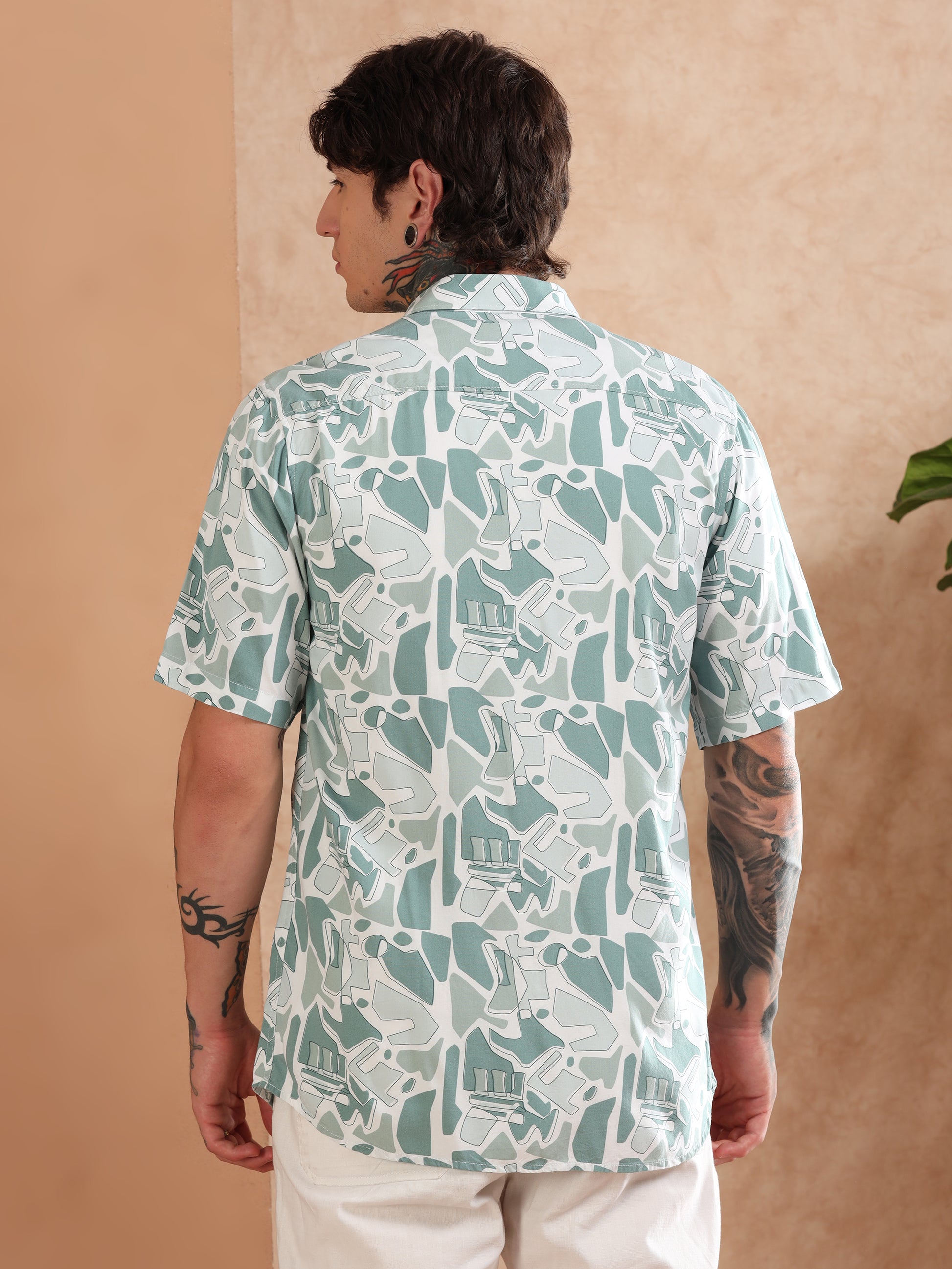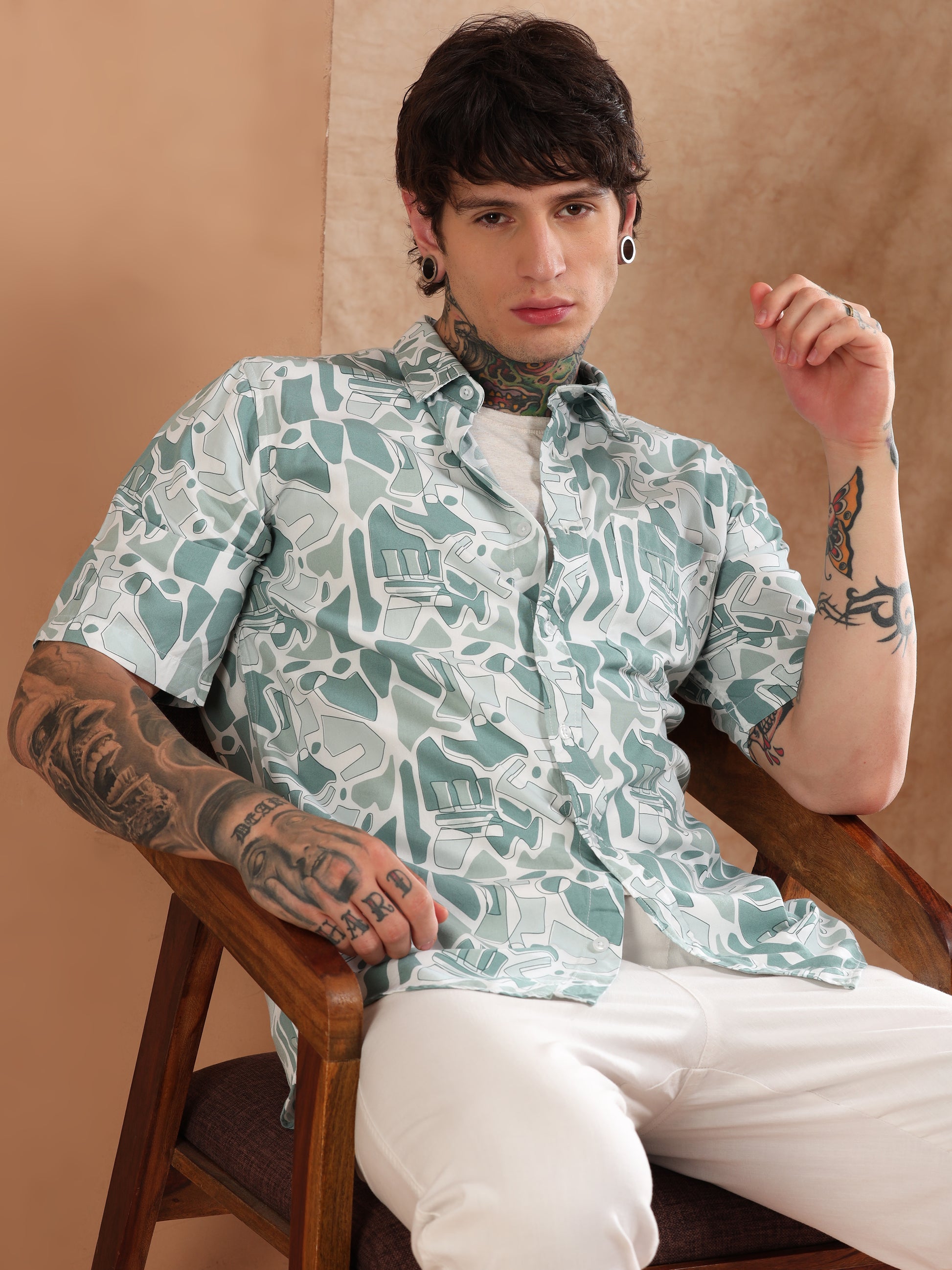 PREMIUM RAYON GREEN PRINTED SHIRT