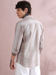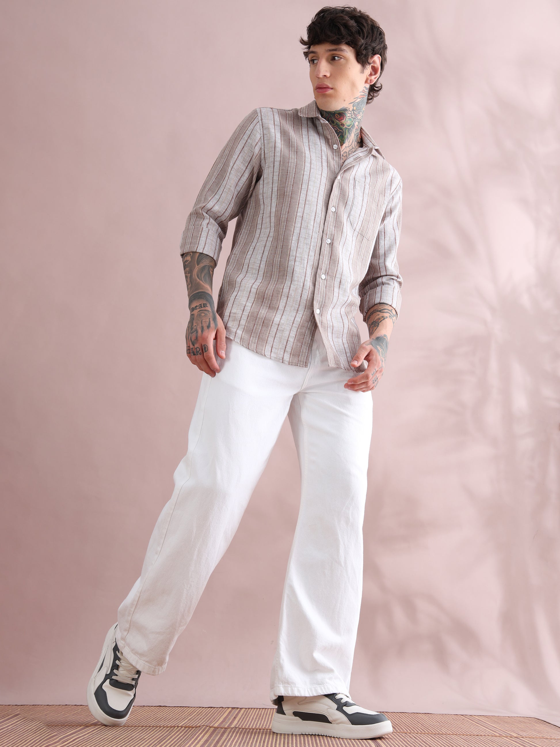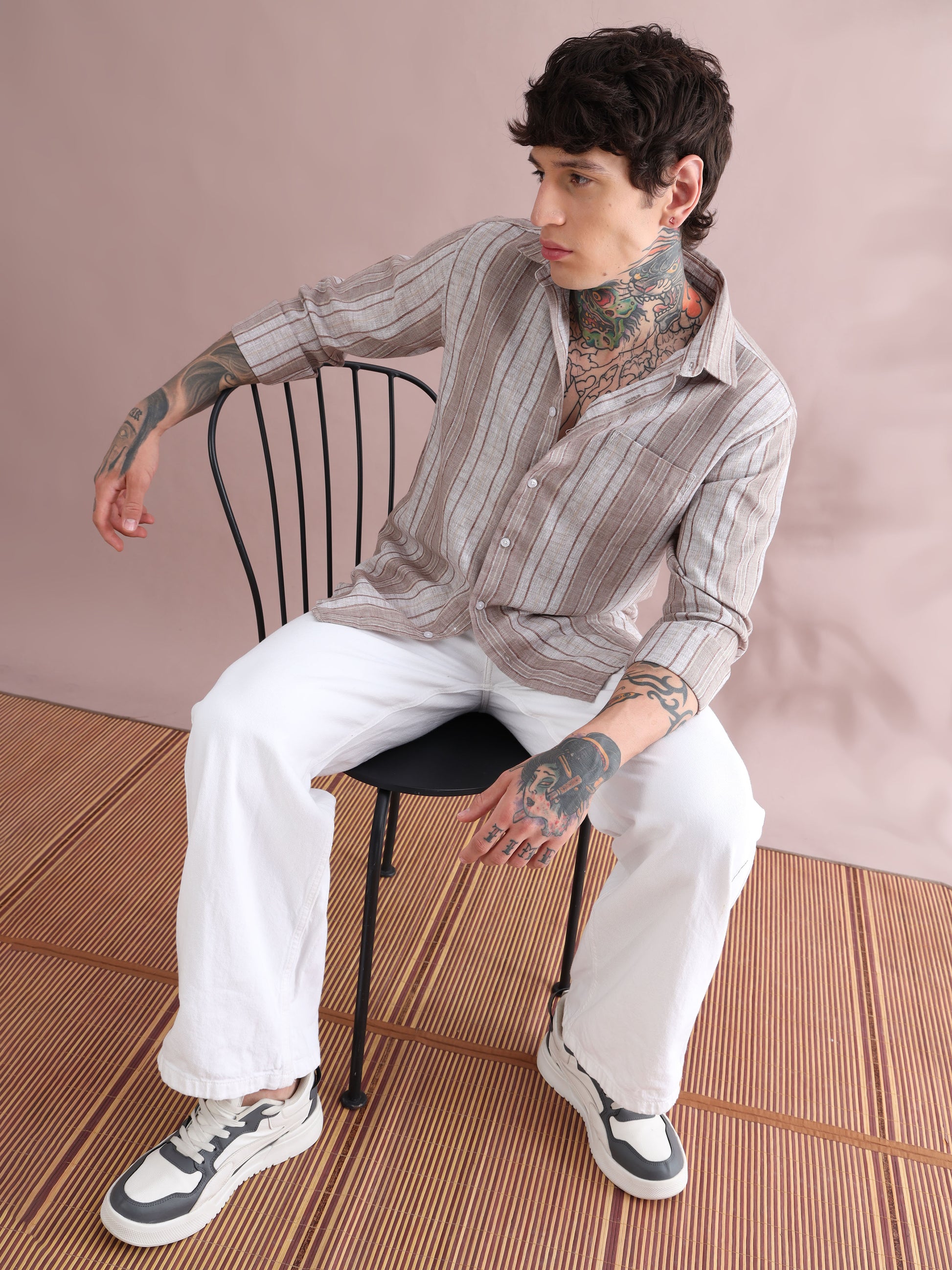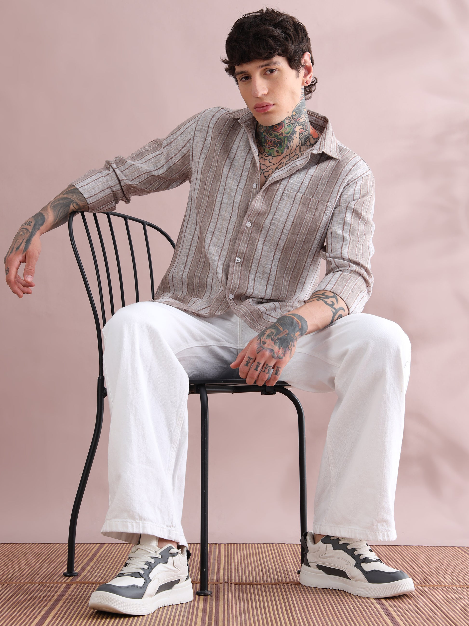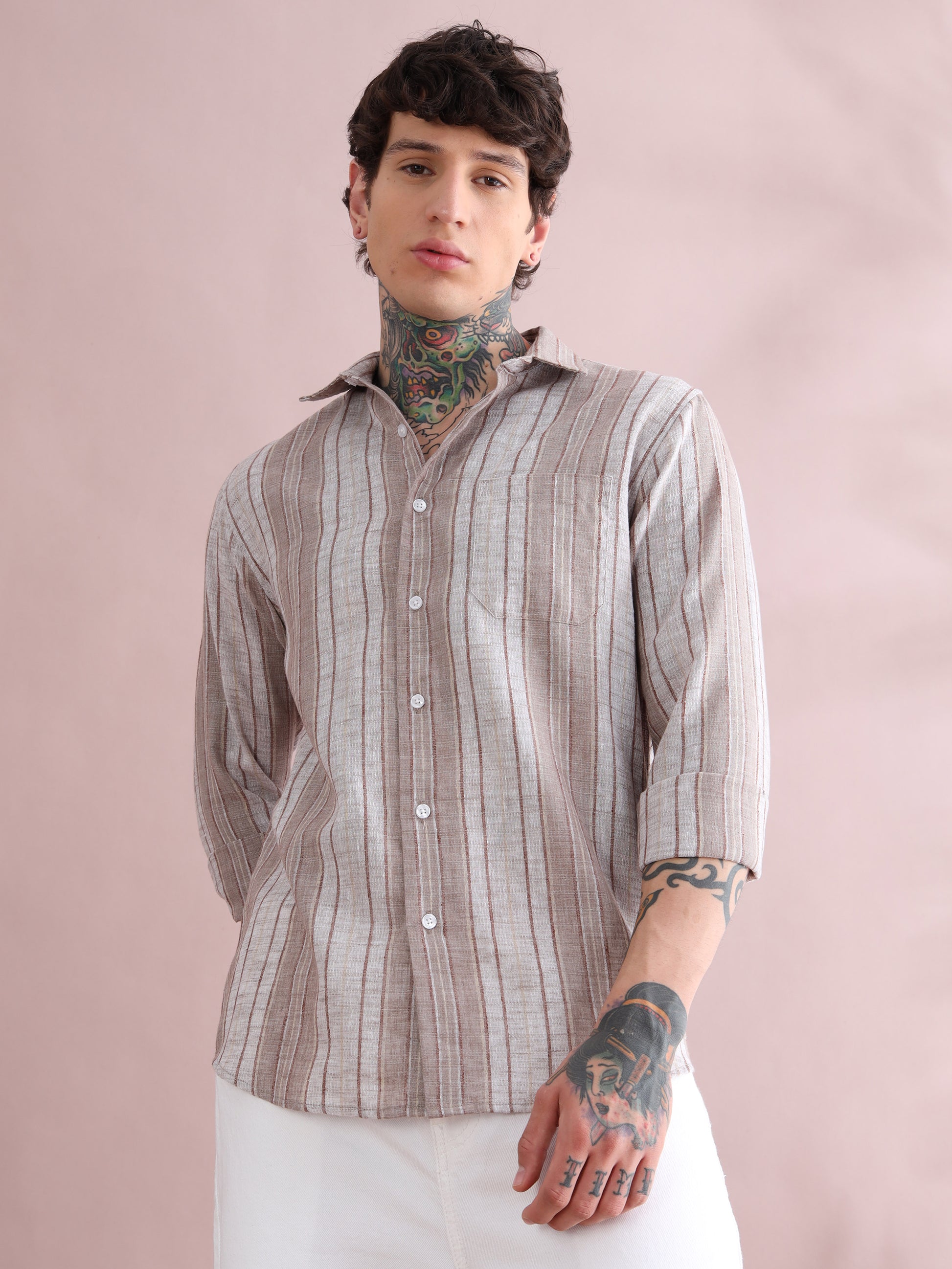Add a touch of texture and timeless style to your wardrobe with this Men’s Dobby Striped Brown Shirt. Crafted from premium fabric with a subtle dobby weave, this shirt features finely detailed vertical stripes that enhance its refined look. The rich brown tone brings warmth and versatility, making it easy to dress up or down. Finished with a button-down front, pointed collar, and full sleeves, it’s perfect for casual occasions.