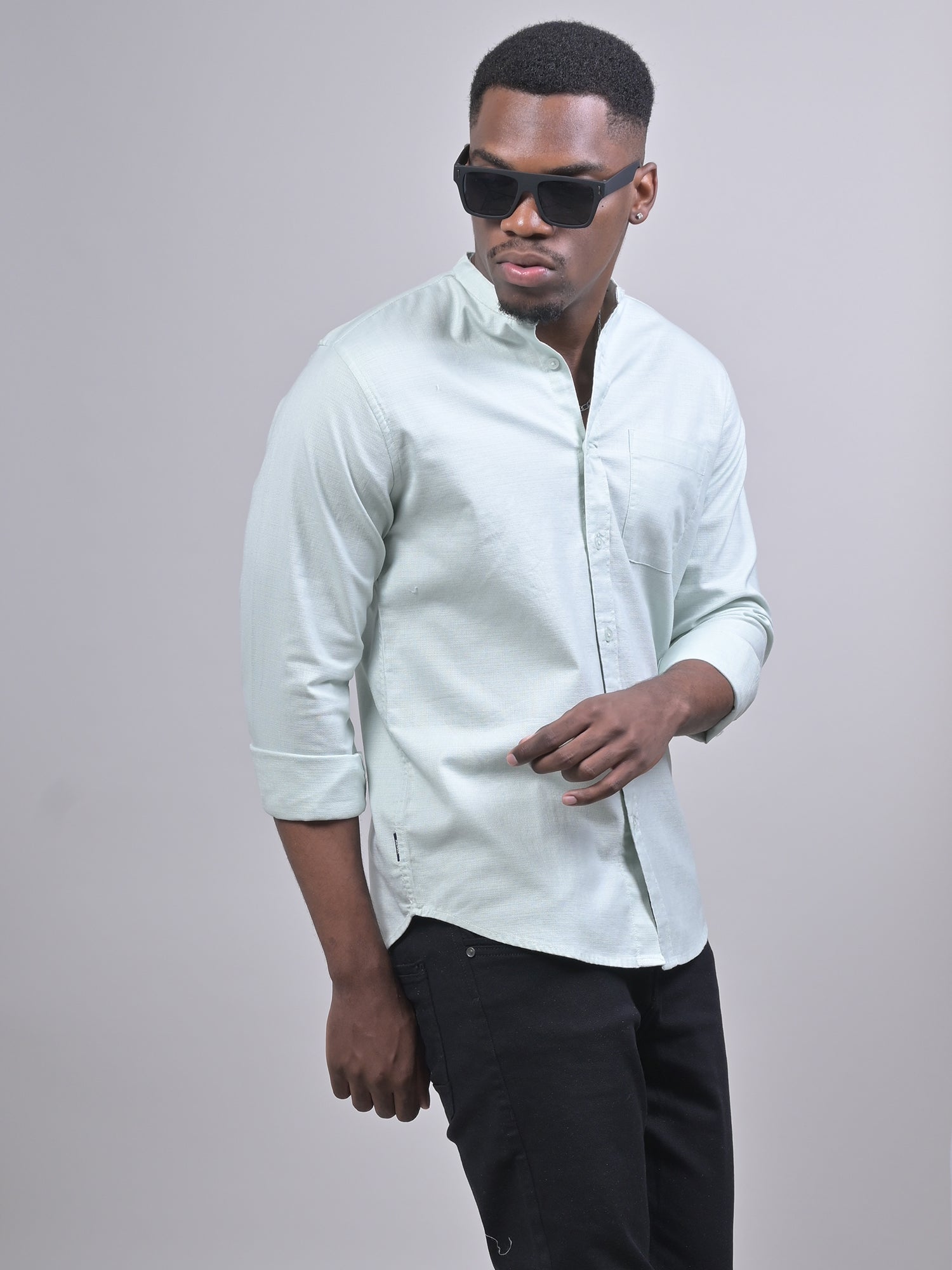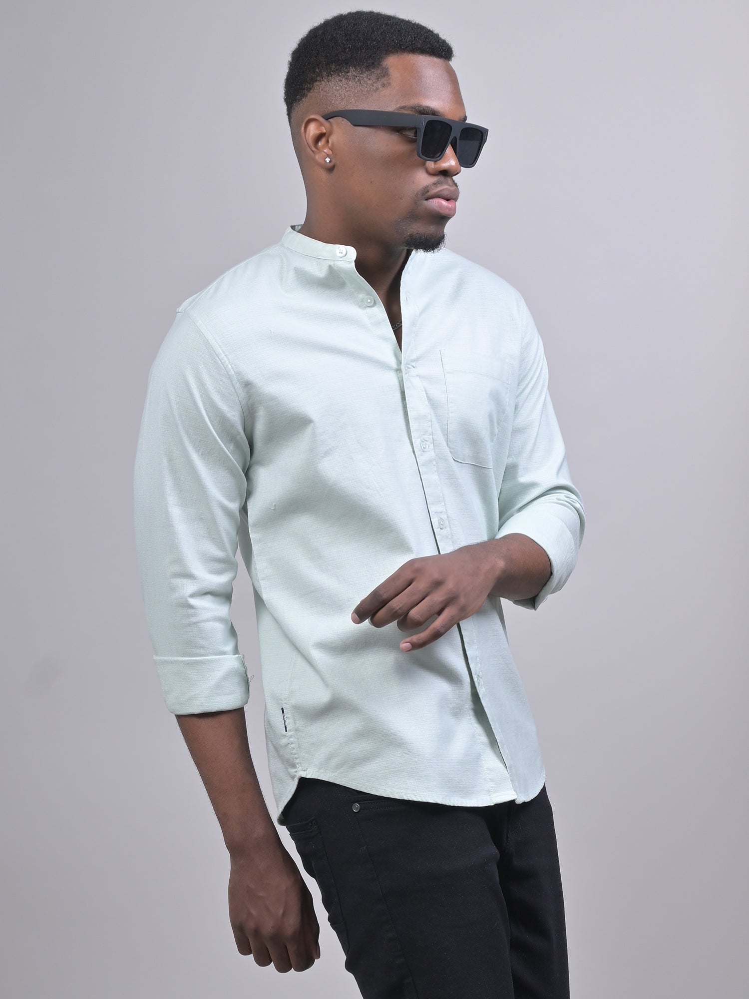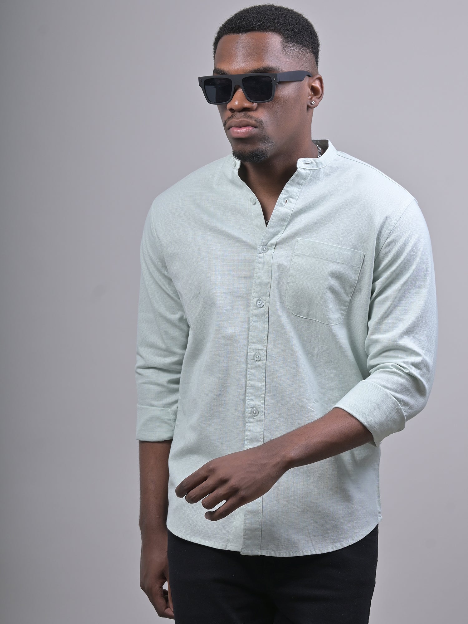 MANDARIN COLLAR DOBBY PLAIN SHIRT
