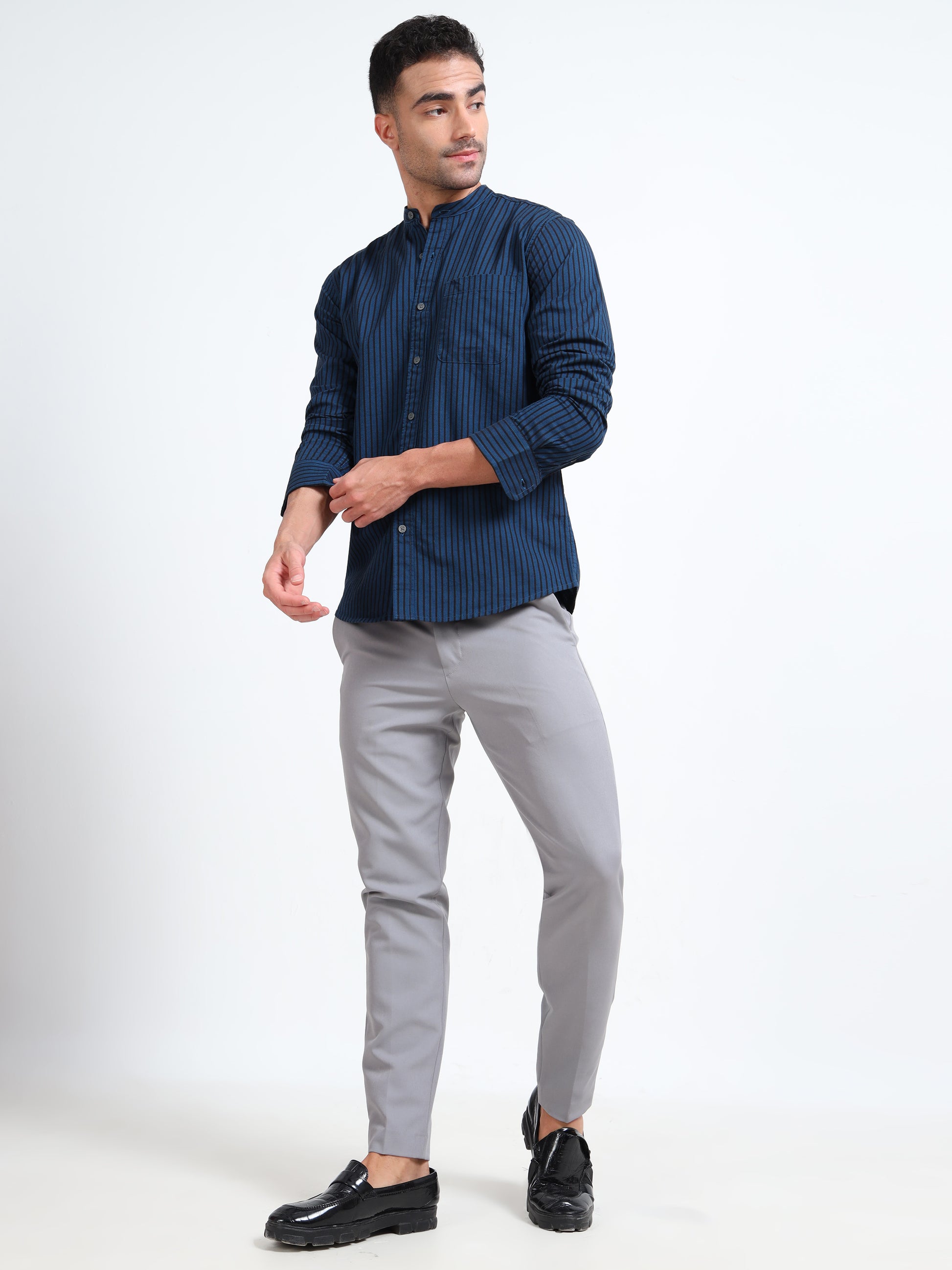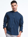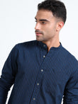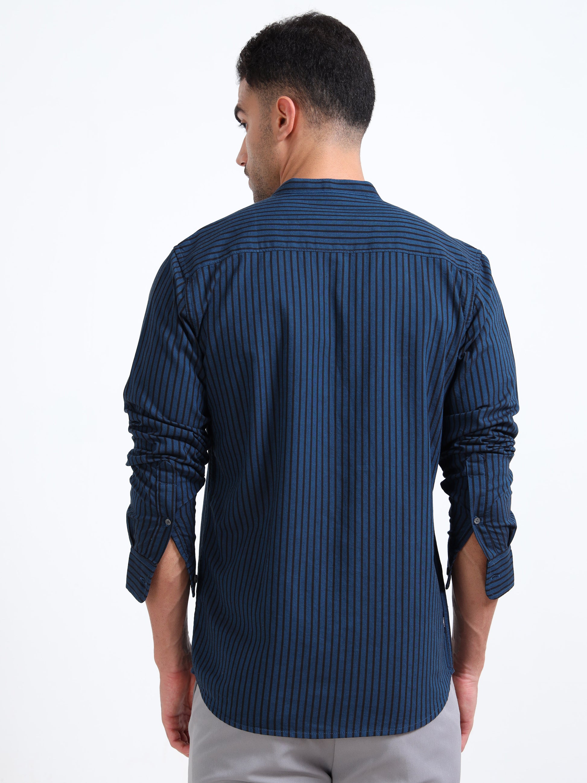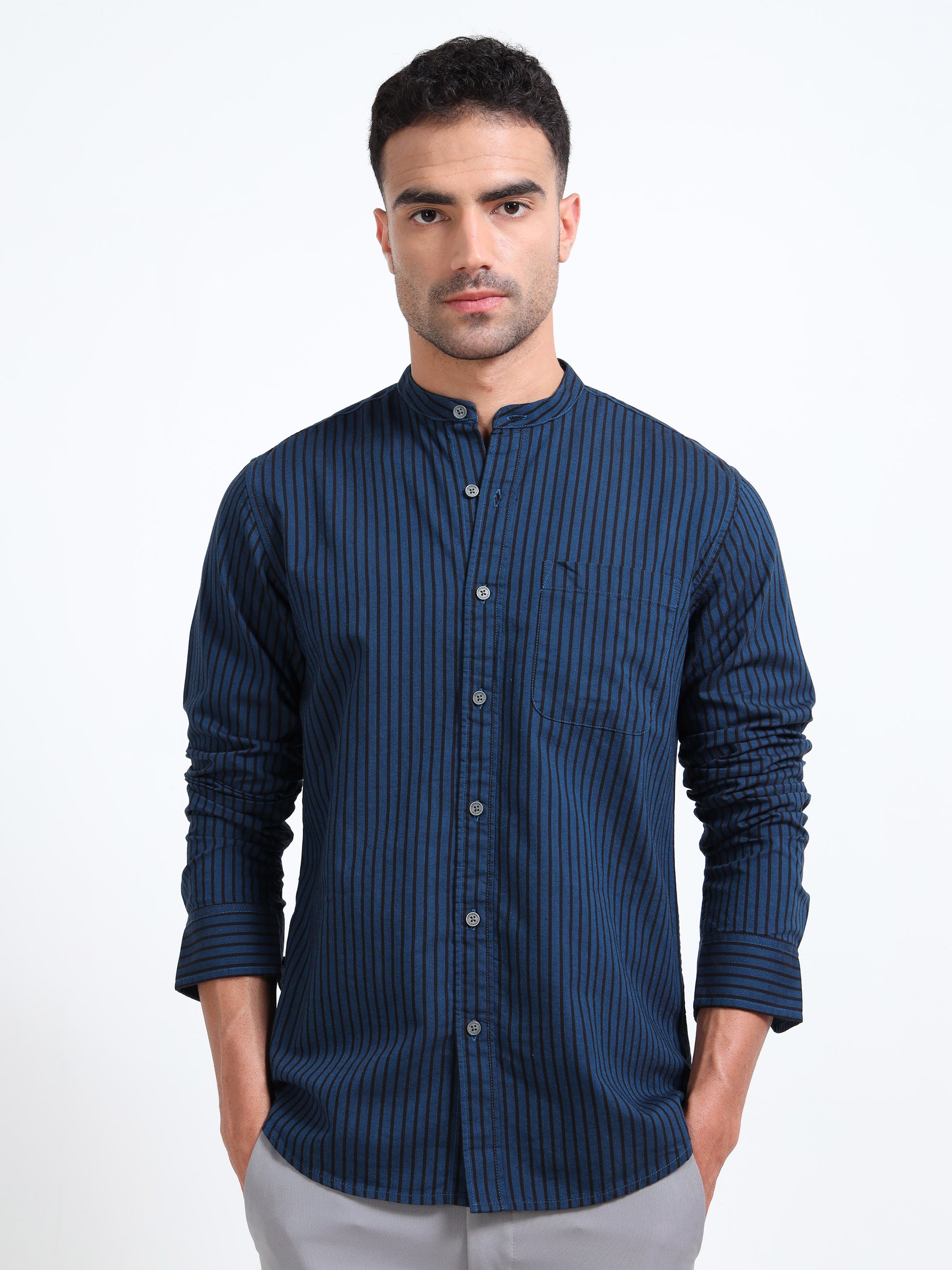 MANDARIN COLLAR YARN DYED OXFORD BLUE STRIPED SHIRT