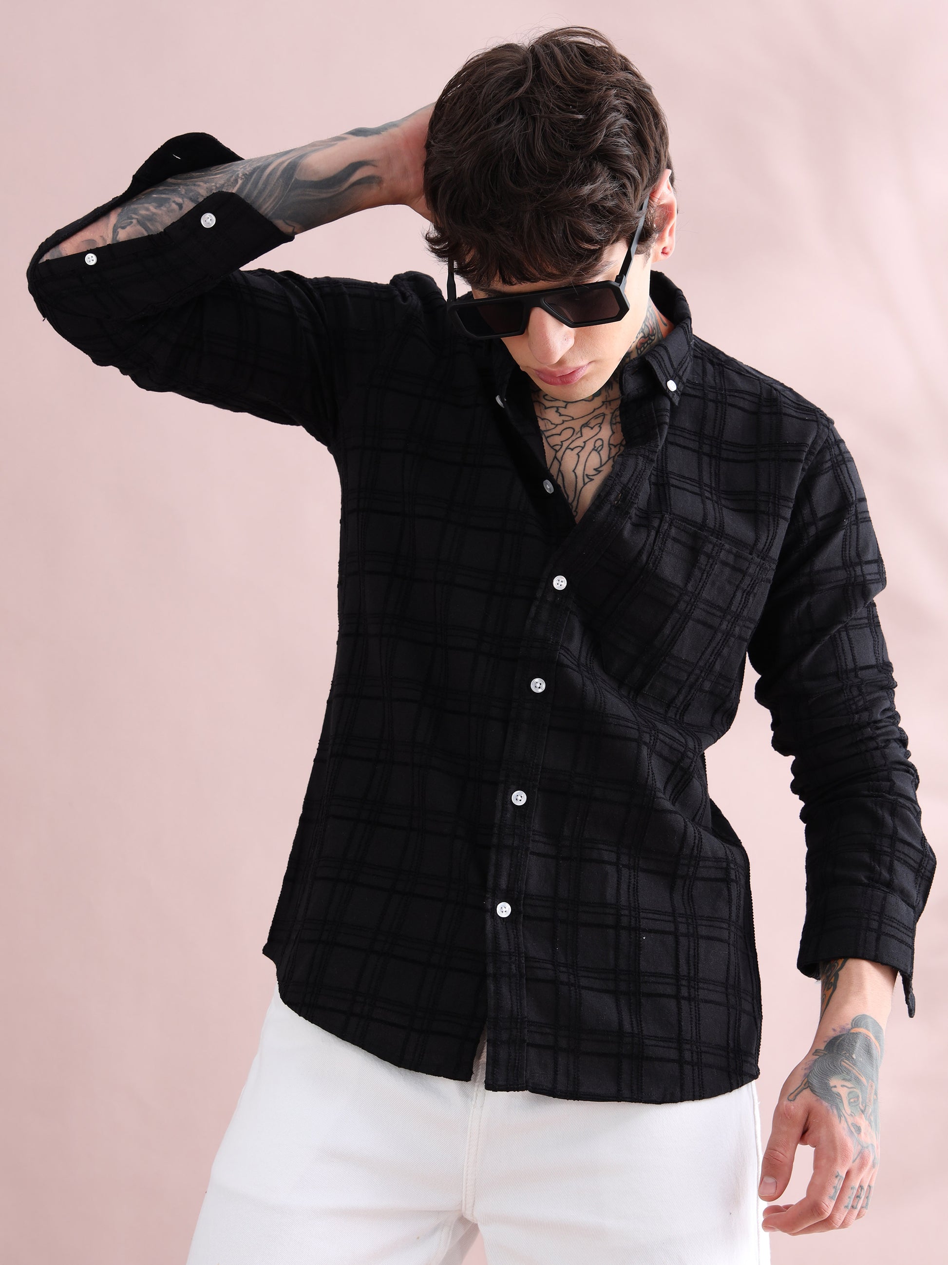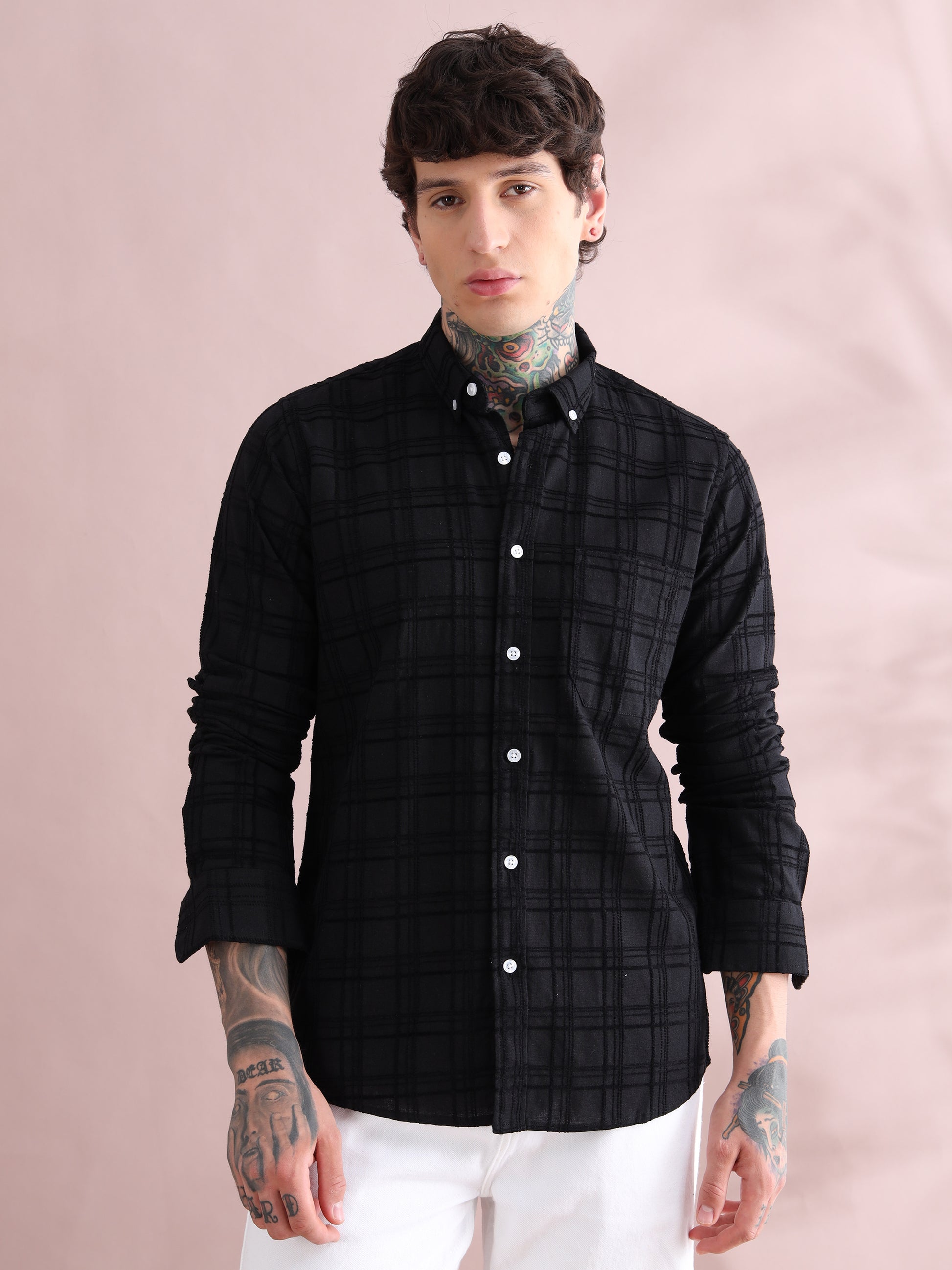 IMPORTED SELF EMBROIDERED CHECKED SHIRT