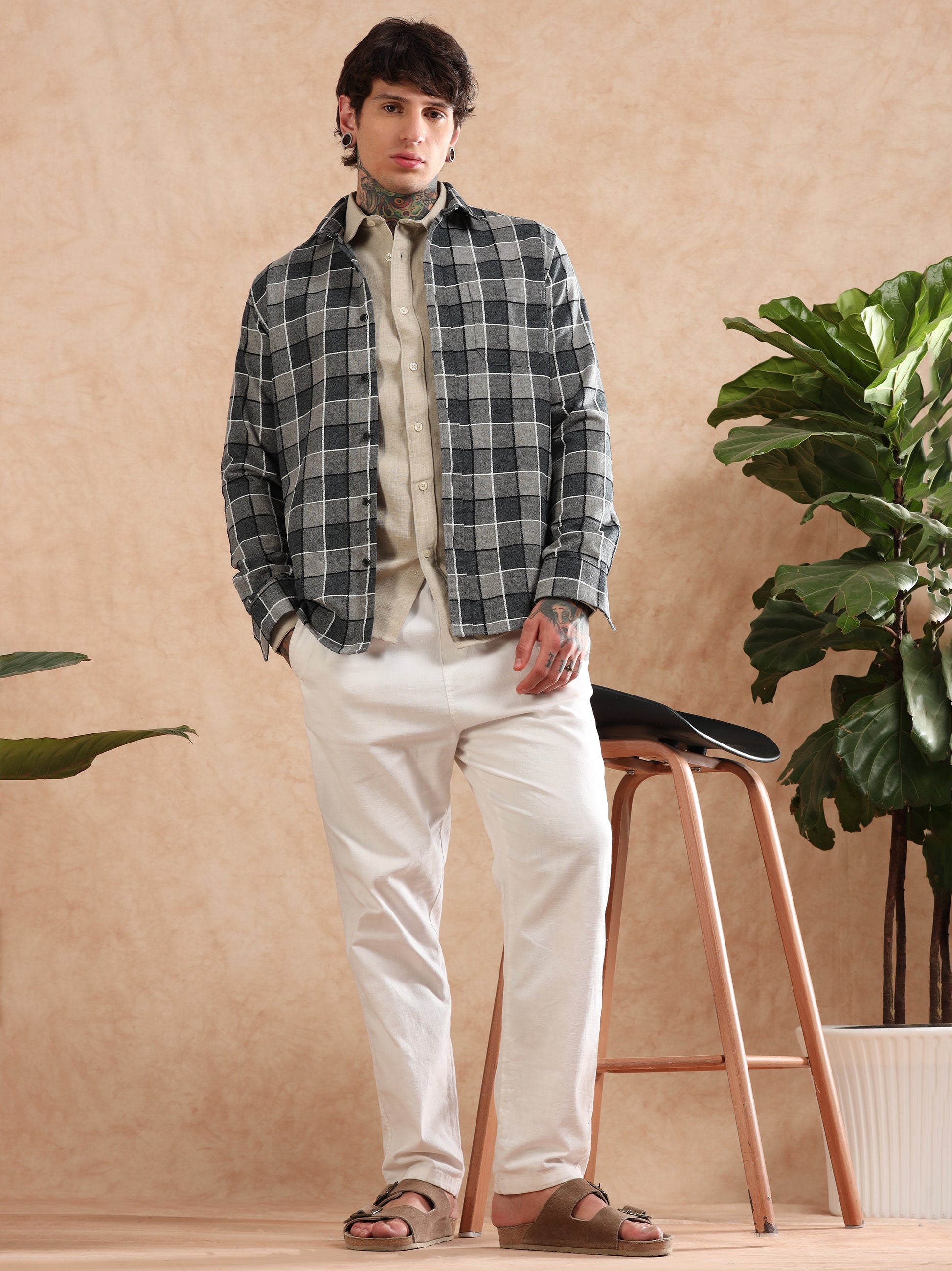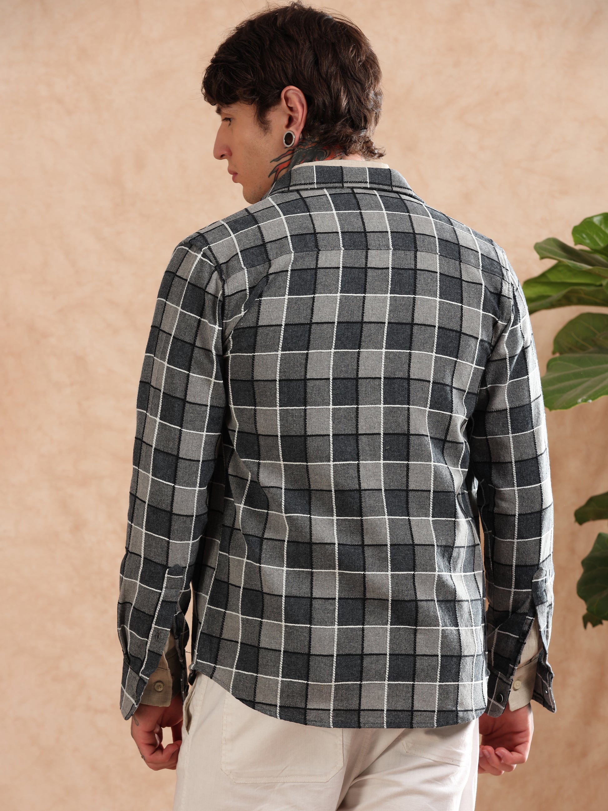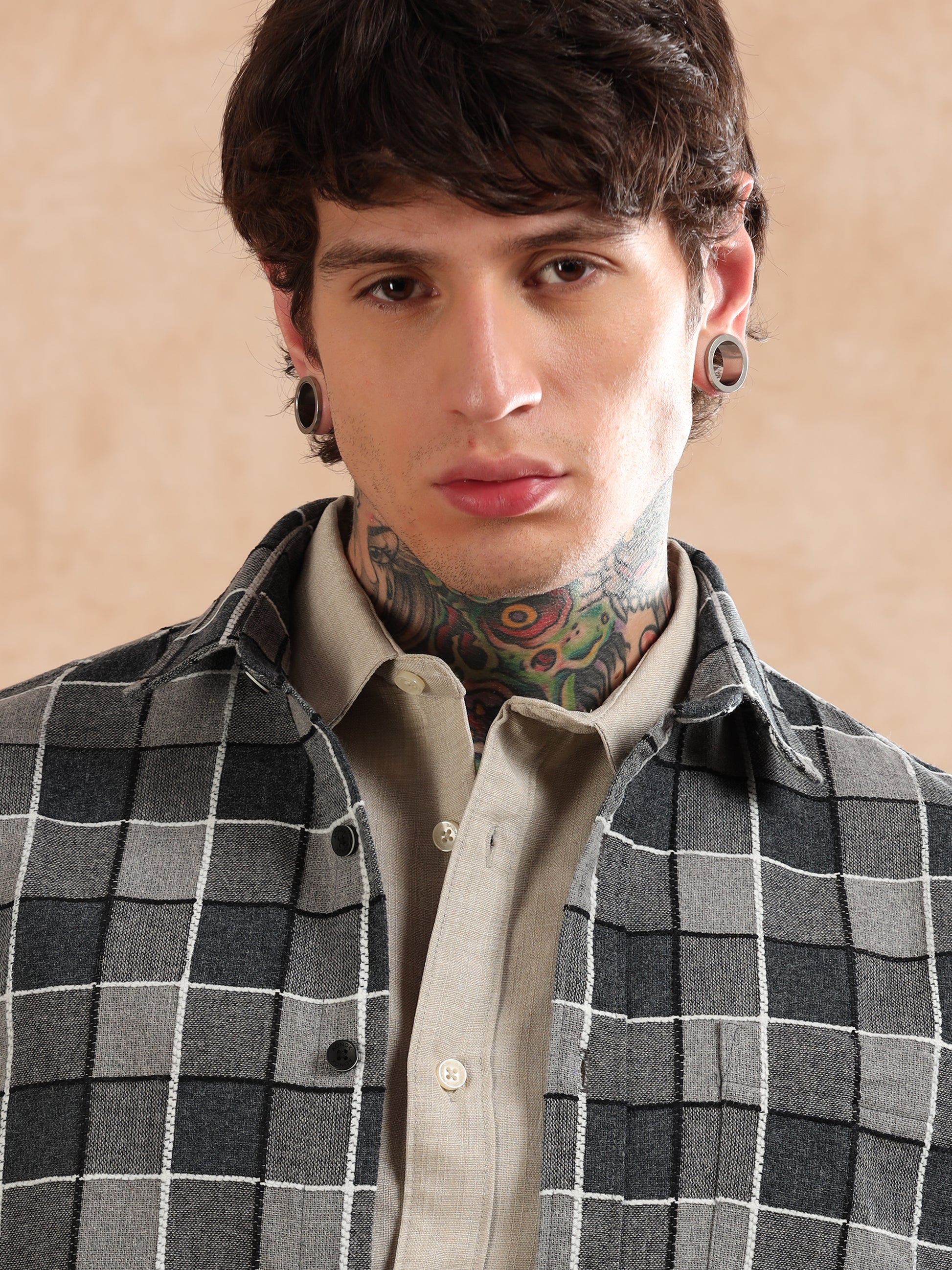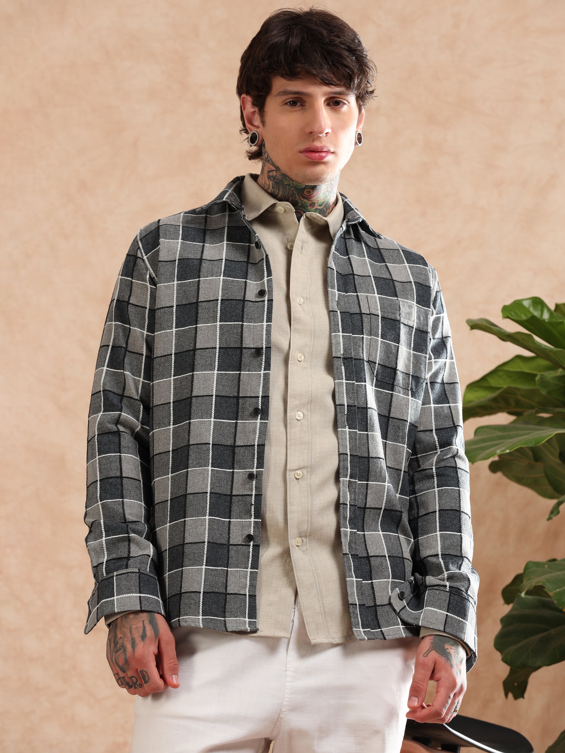 IMPORTED LIGHT GREY DOBBY CHECKED SHIRT