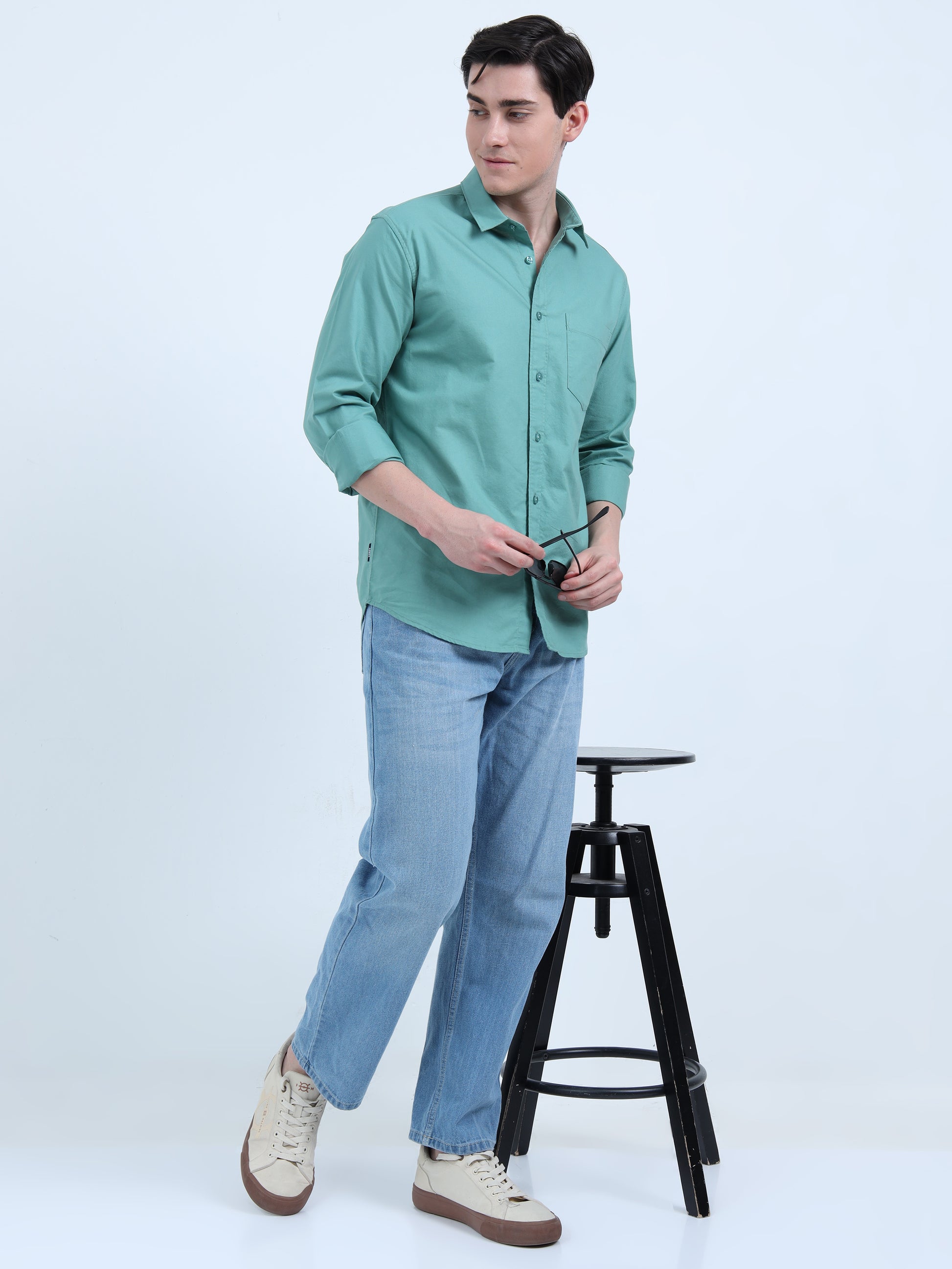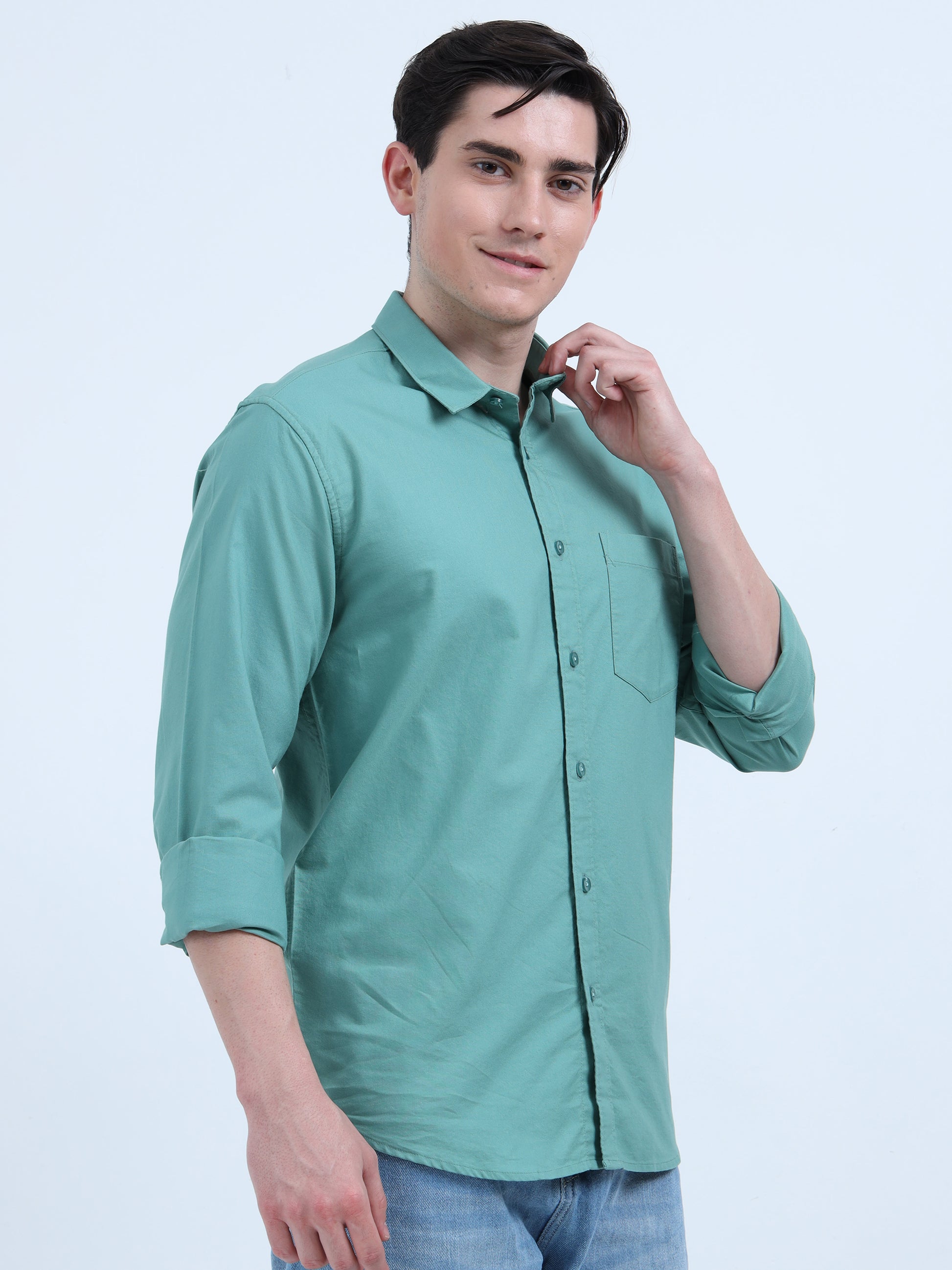 MATTY OXFORD LIGHT GREEN PLAIN SHIRT