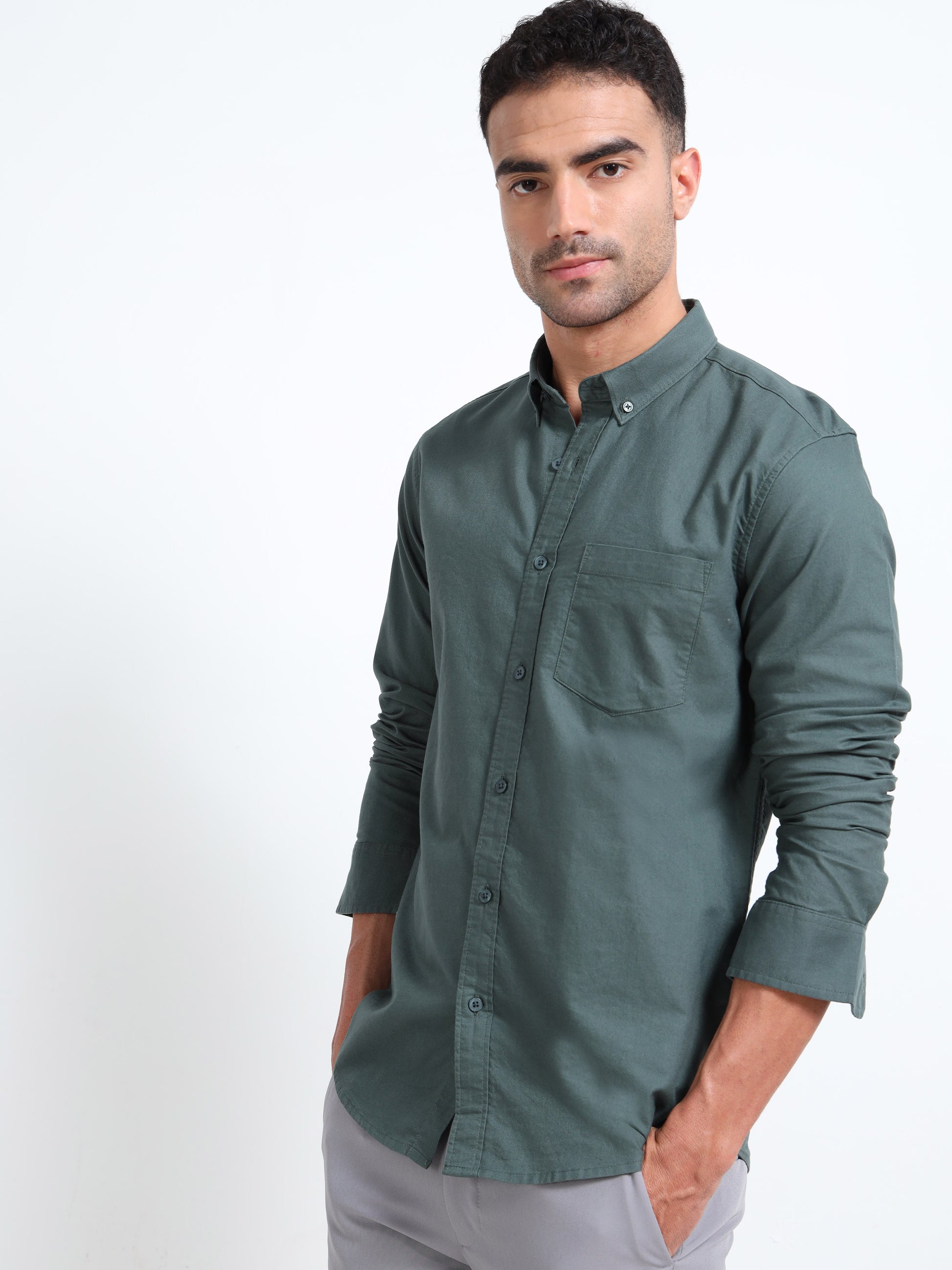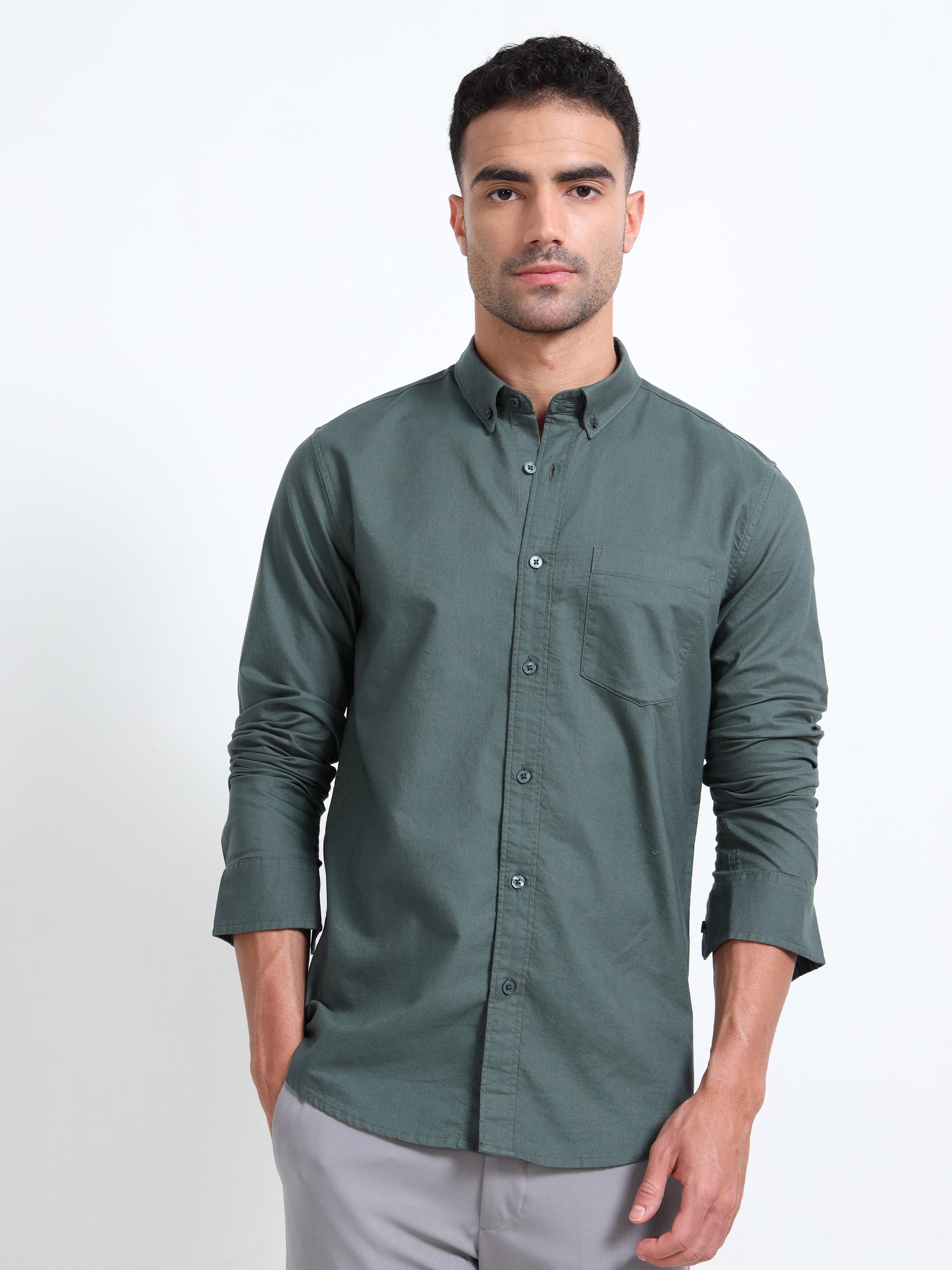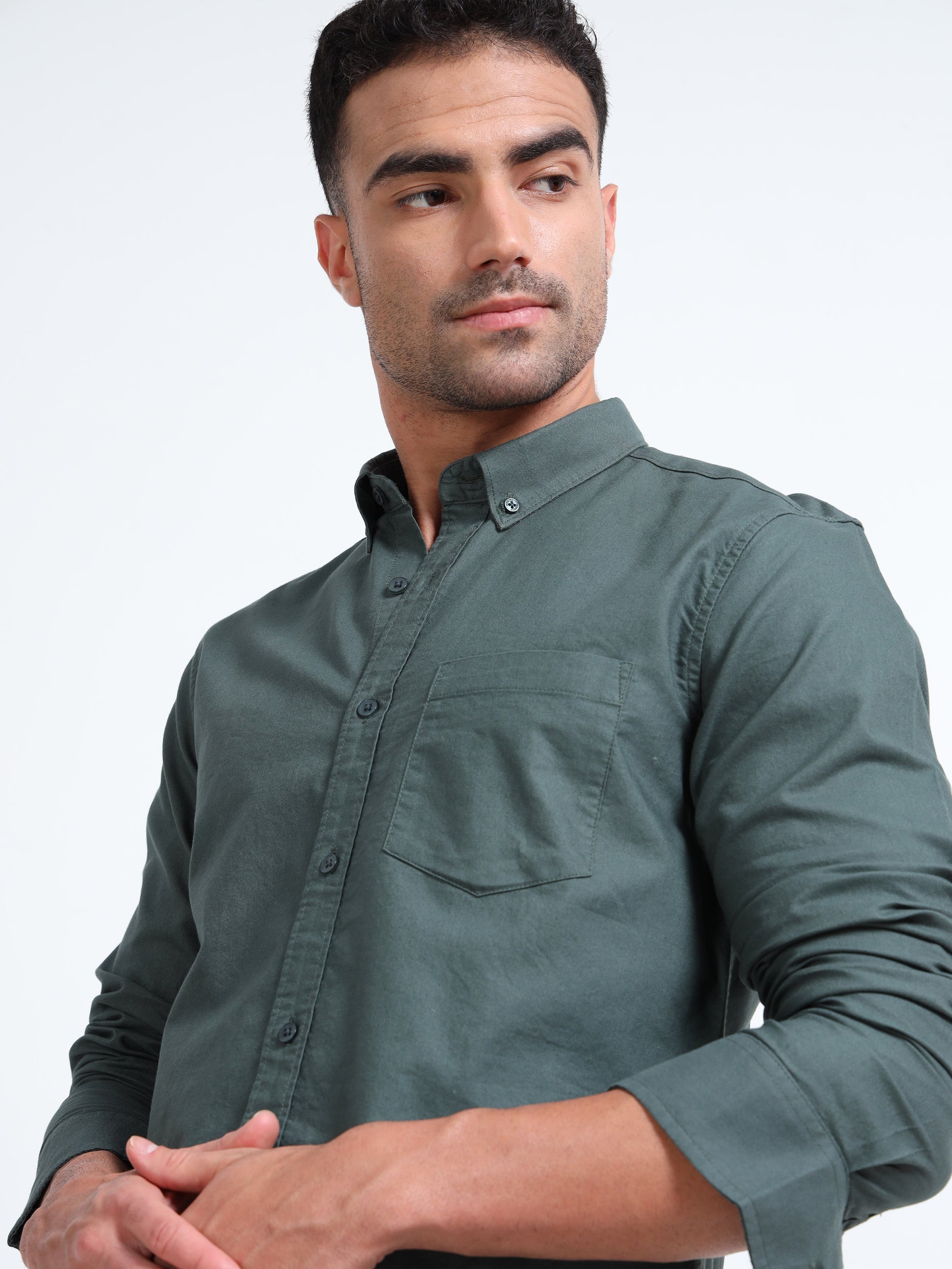 MATTY OXFORD METALLIC GREEN PLAIN SHIRT