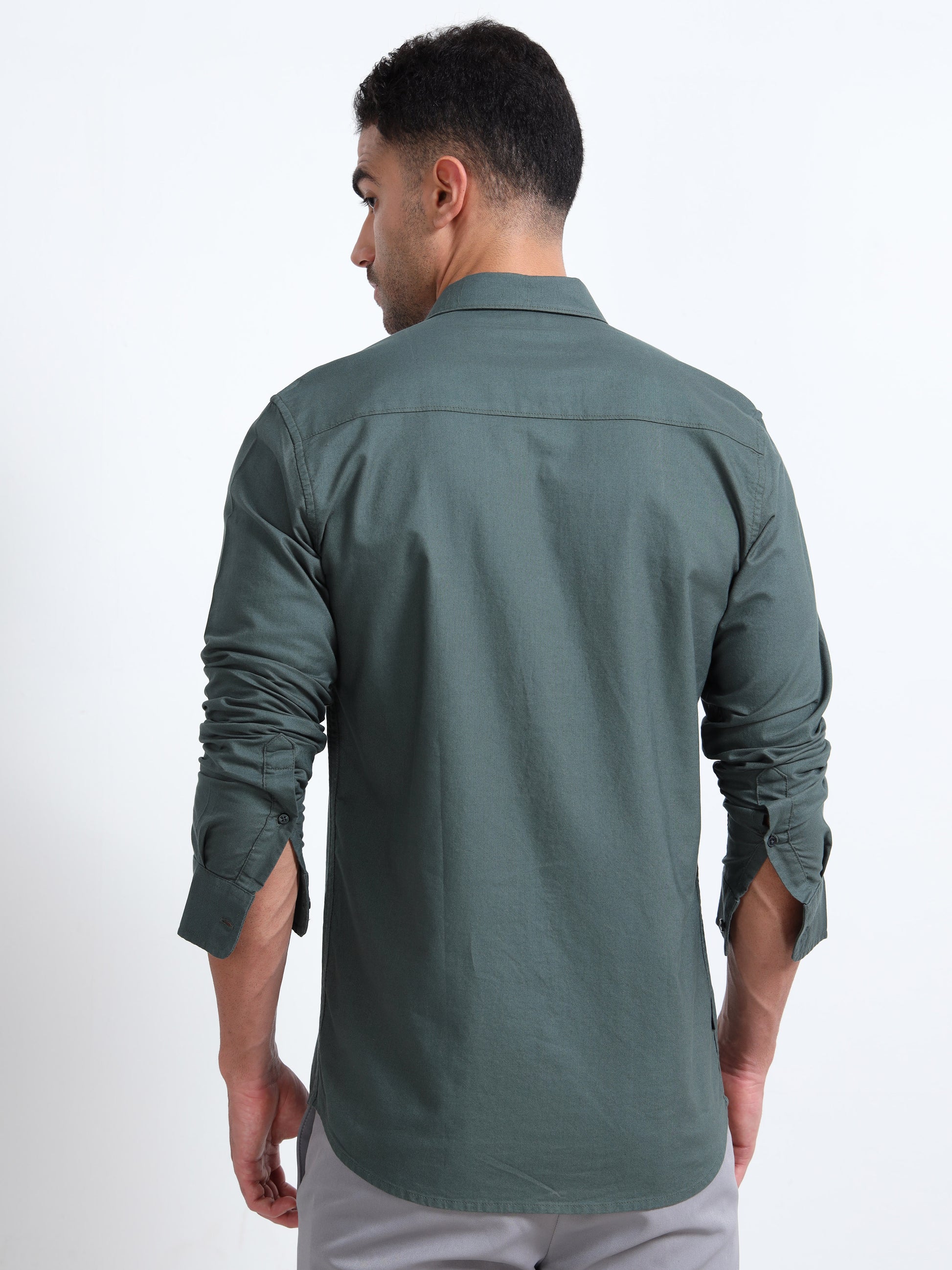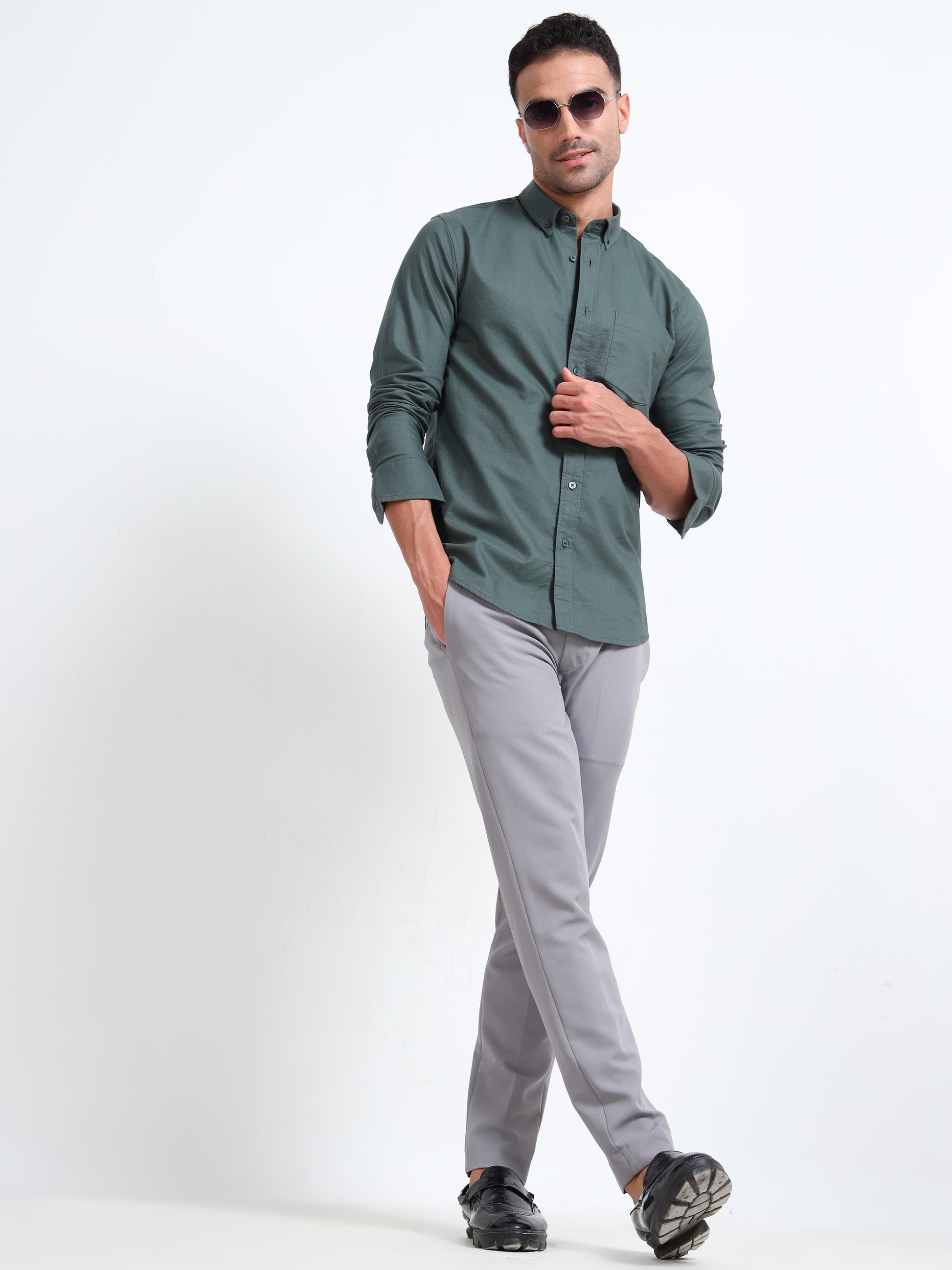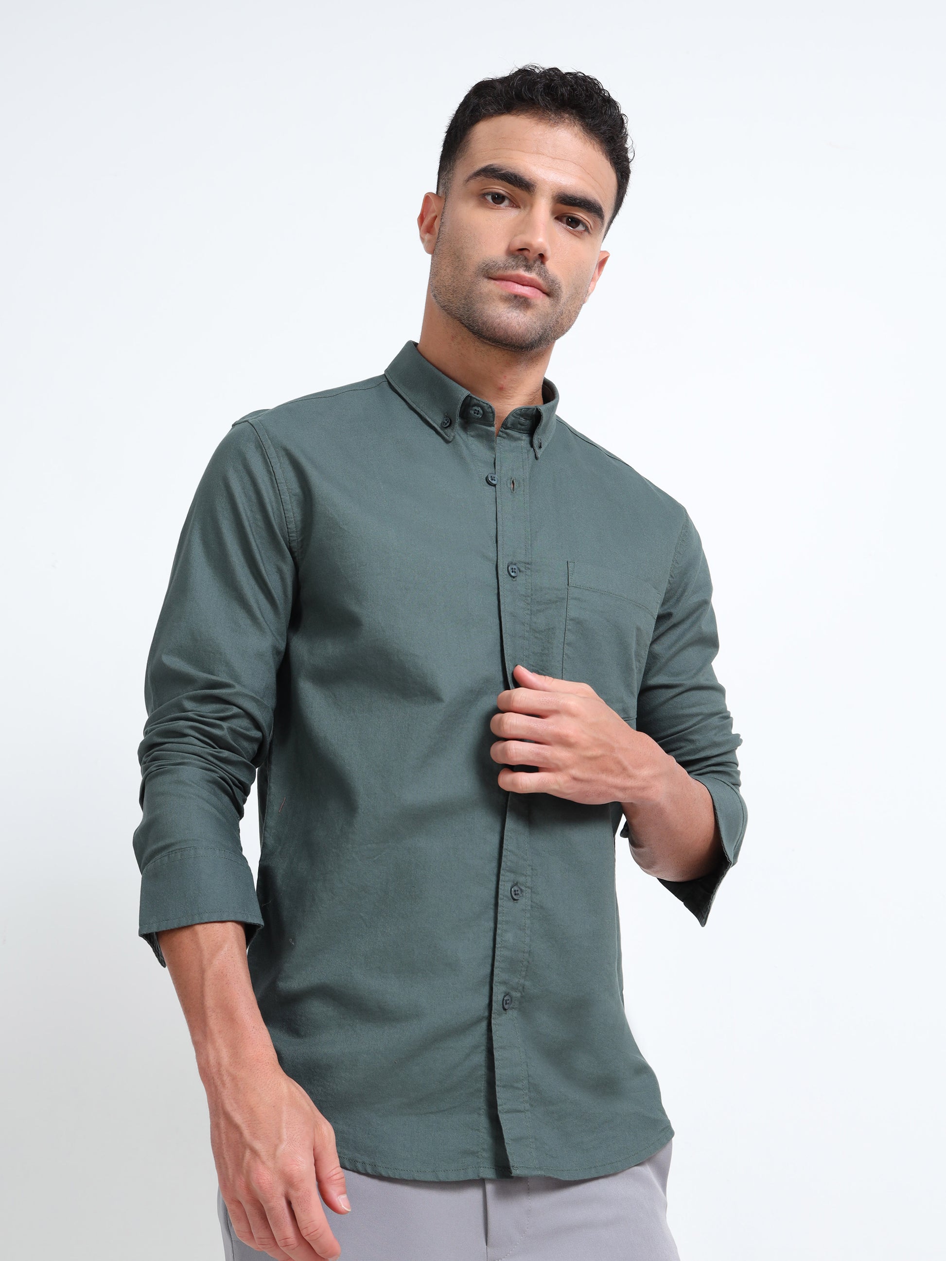 MATTY OXFORD METALLIC GREEN PLAIN SHIRT