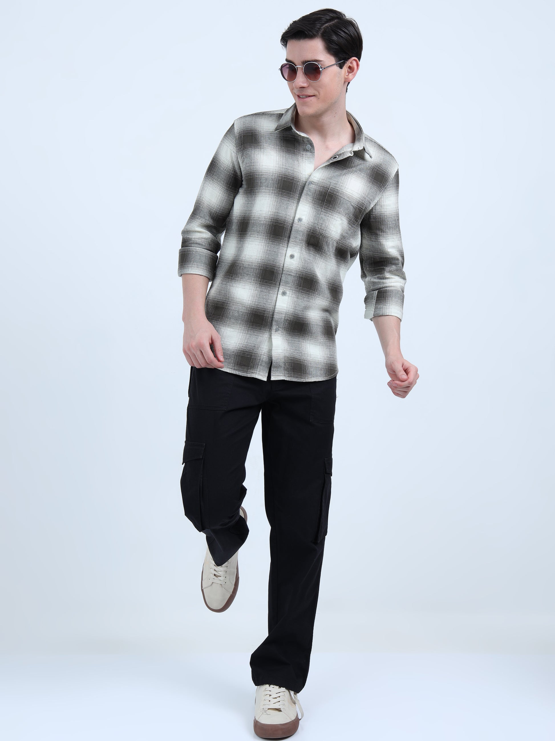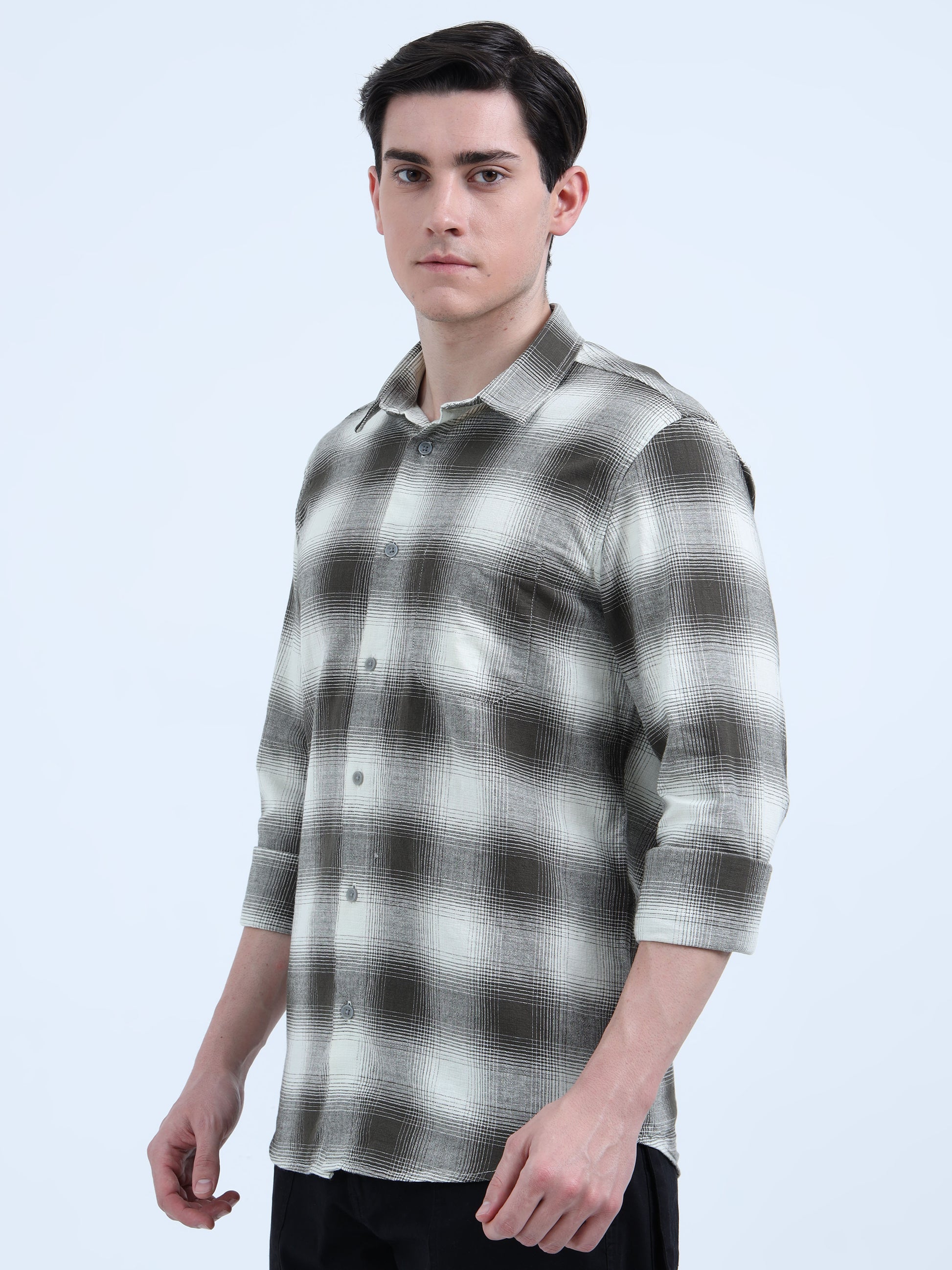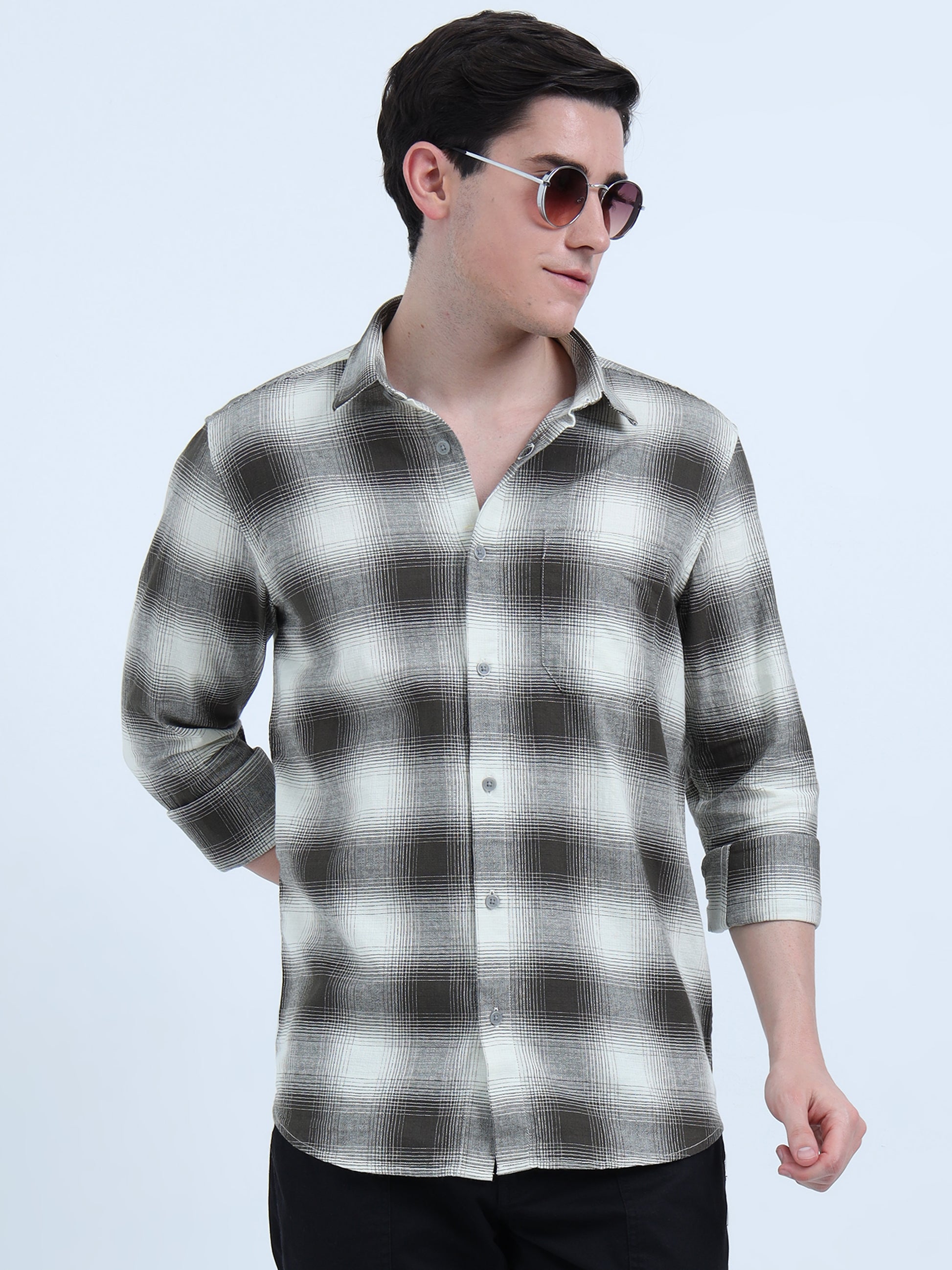 MOC LINO CHECKERED SINGLE POCKET GREEN SHIRT