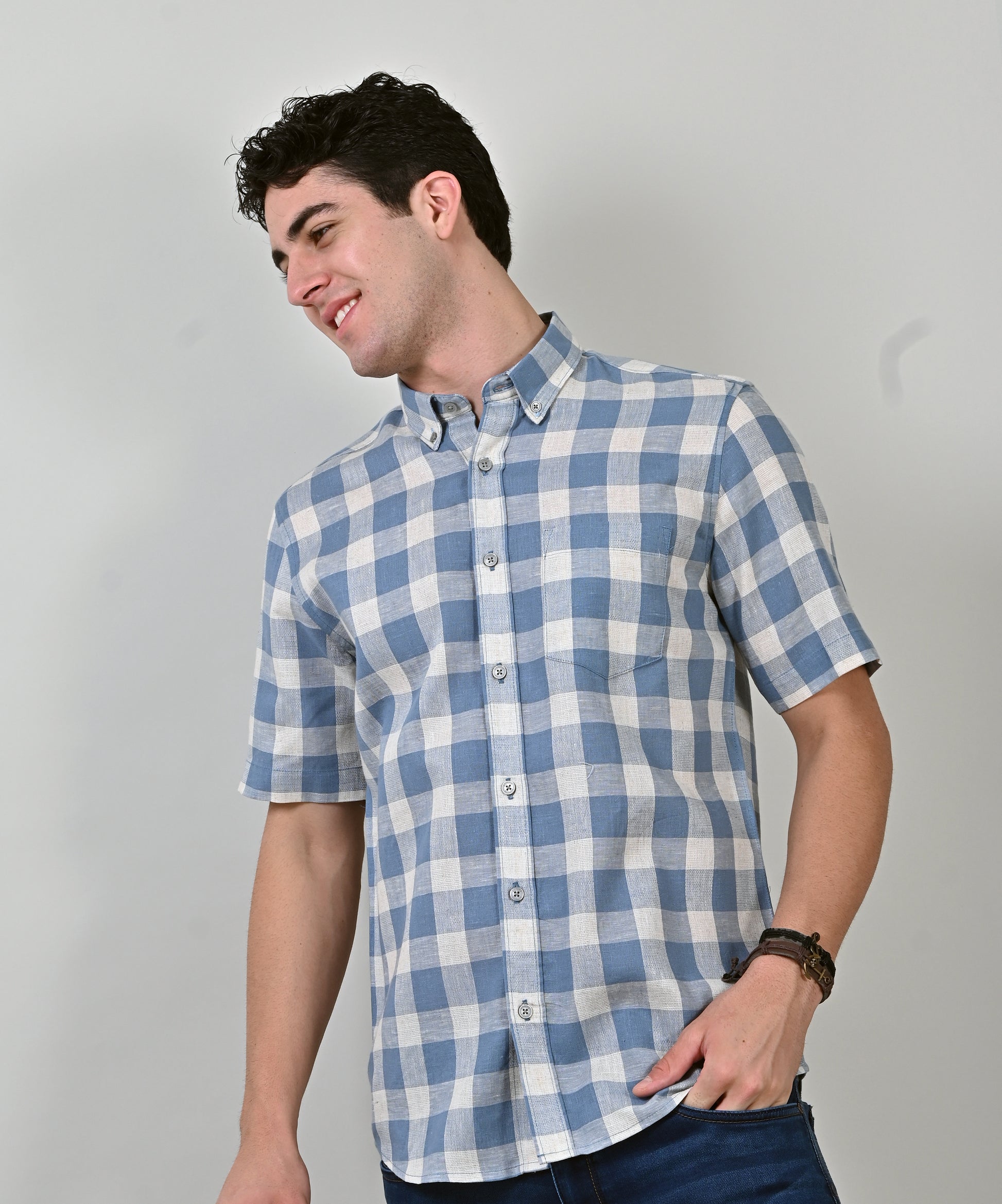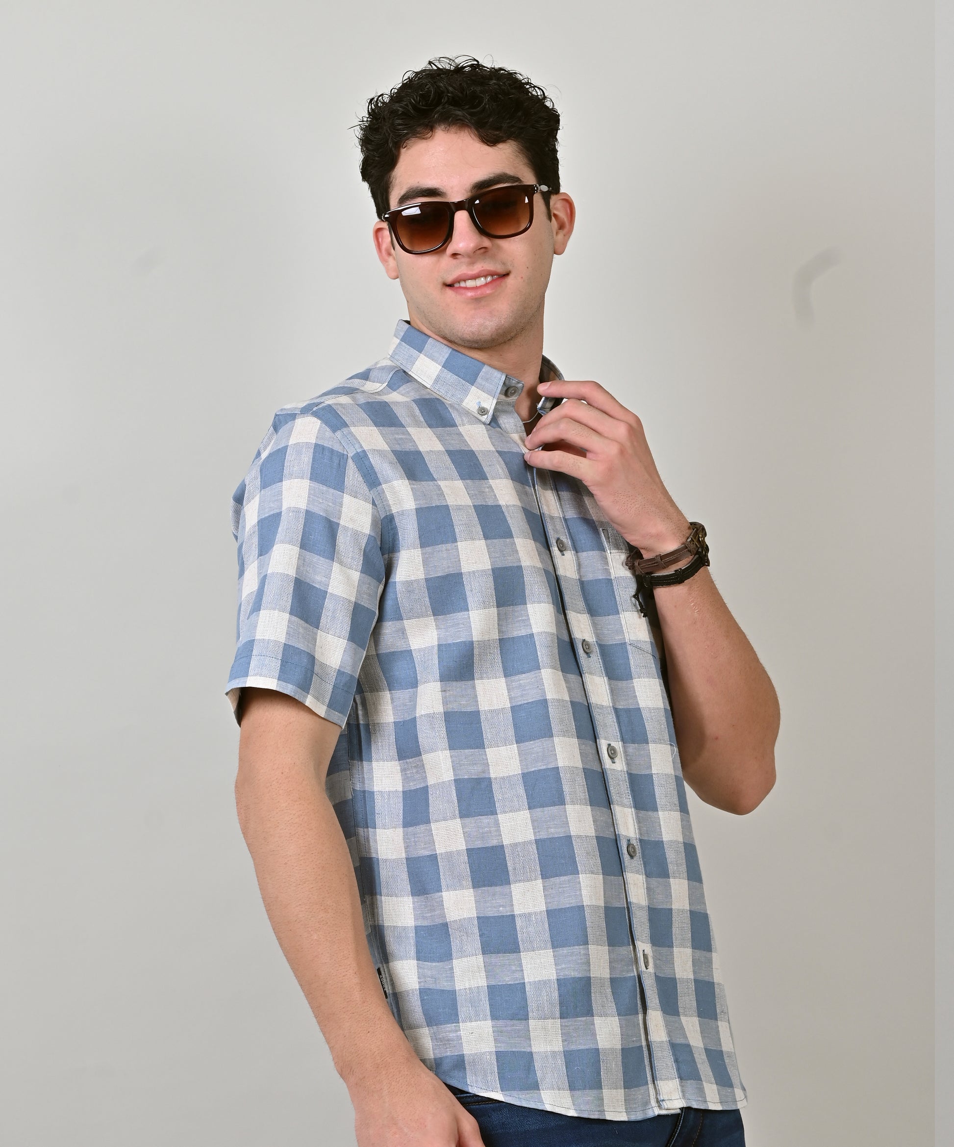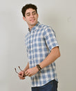 Oxford Dobby Half Sleeve Blue Checkered Shirt