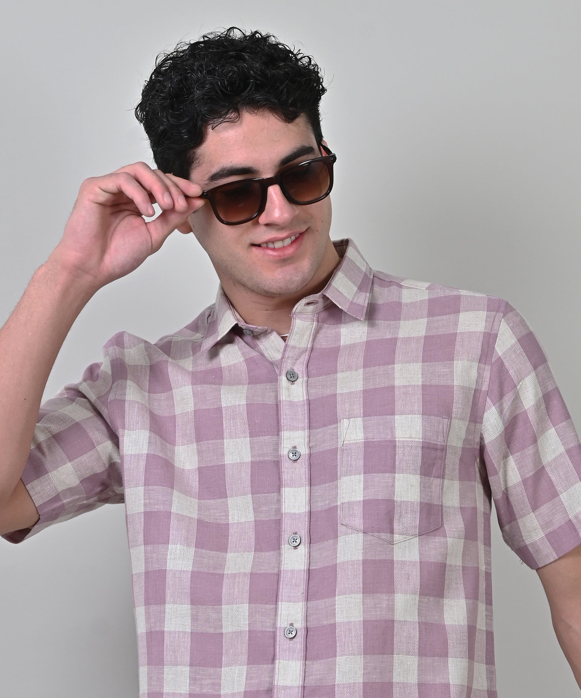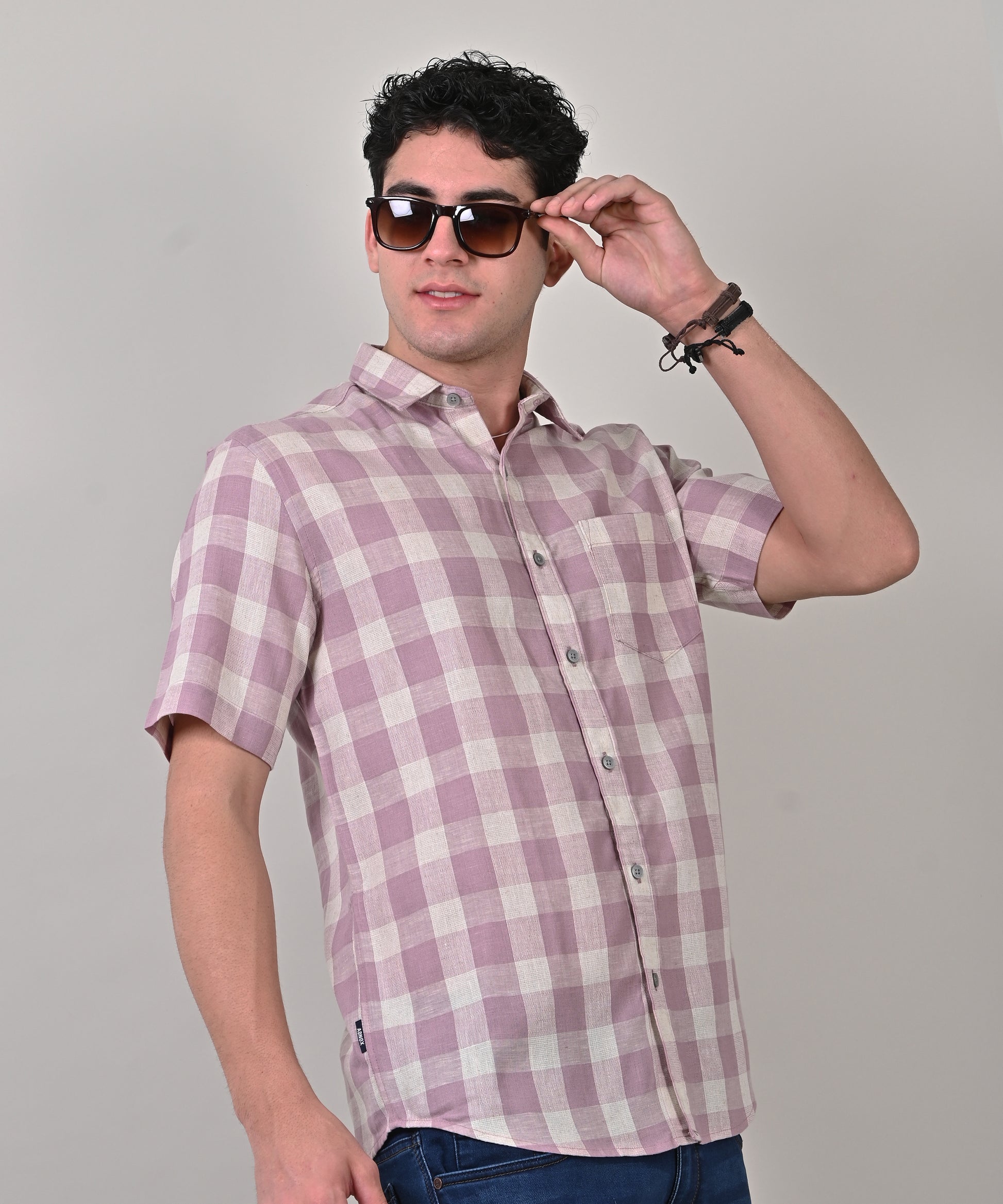 Oxford Dobby Half Sleeve Pink Checkered Shirt