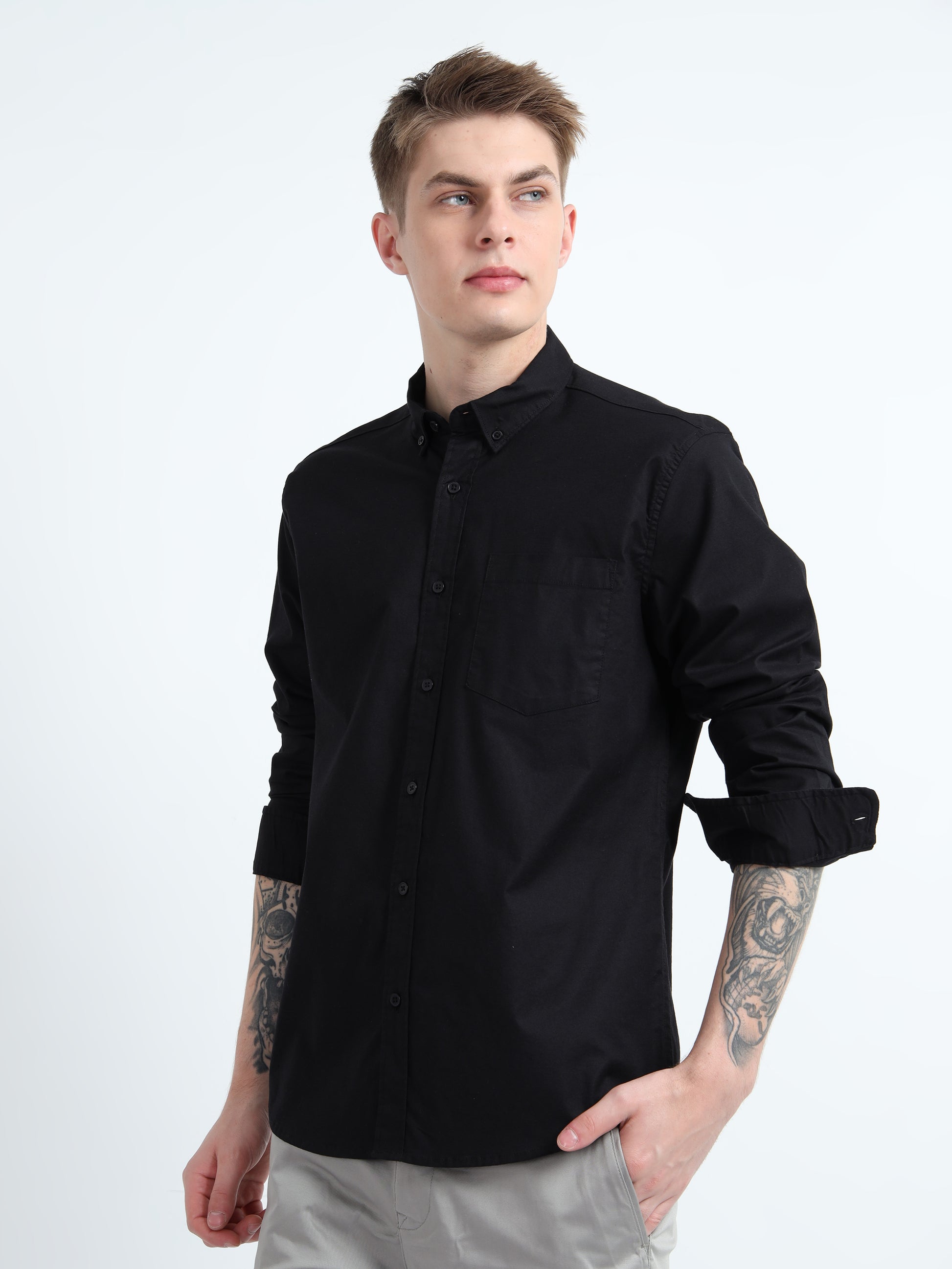 OXFORD LYCRA PLAIN FULL SLEEVE SHIRT