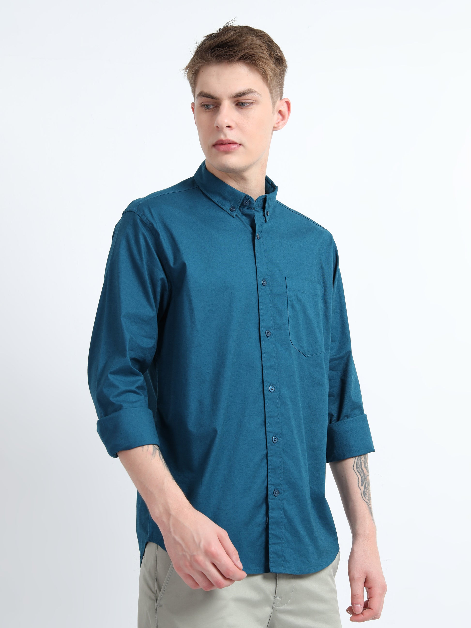 OXFORD PLAIN LYCRA PEACOCK COLOUR SHIRT