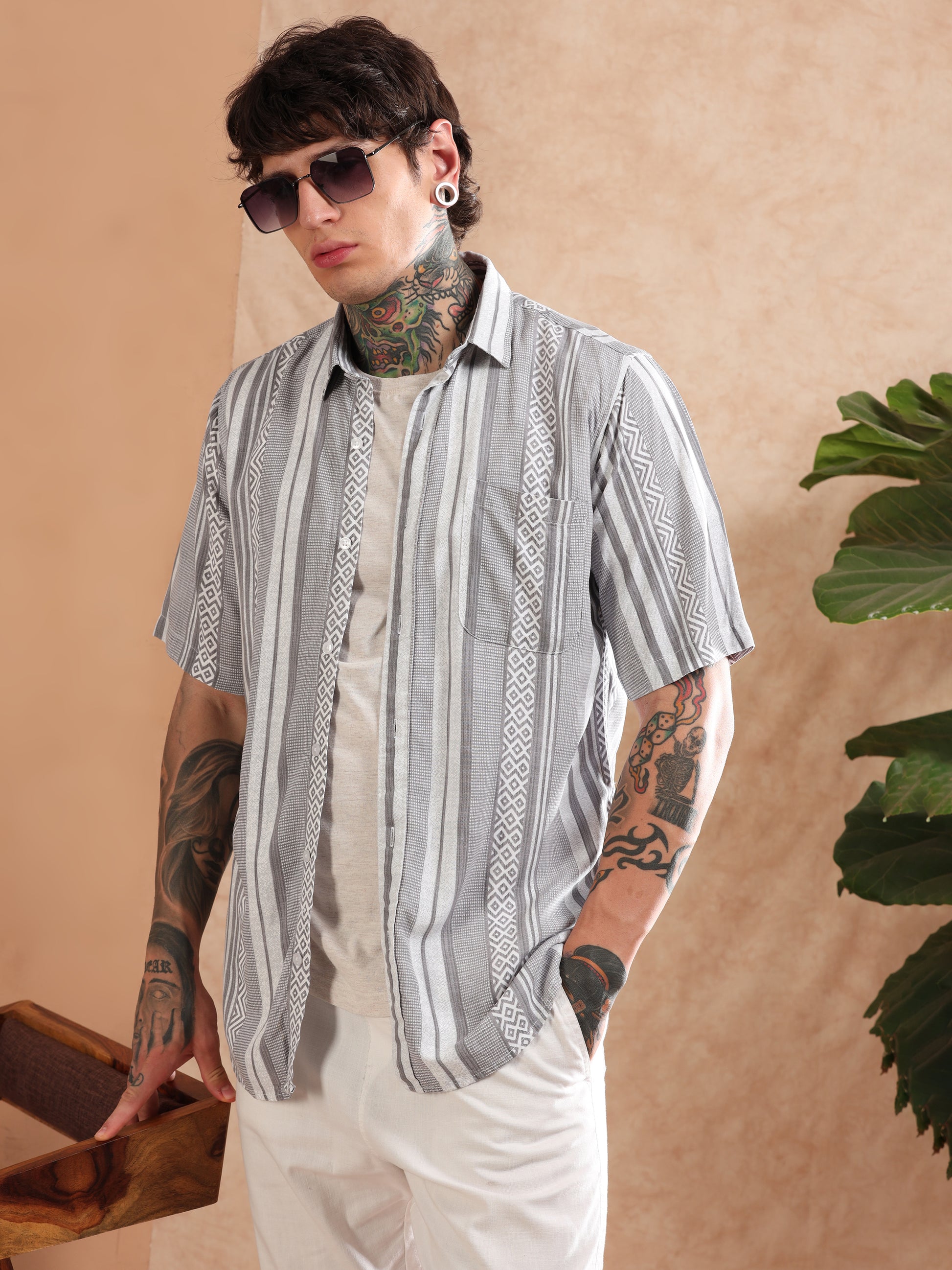 Break the routine. Step into something that feels as good as it looks. Our Premium Rayon Printed Shirt isn’t just another shirt—it’s an experience in fabric, flow, and fearless style. Cut from buttery-soft, fluid rayon, this shirt is made to move with you—lightweight, breathable, and incredibly smooth against the skin. Whether you're beachside at golden hour or headed to a rooftop evening hangout, the eye-catching print and tailored yet relaxed silhouette bring just the right amount of attention. The pointed collar keeps things sharp, while the half sleeves nod to laid-back, sun-drenched days.
