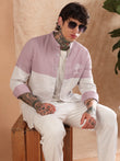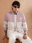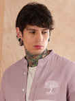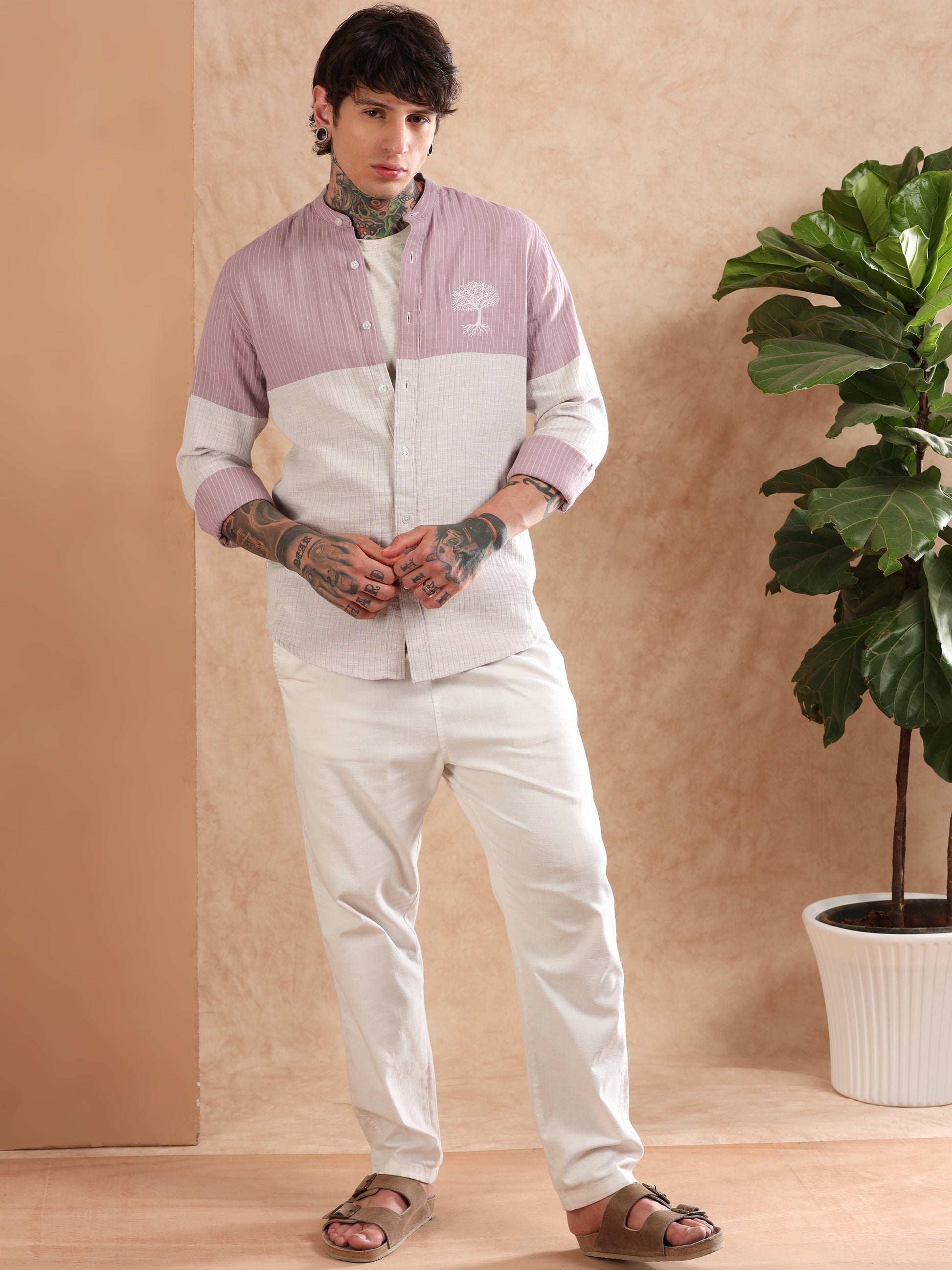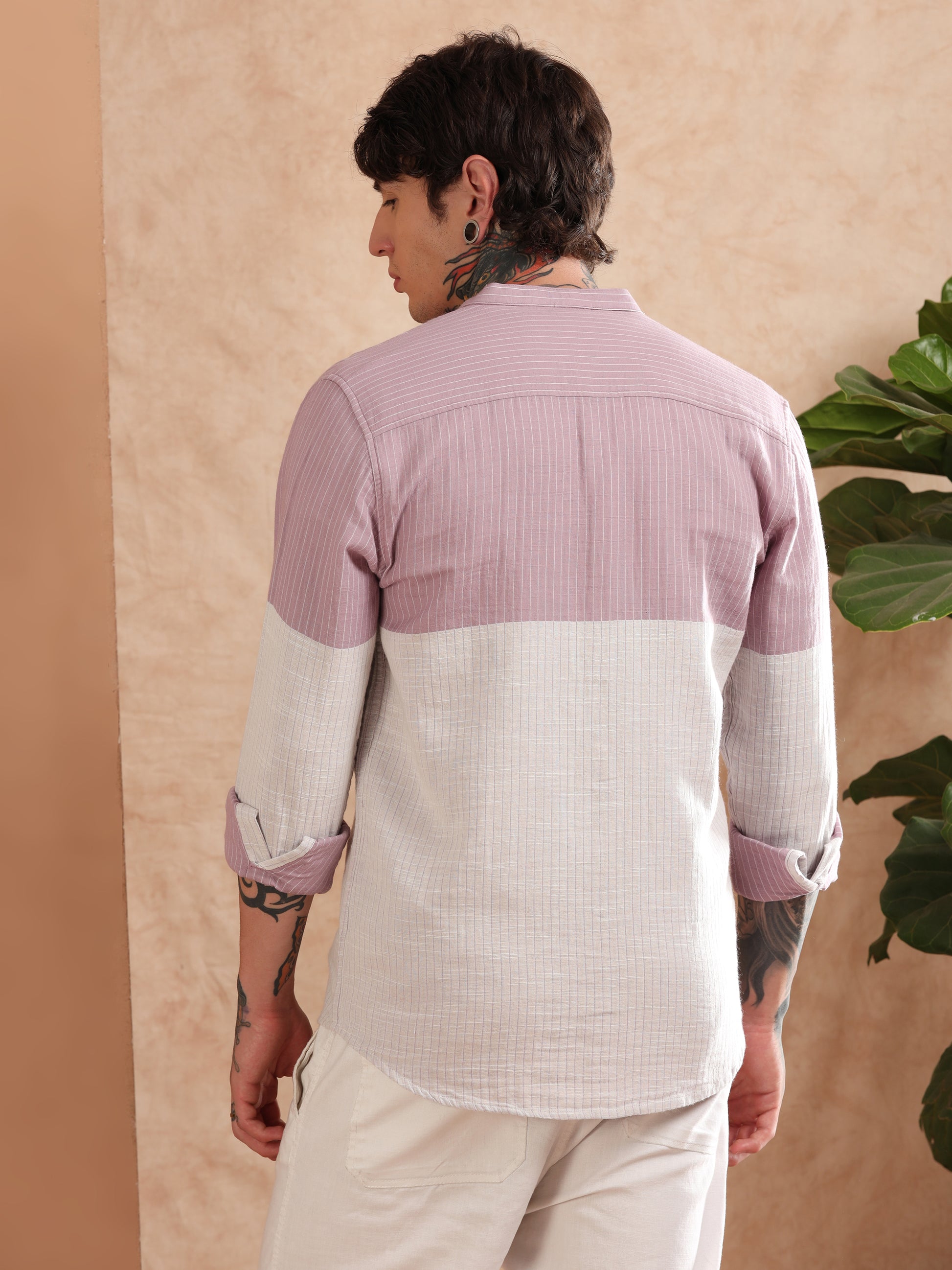 MANDARIN DOUBLE CLOTH STRIPED PEACH SHIRT