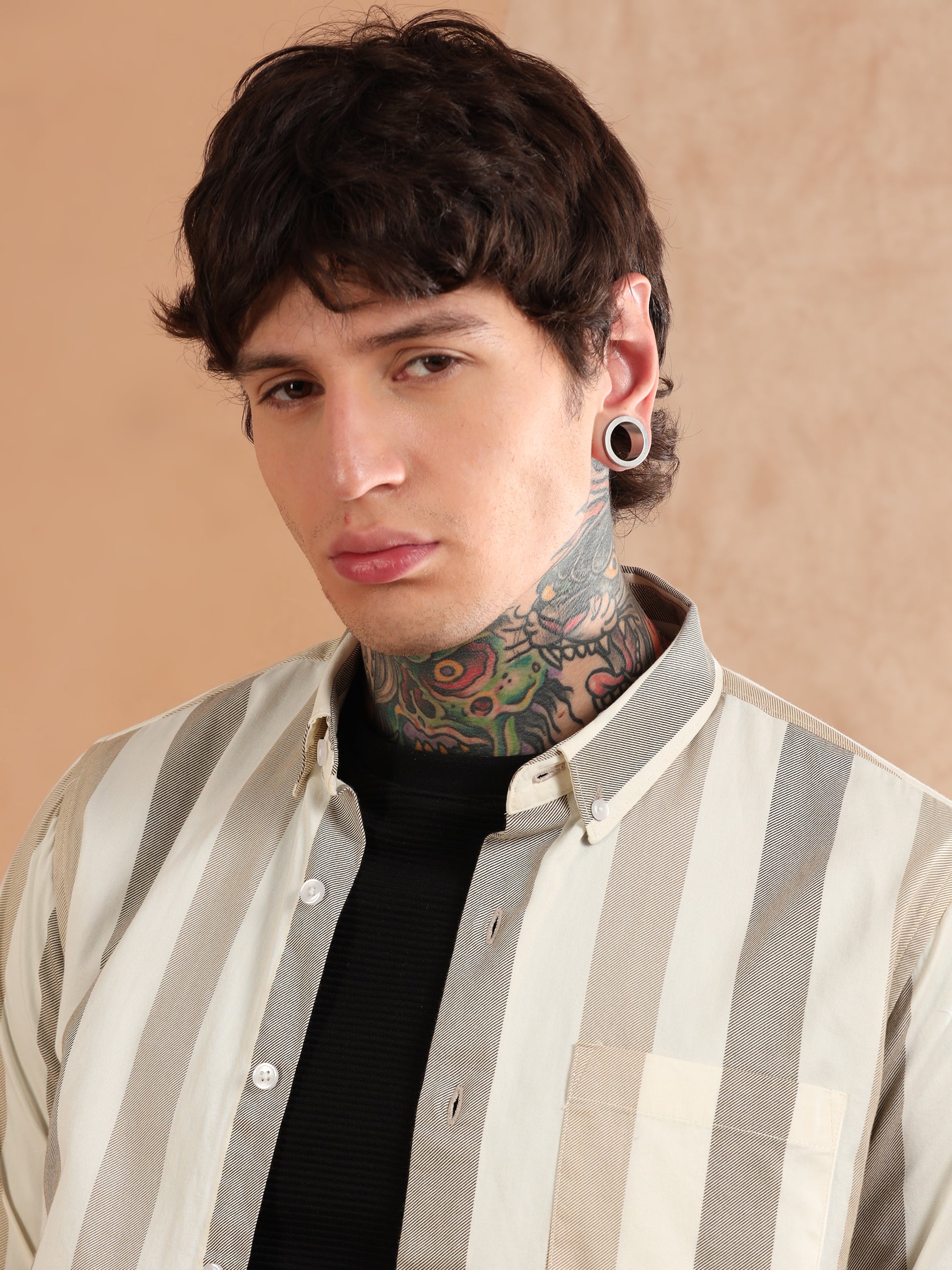 Redefine classic style with this Men’s Broad Twill Striped Shirt with Full Sleeves, a bold yet sophisticated piece that speaks confidence and comfort. Woven from high-quality twill fabric, this shirt offers a rich texture and smooth finish that feels just as good as it looks. Designed with full-length sleeves, buttoned cuffs, and a structured collar, this shirt delivers timeless tailoring with a modern edge. The strong yet breathable fabric makes it a reliable go-to year-round, offering both comfort and structure in one sleek silhouette.